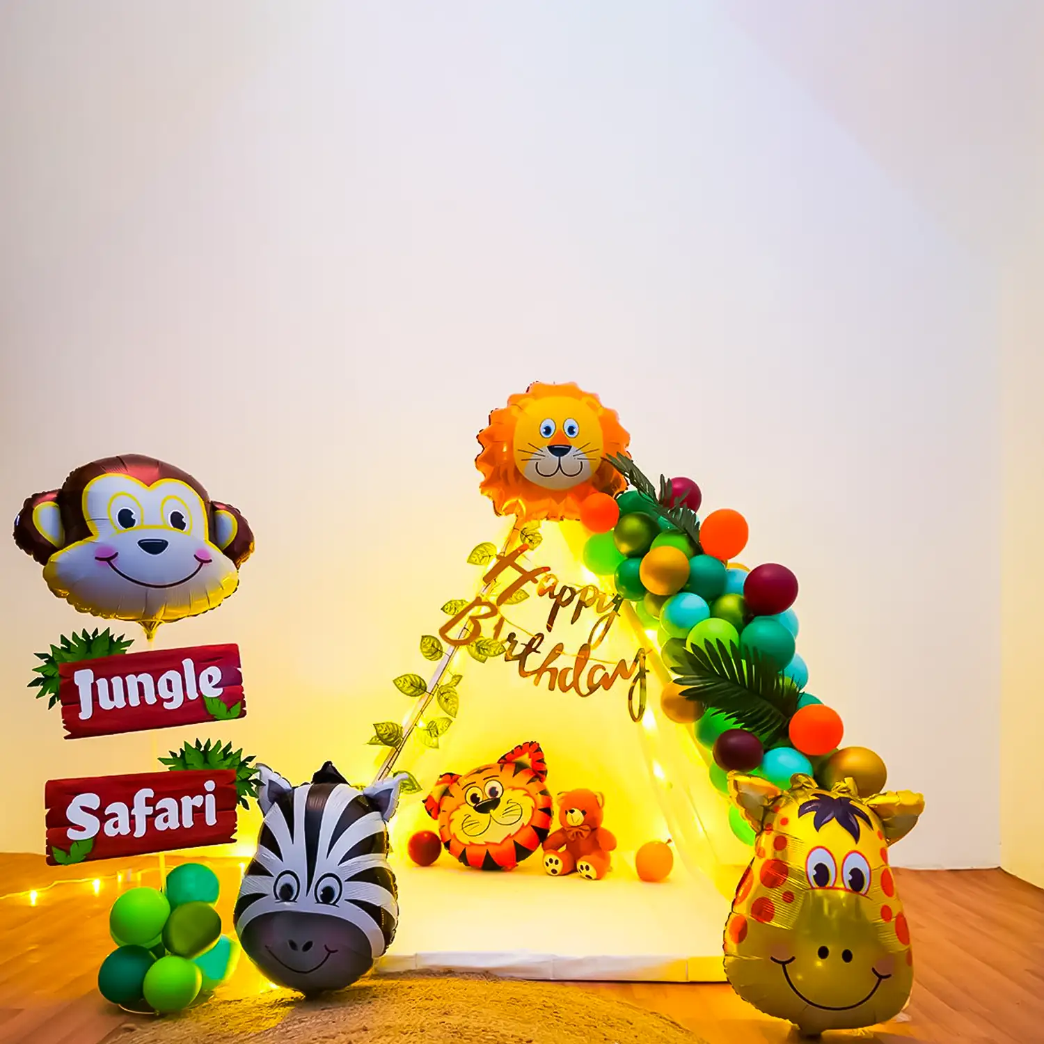 A beautiful balloon decoration idea for birthday celebrations at home.