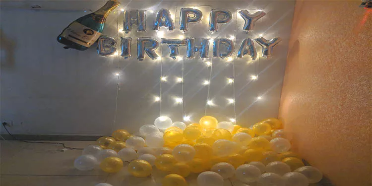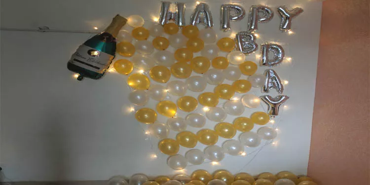 A beautiful balloon decoration idea for birthday celebrations at home.