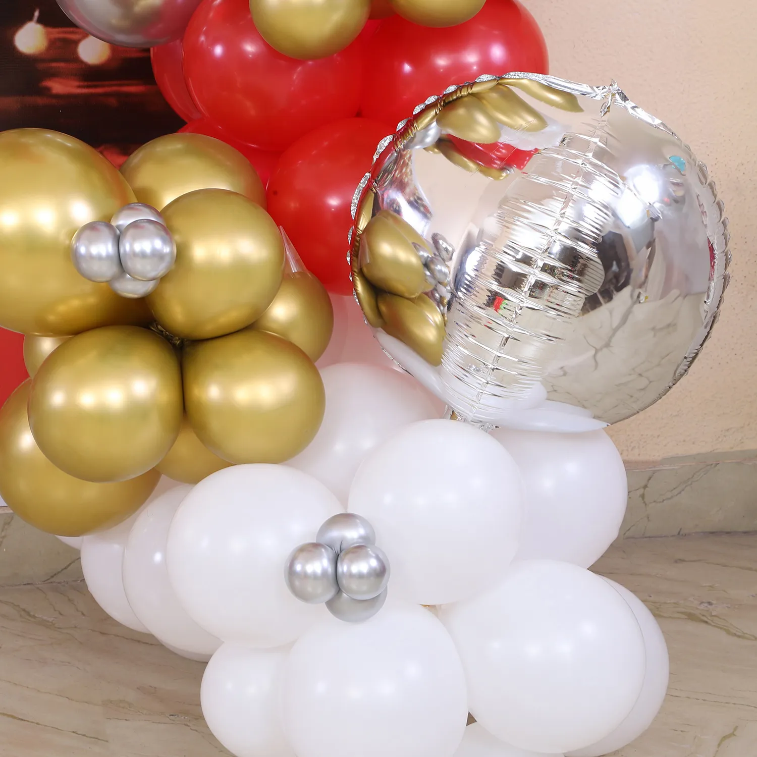 Make your holiday celebration unforgettable with this elegant and vibrant balloon décor.