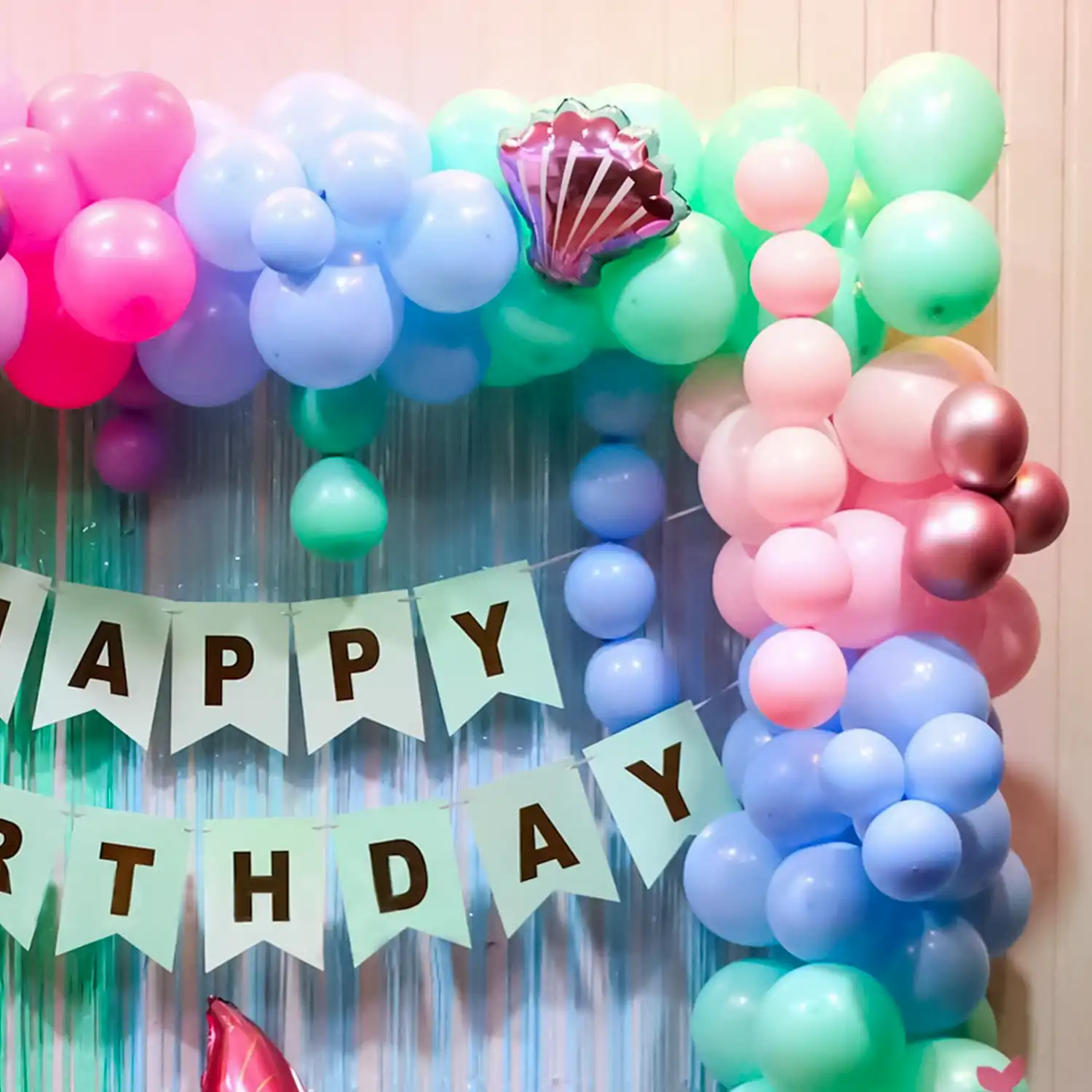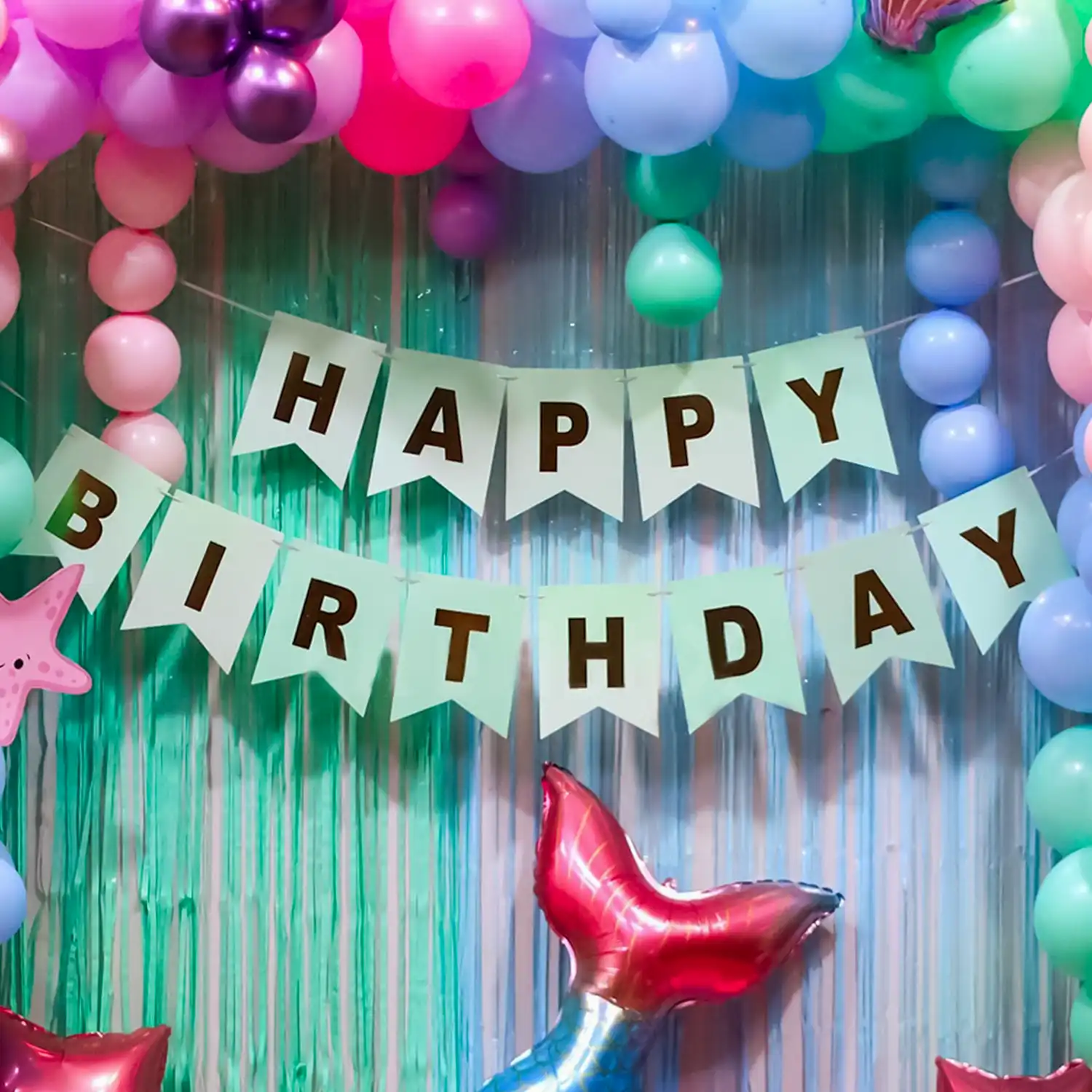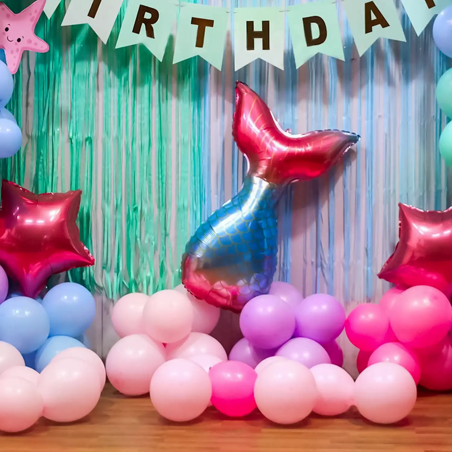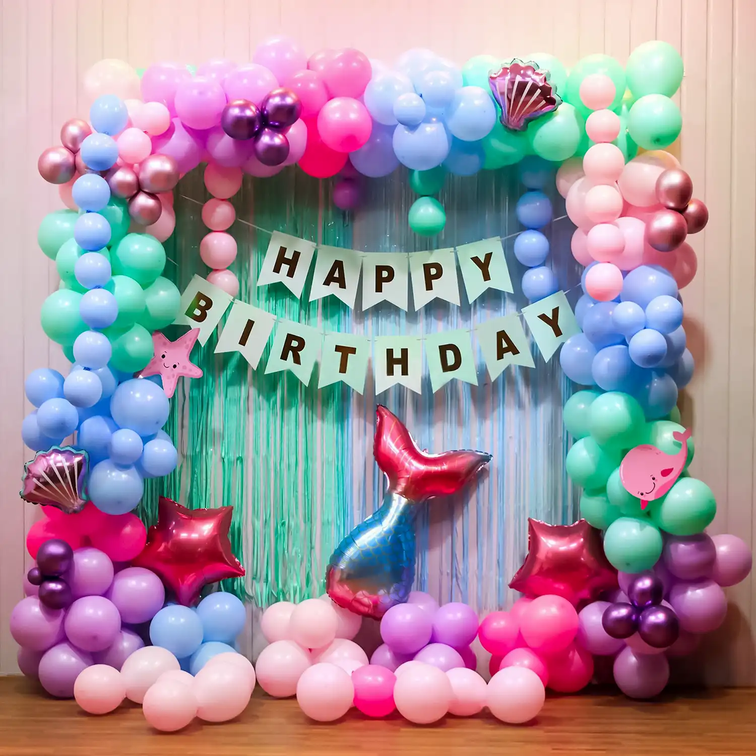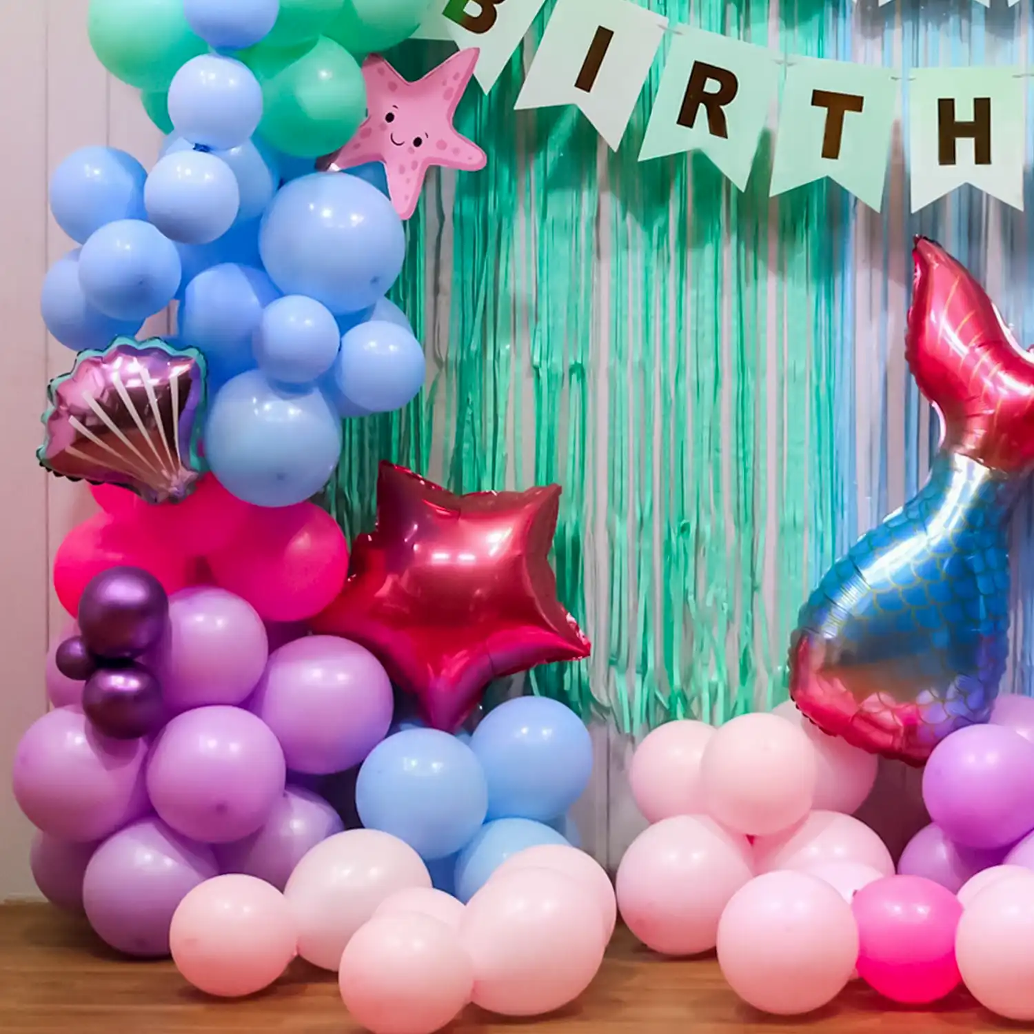 Dive into a sea of fun with mermaids on your kids birthday bash with this decoration!