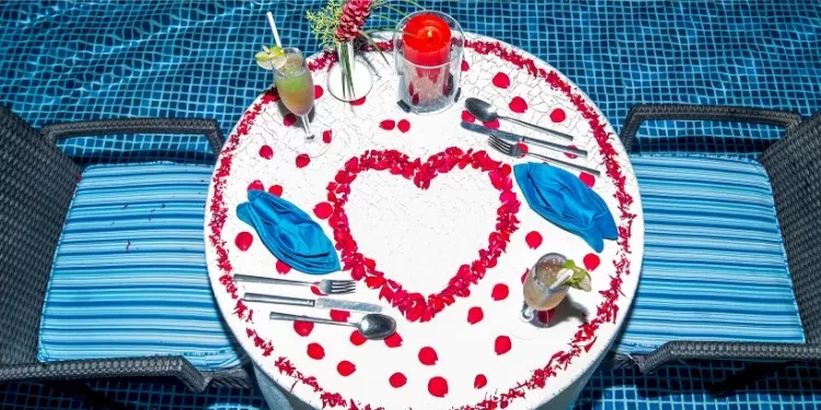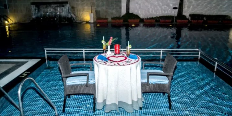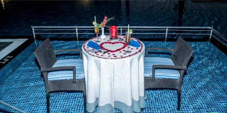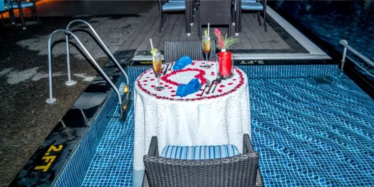 You can soothe your eyes with the stunning setup done with luminous lamps and sitting inside a pool. You will get a chance to spend the time with your love in the most unique way it is possible.