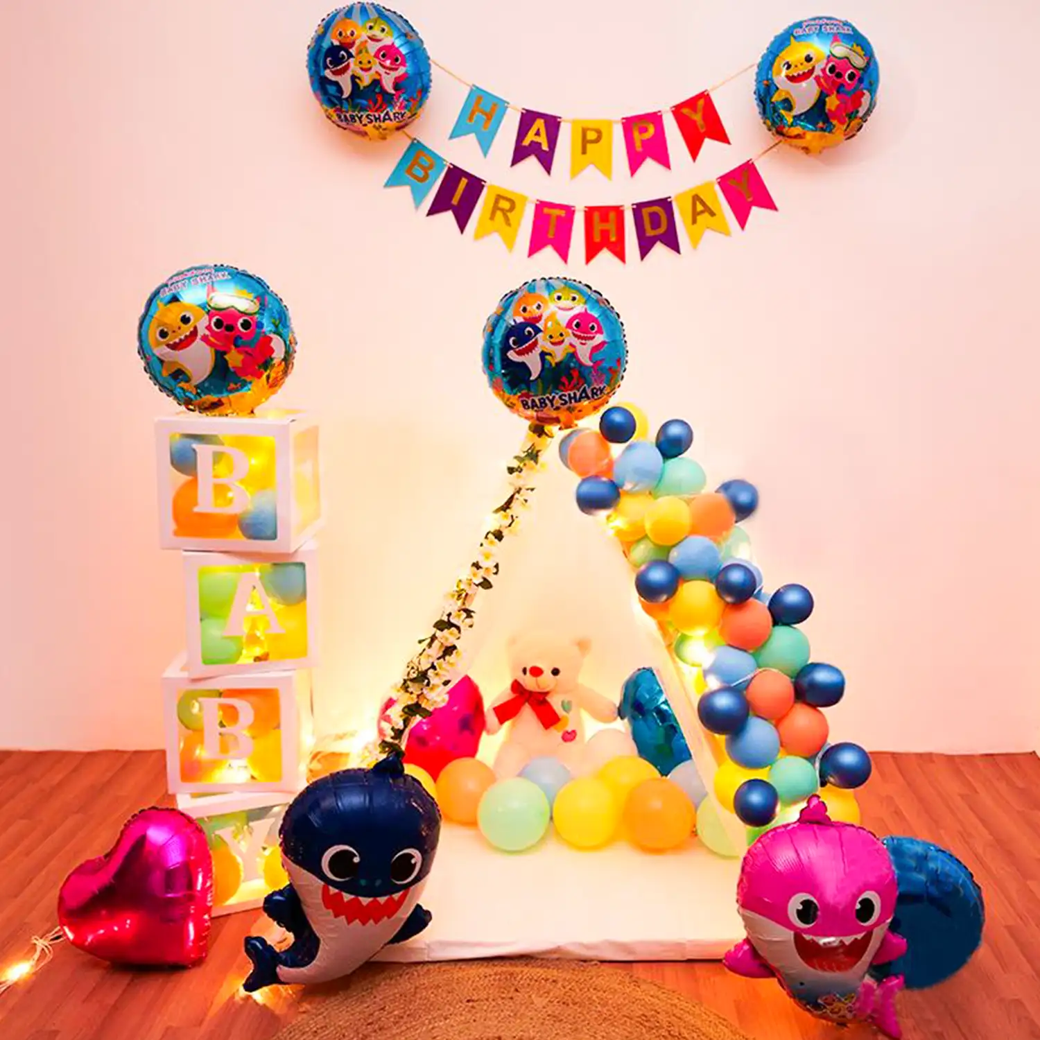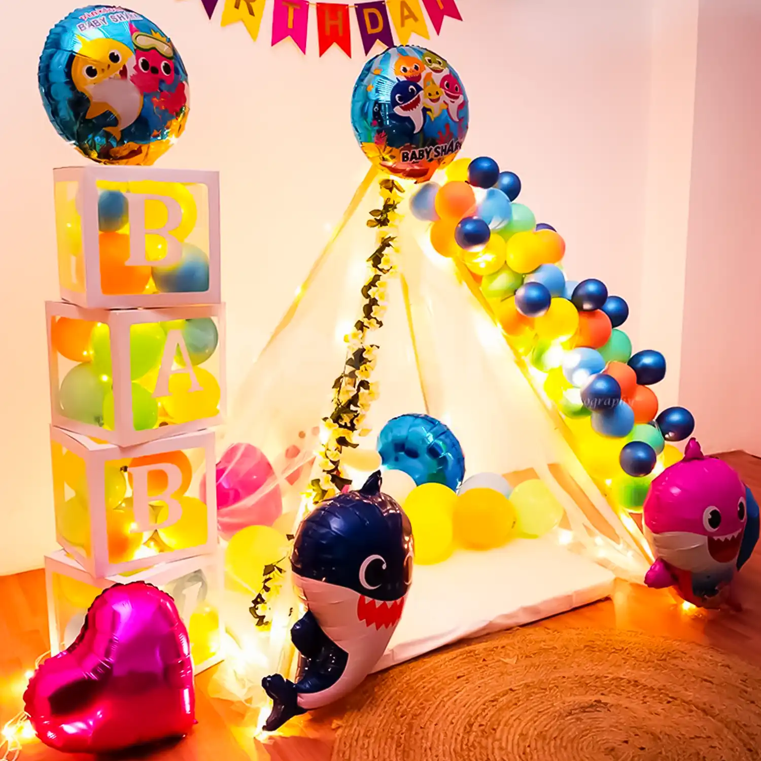 Enter a magical underwater world by choosing this Baby Shark canopy decoration!