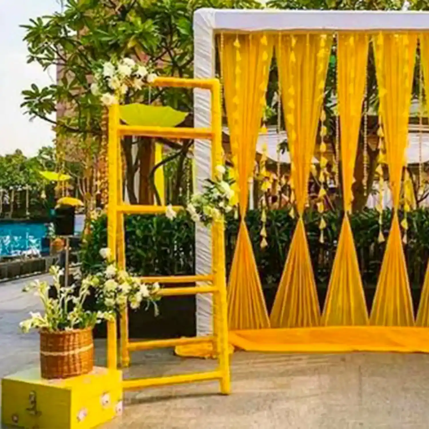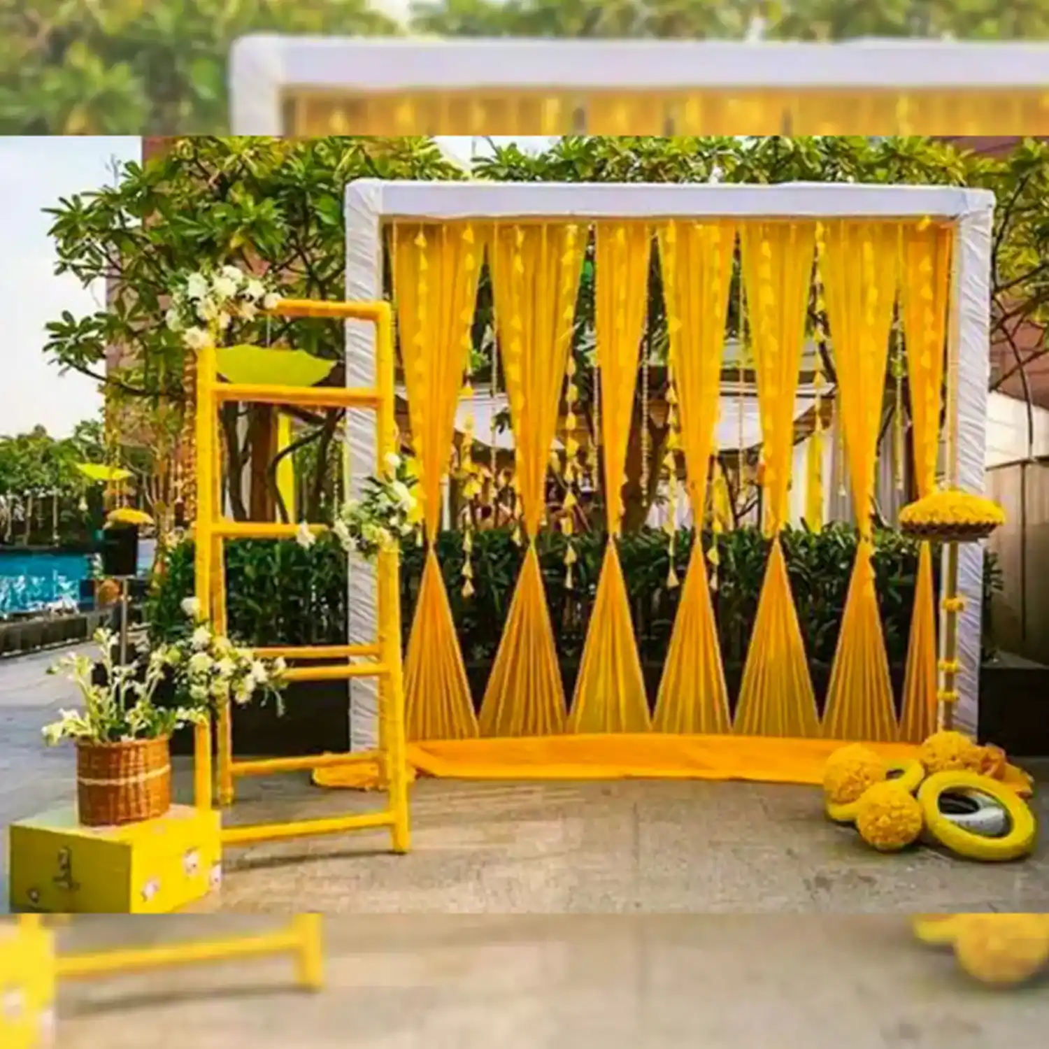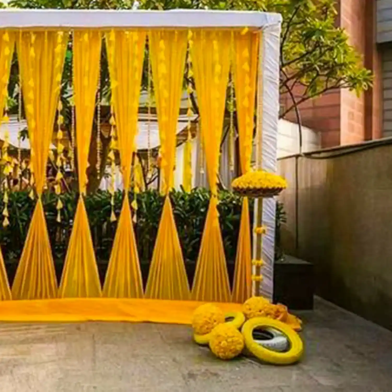 Elevate the Haldi ceremony setup with our gorgeous flower decoration.