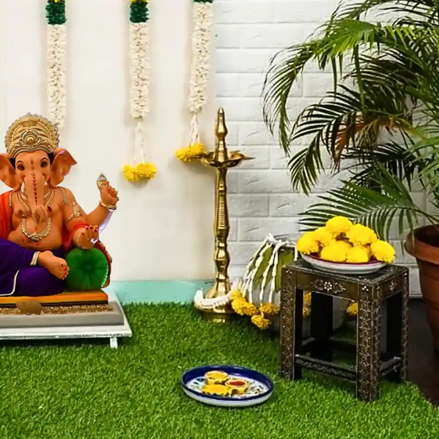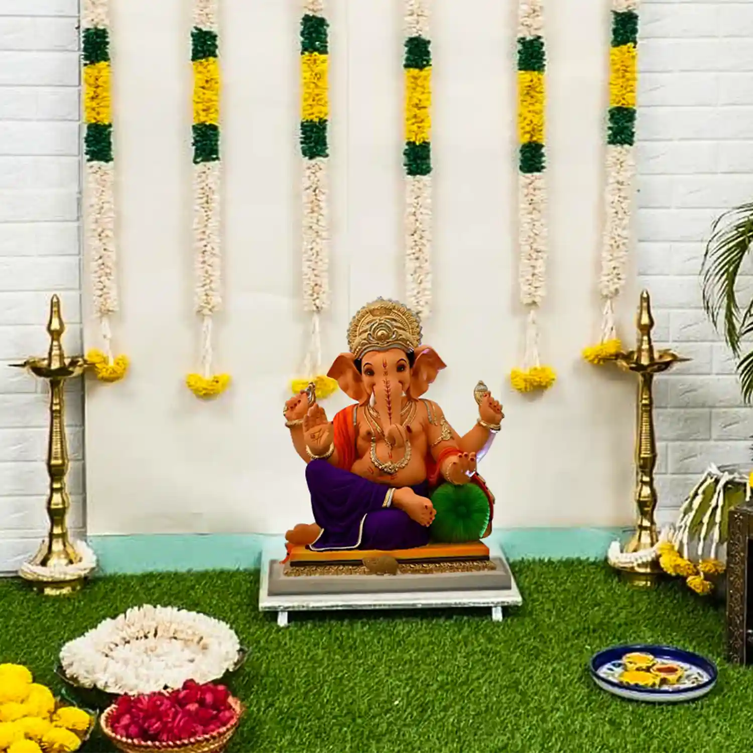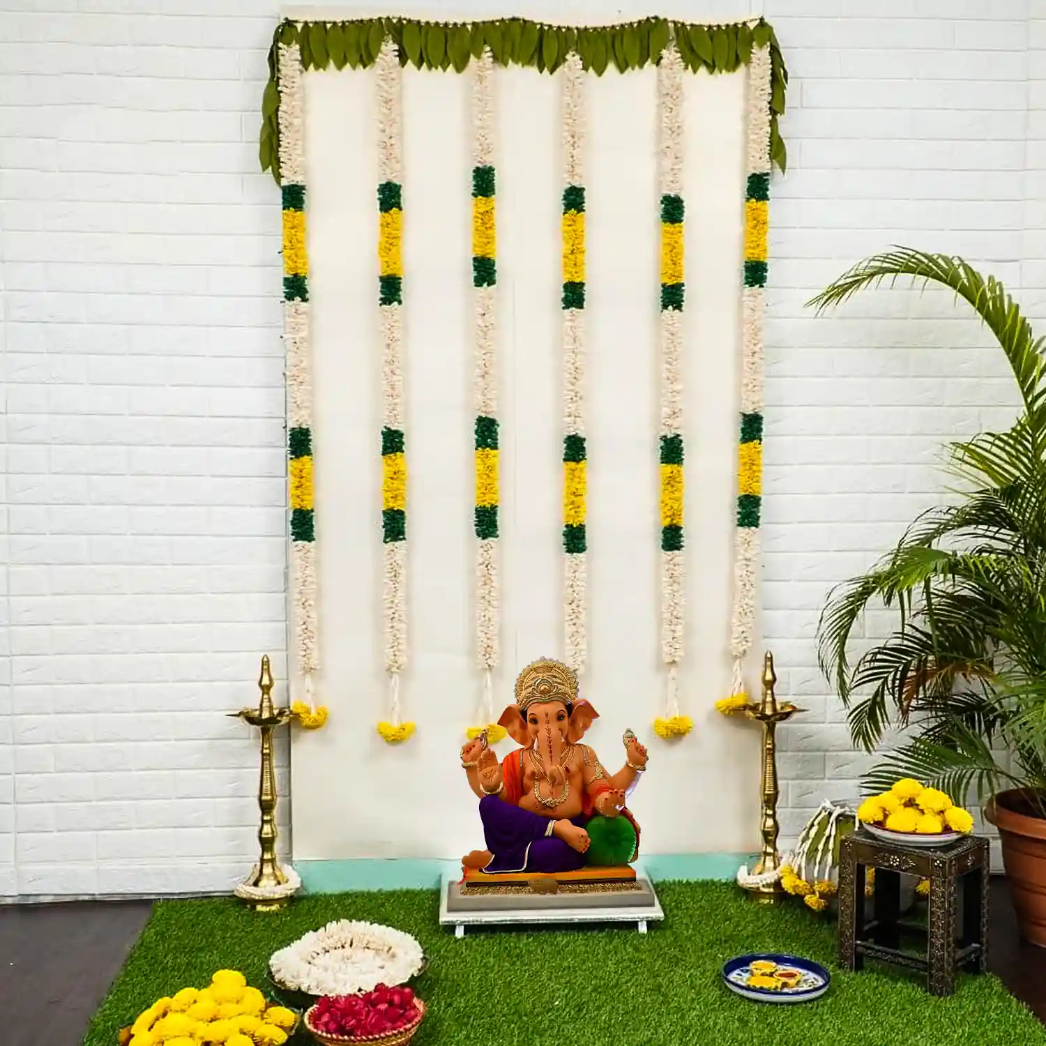 Welcome Lord Ganpati to your home with a beautiful flower decoration.