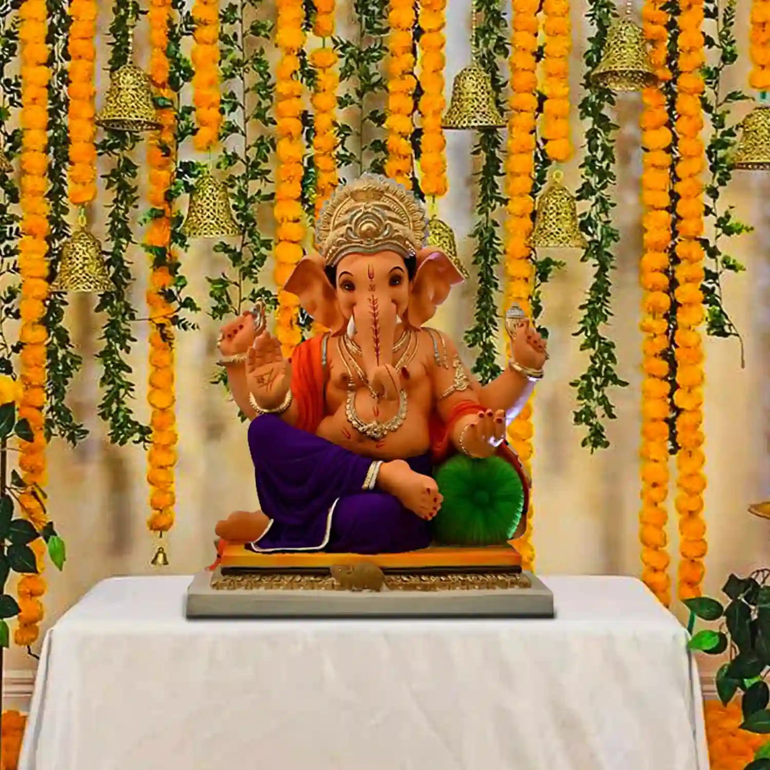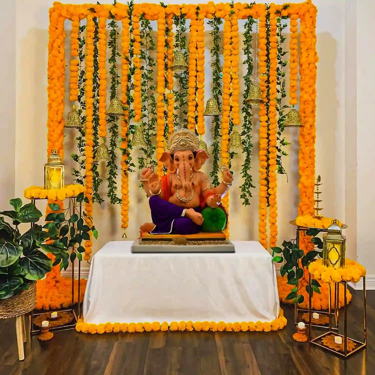 Welcome Lord Ganpati to your home with a beautiful flower decoration.
