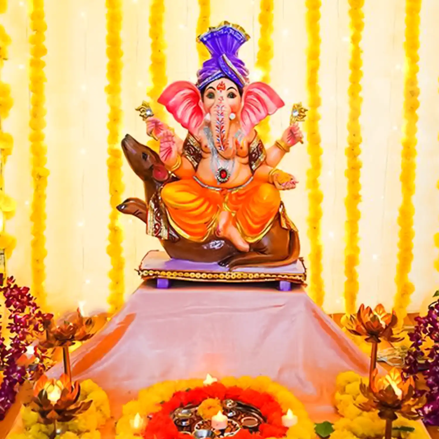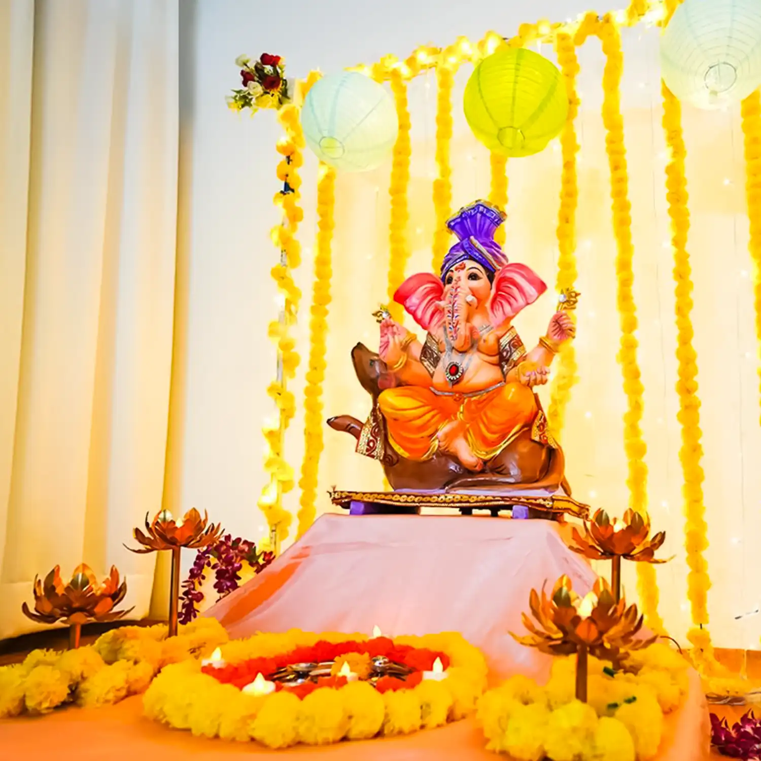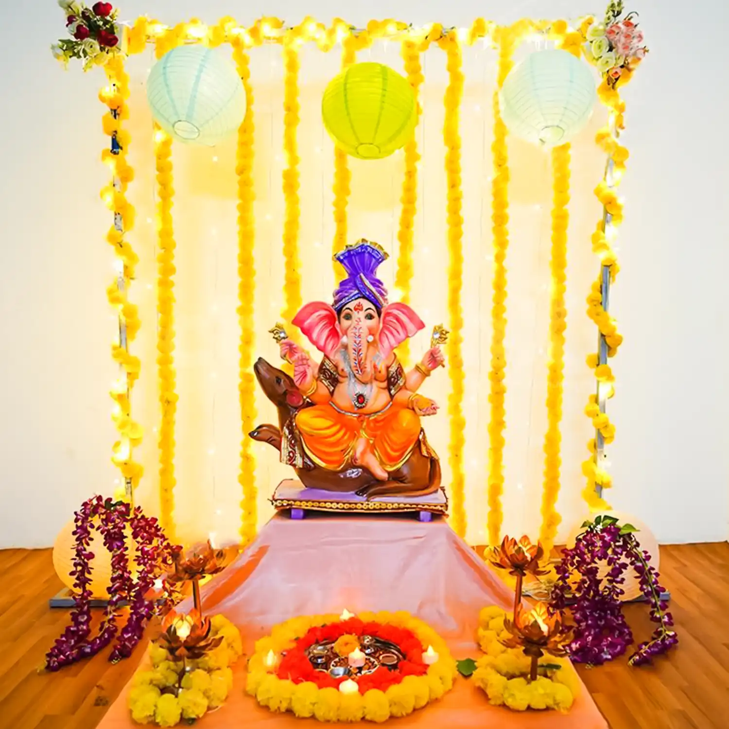 Welcome Lord Ganpati to your home with a beautiful flower decoration.