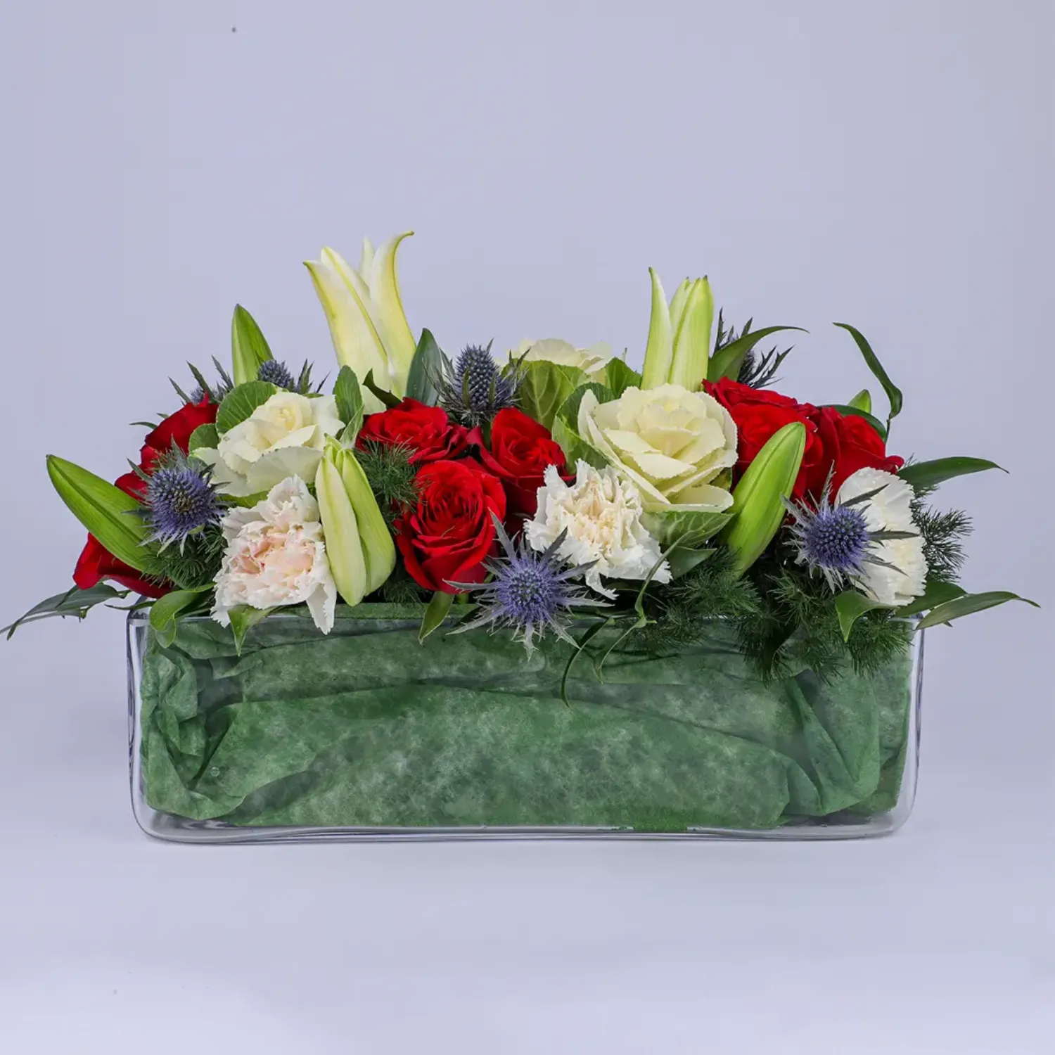 Start their day with these fresh flowers beautifully arranged in a basket.