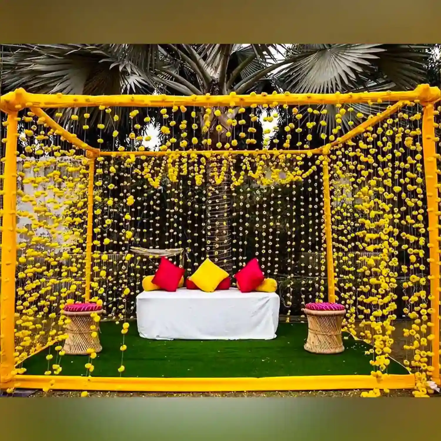 • 1 Square Mandap Setup Drapped with Yellow Curtains