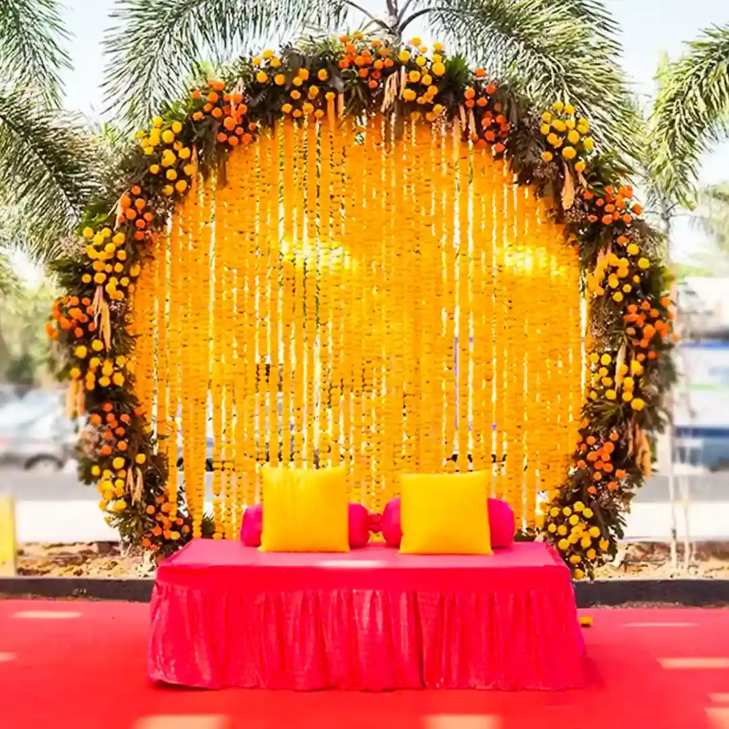 Elevate the Haldi ceremony setup with our gorgeous flower decoration.