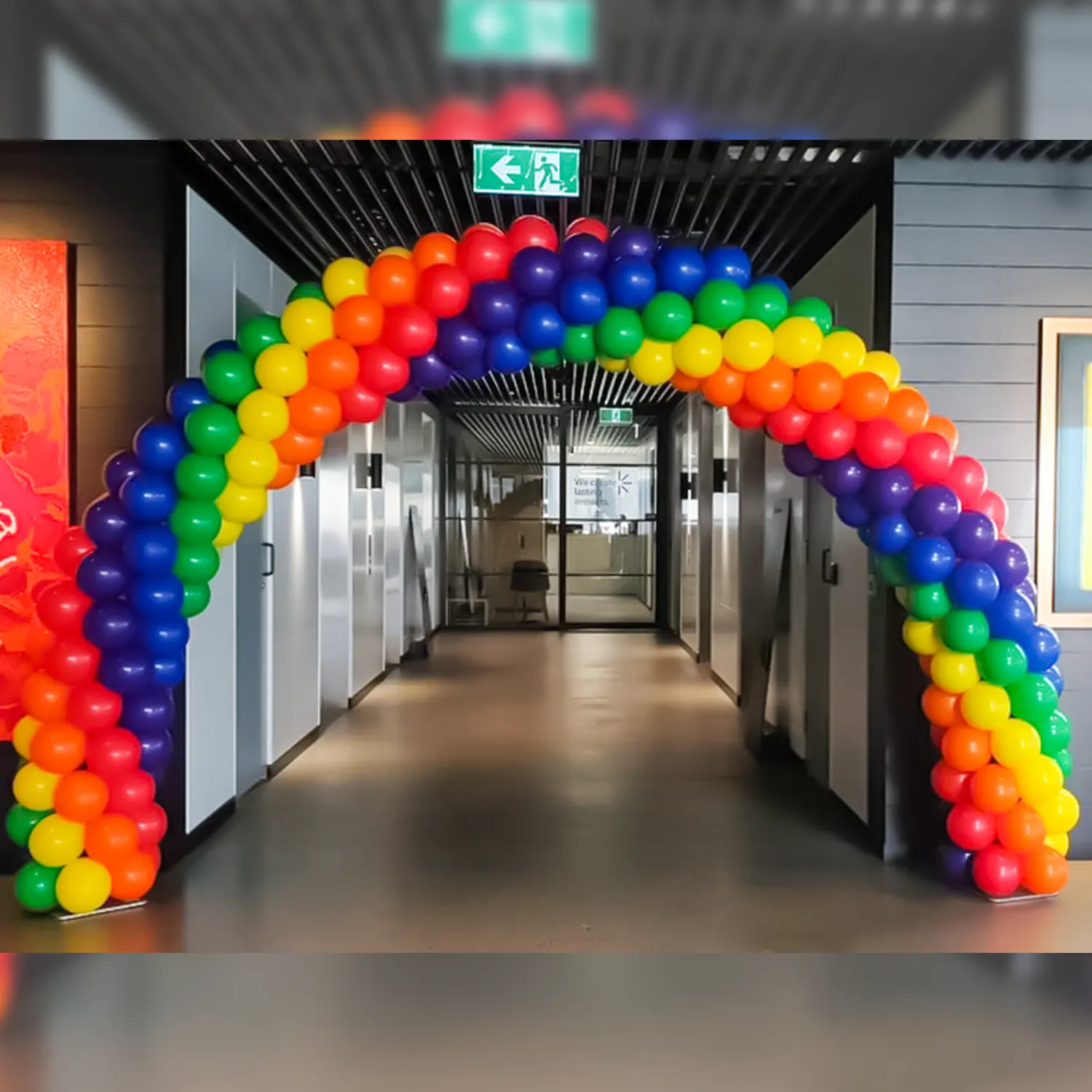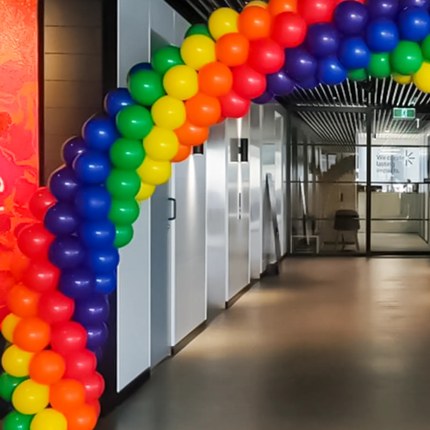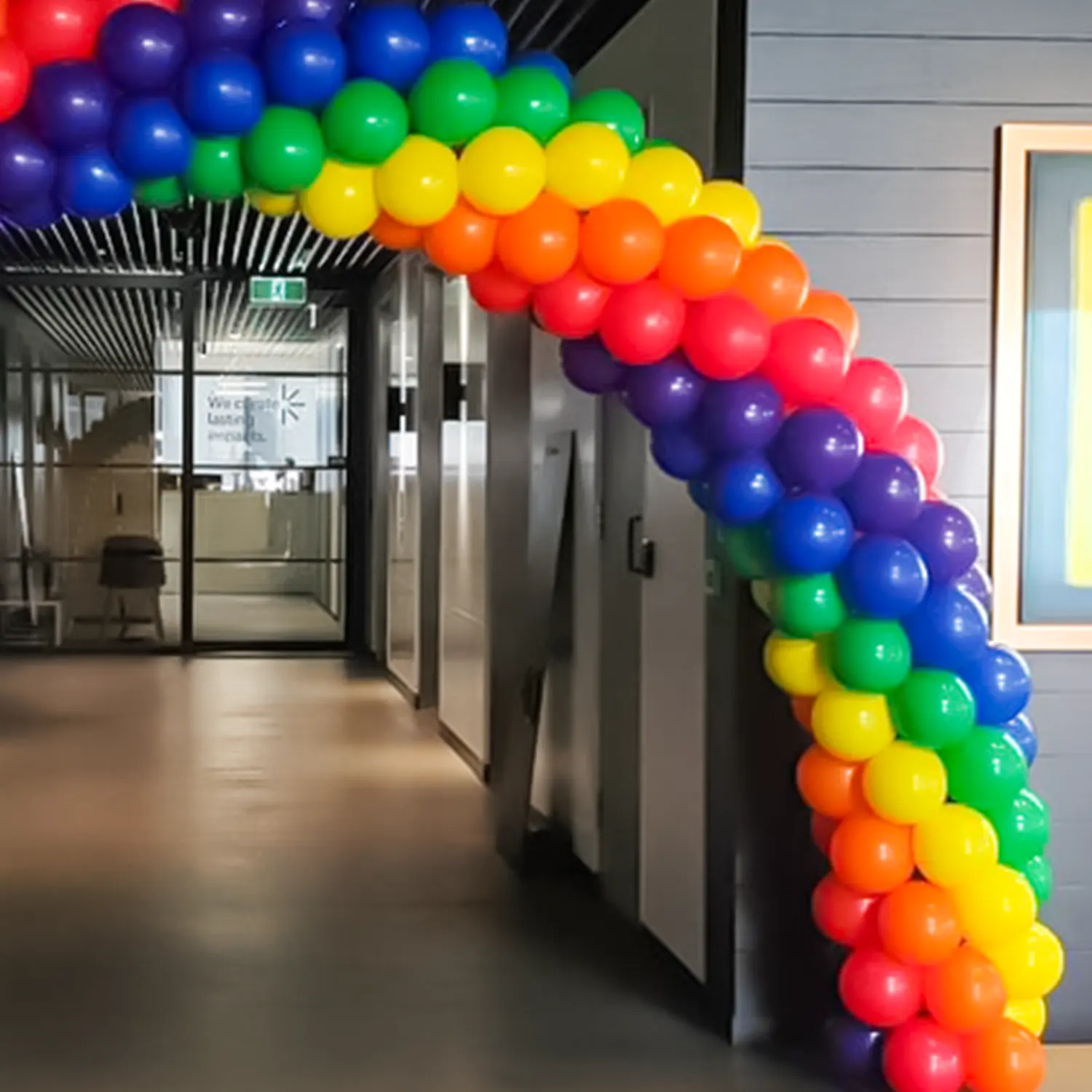 A colourful balloon decor highlighting a rainbow, stars & clouds for kids.
