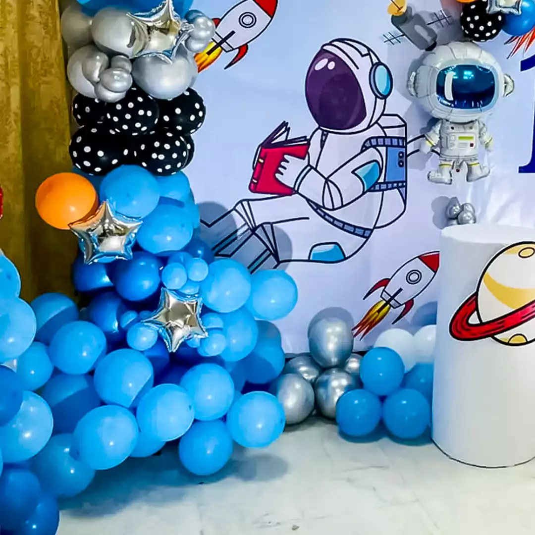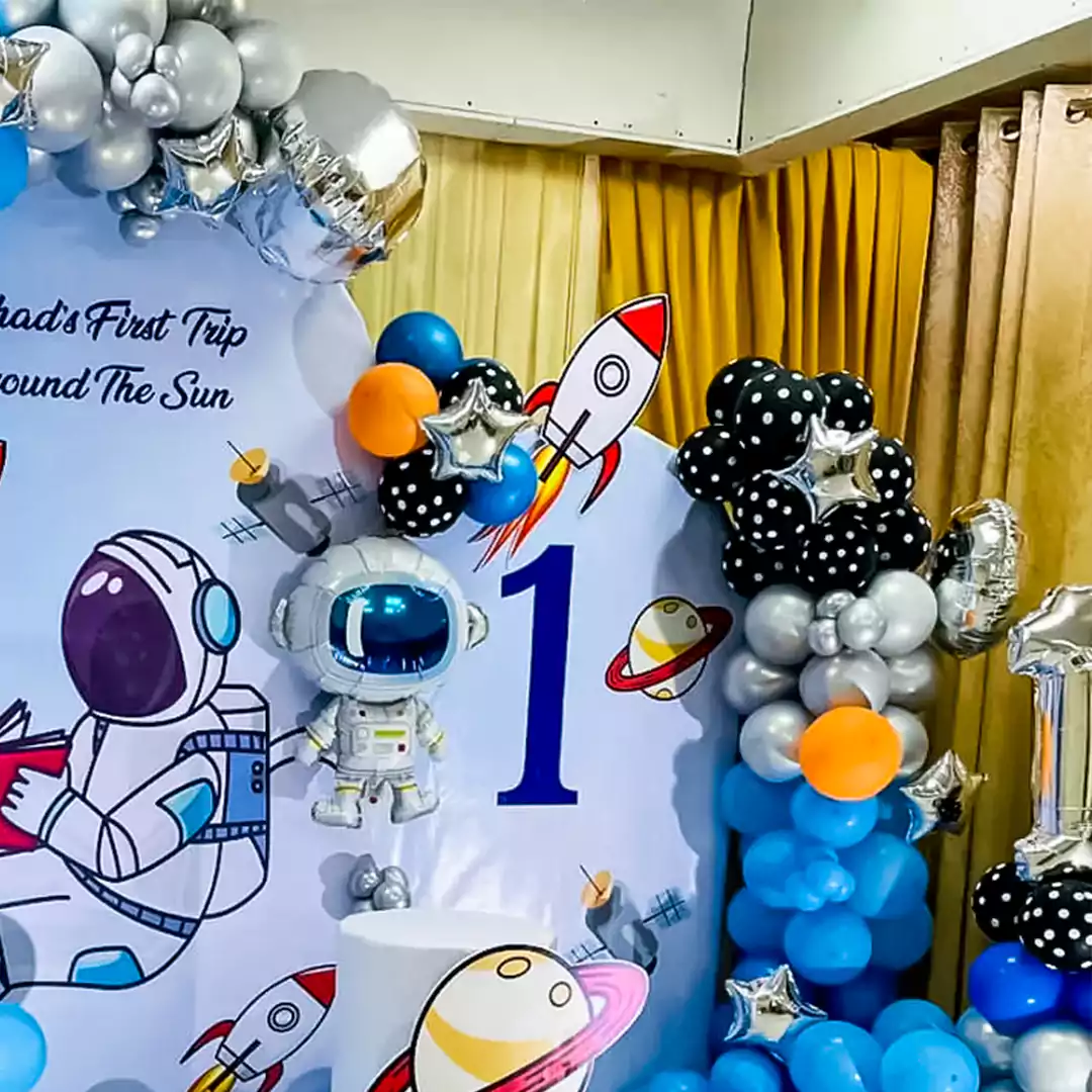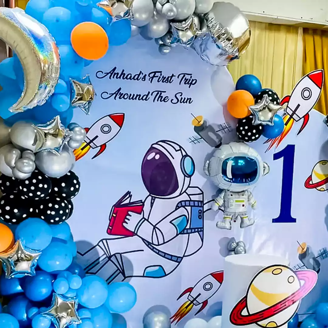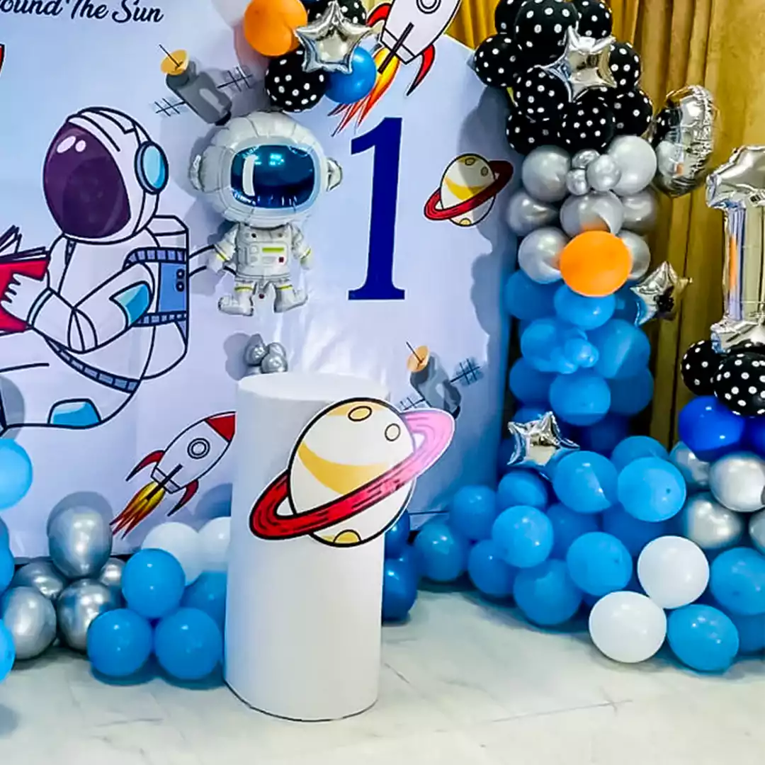 Blast off to an out of the world celebration with this space-themed decor!