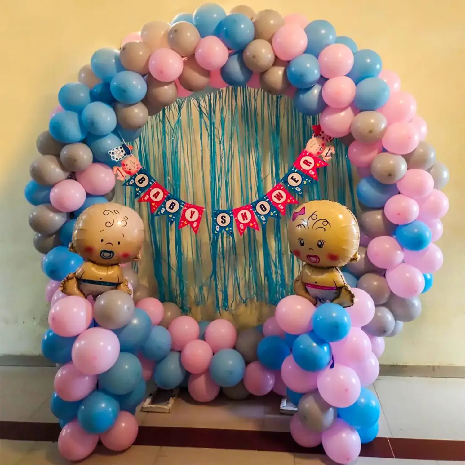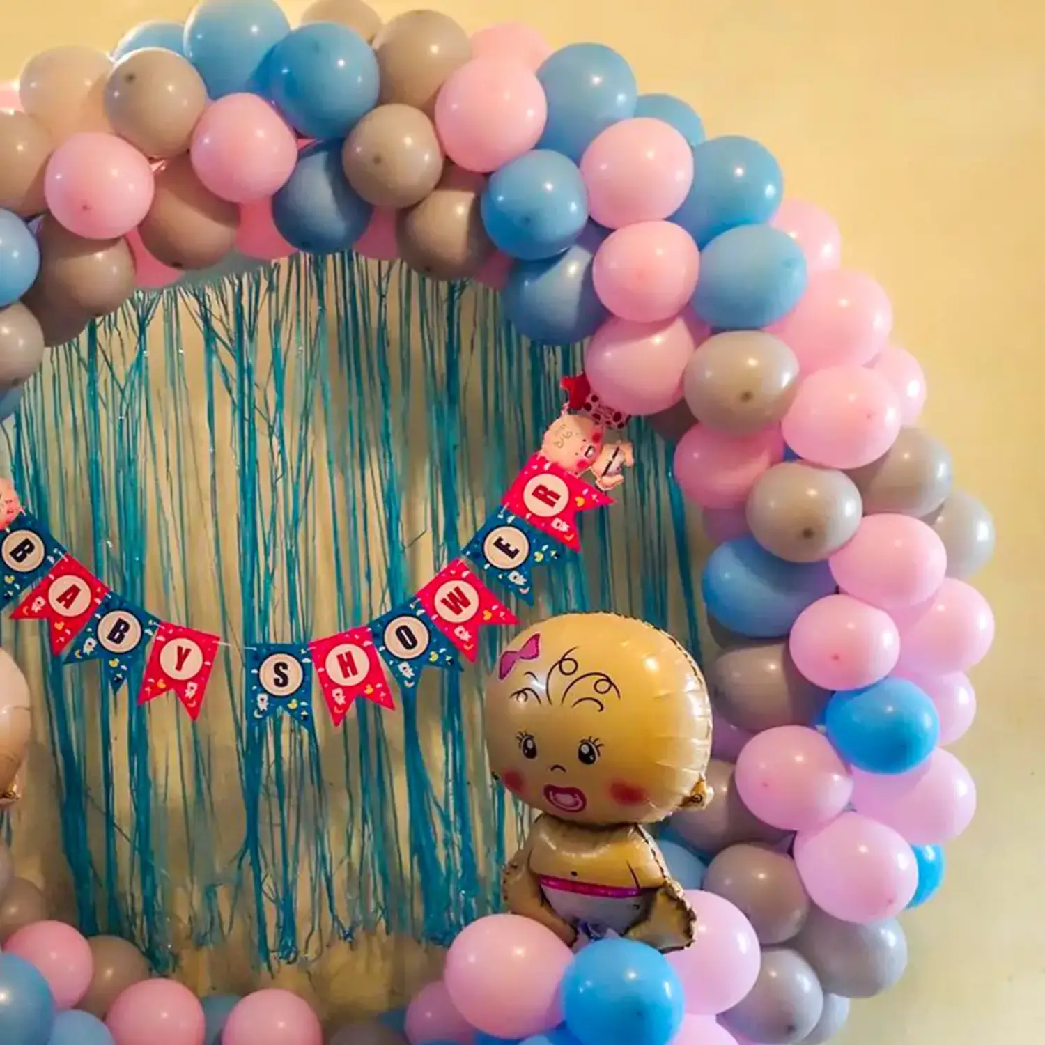 A beautiful balloon decoration idea for birthday celebrations at home.