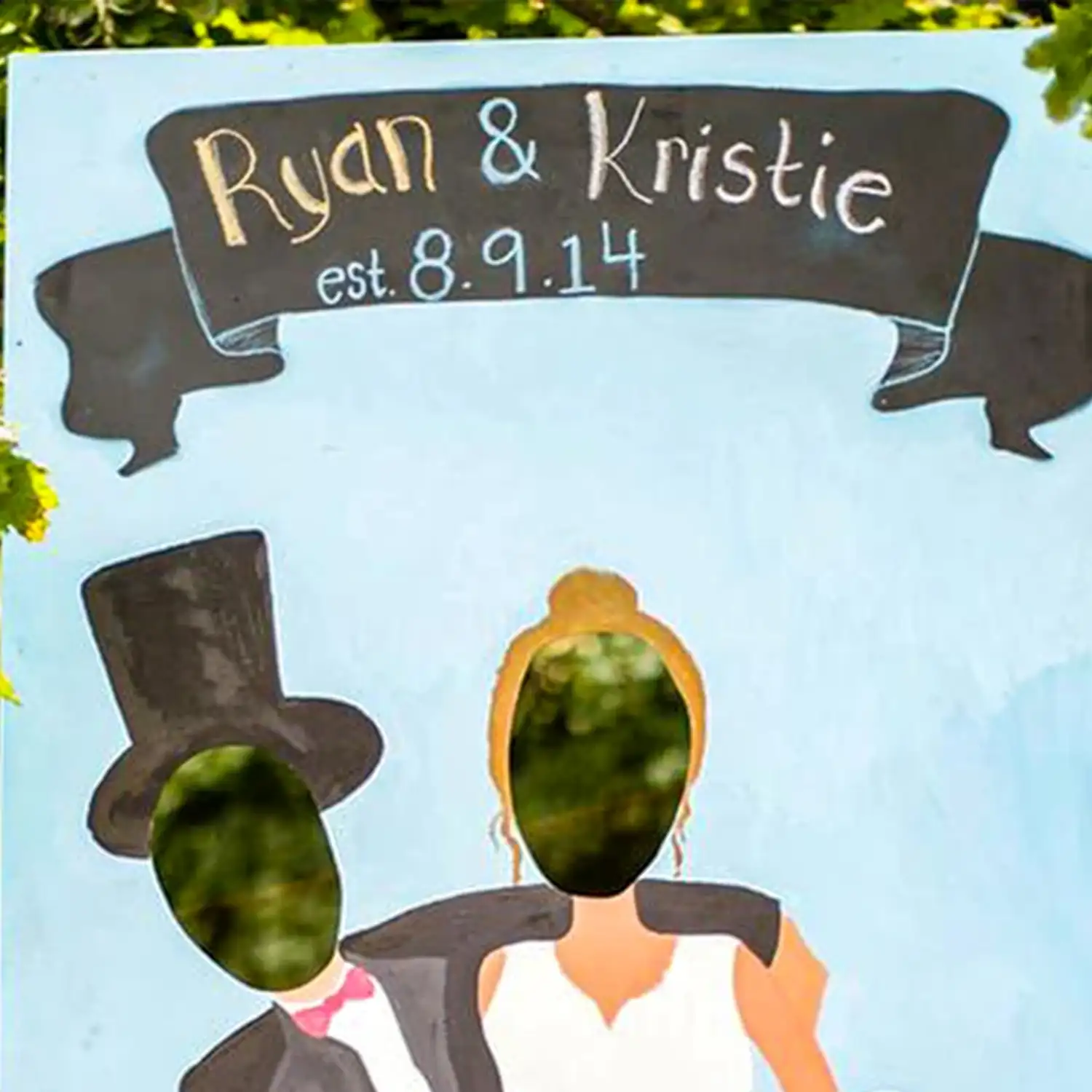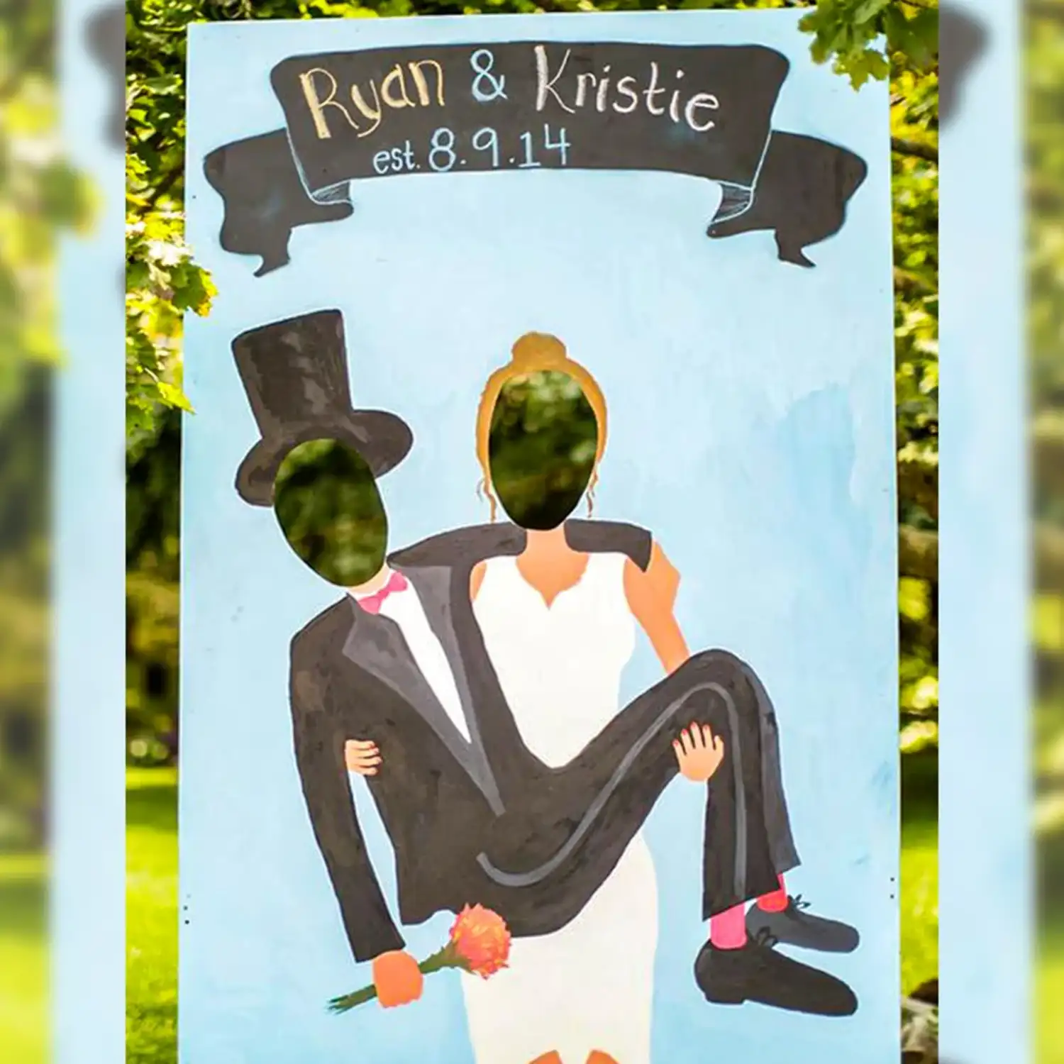 This caricature-style photo booth frame is sure to make your special celebration more fun!