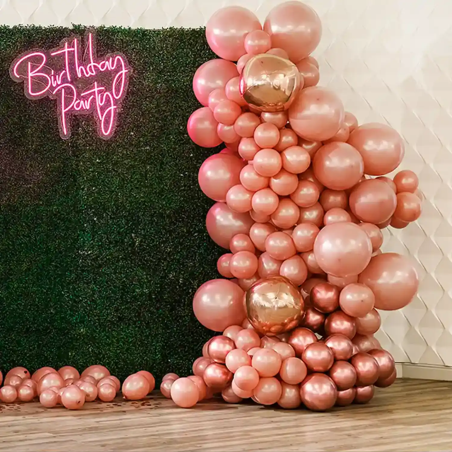 Our rose gold balloon pillar decoration is 1 of our best birthday decoration themes.