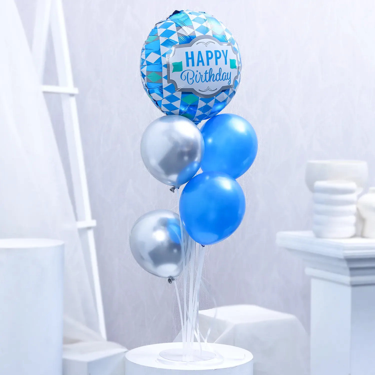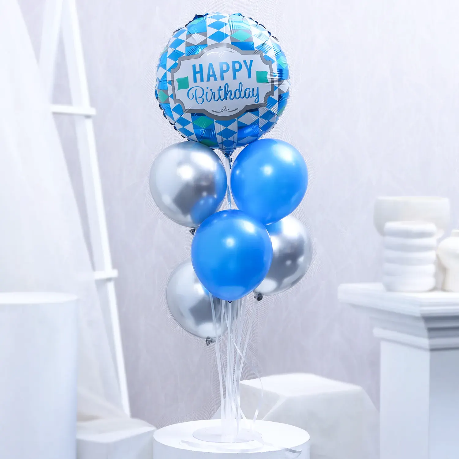 Send blue coloured birthday wishes with this elegant balloon bouquet.