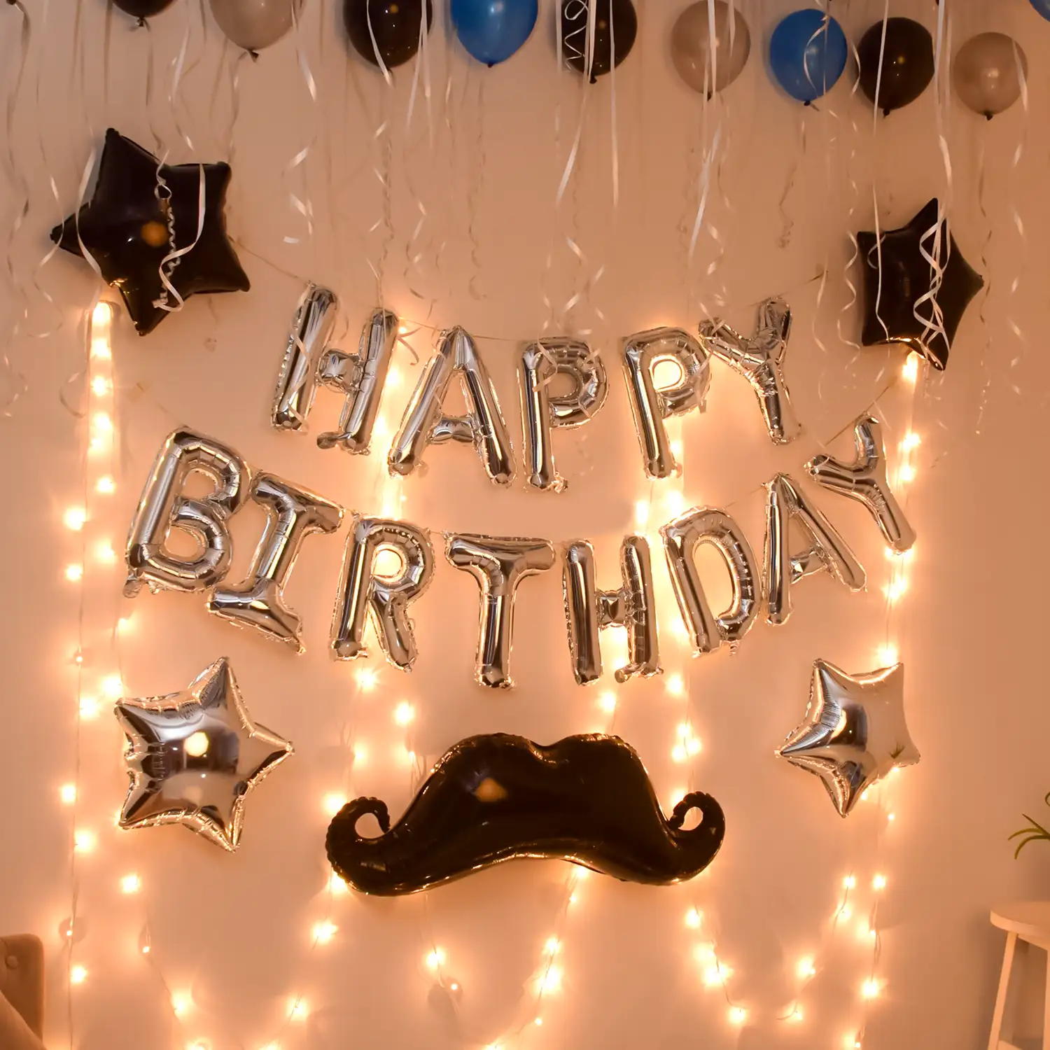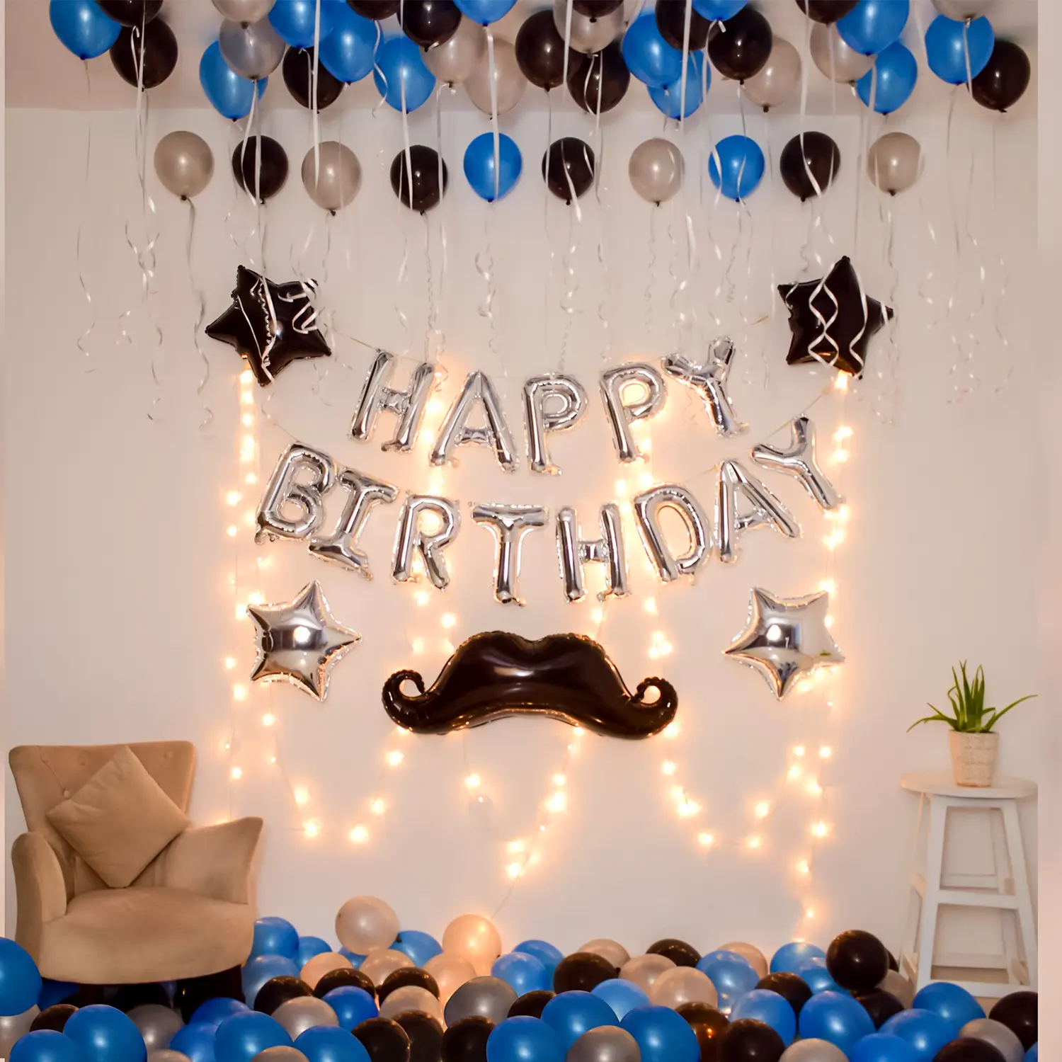 A beautiful balloon decoration idea for birthday celebrations at home.