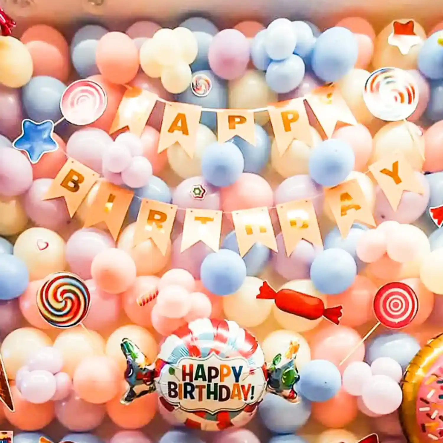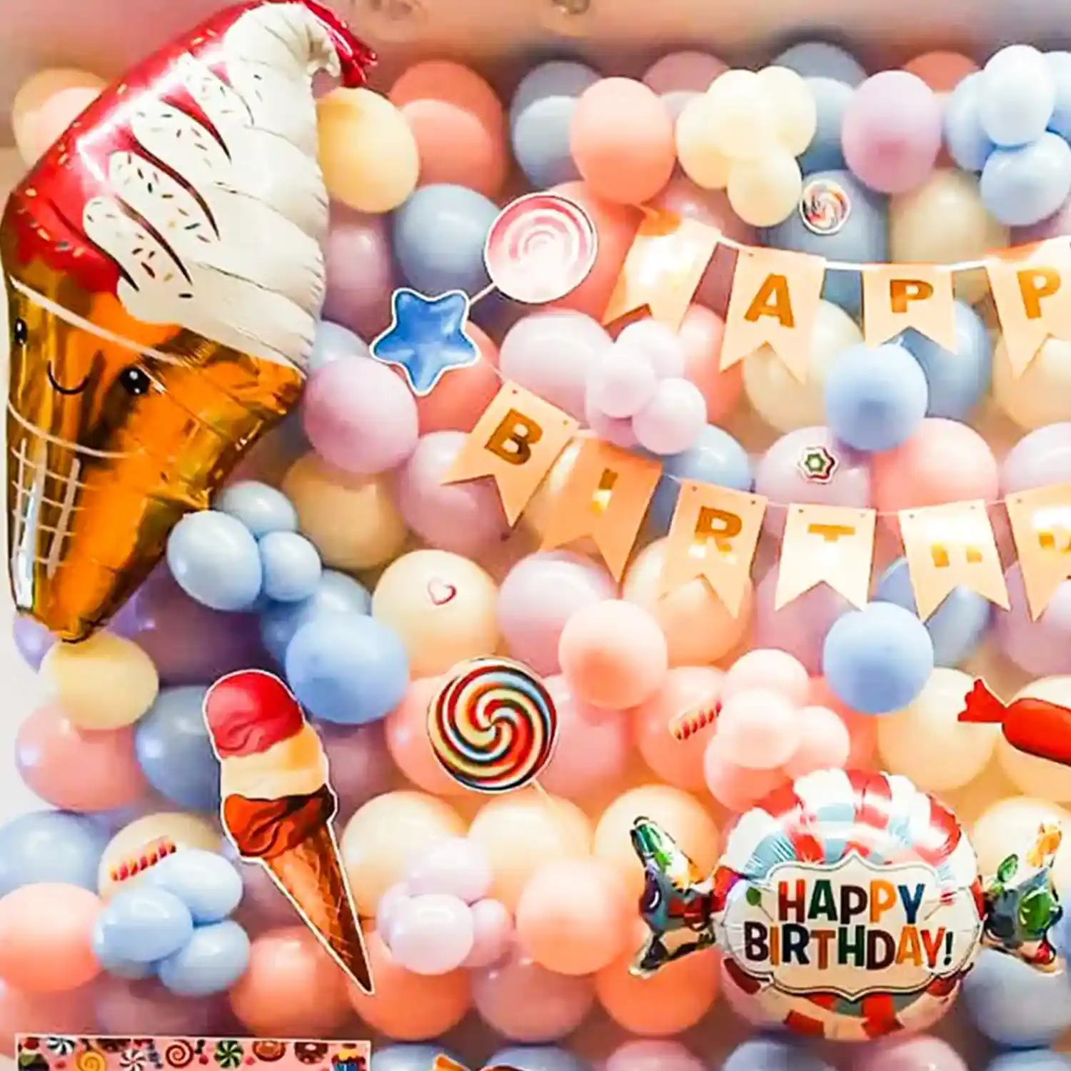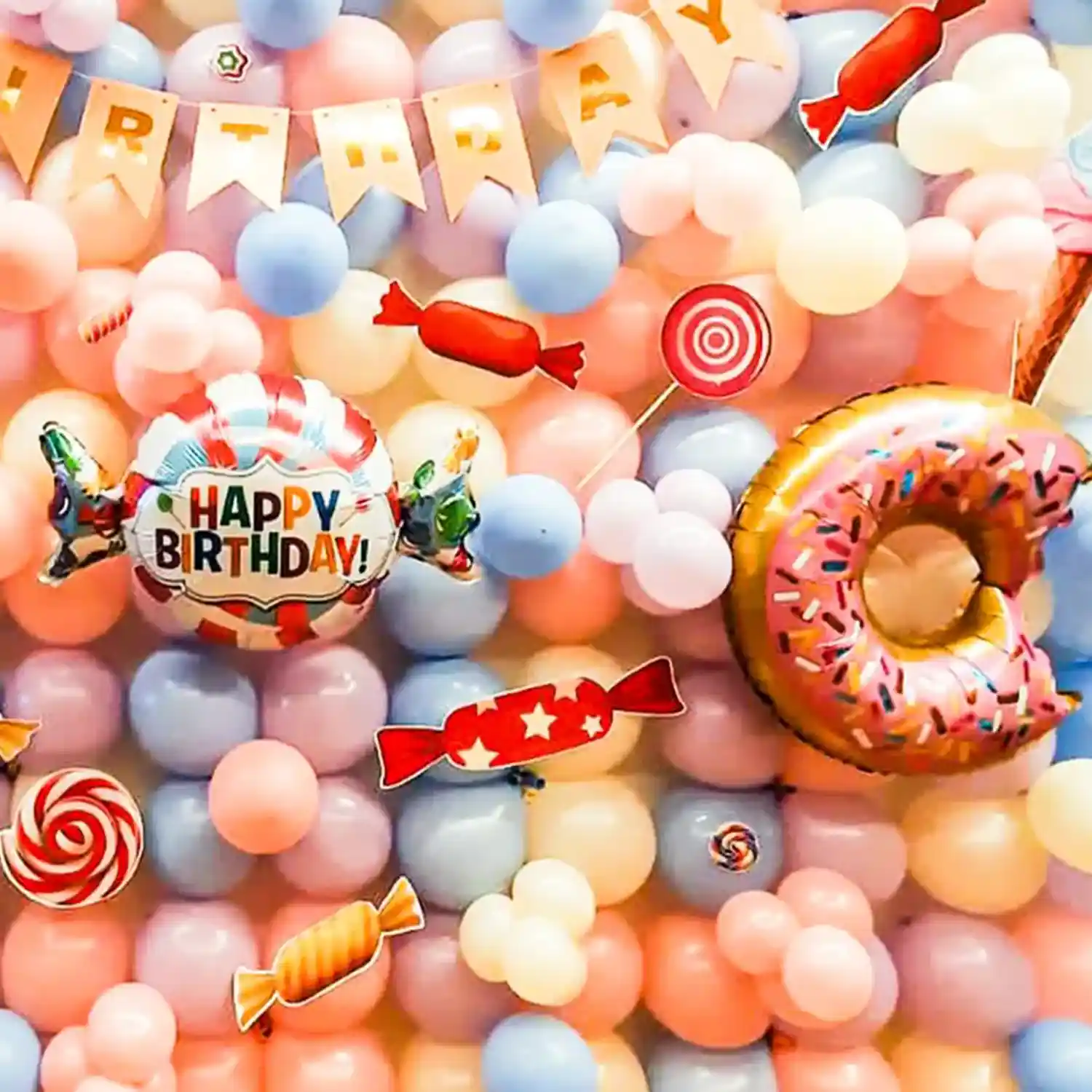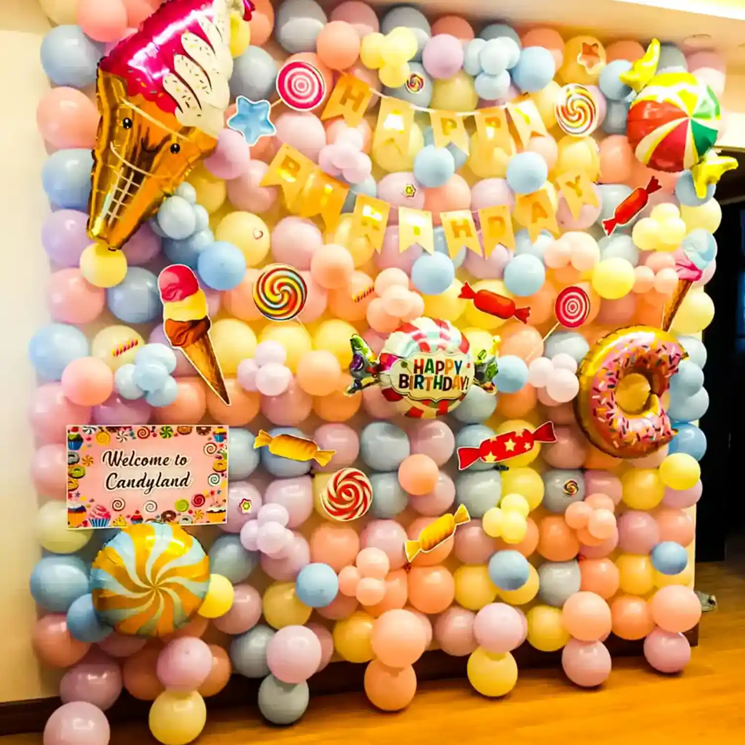 Celebrate your kid's birthday with our candy land-themed balloon decoration.