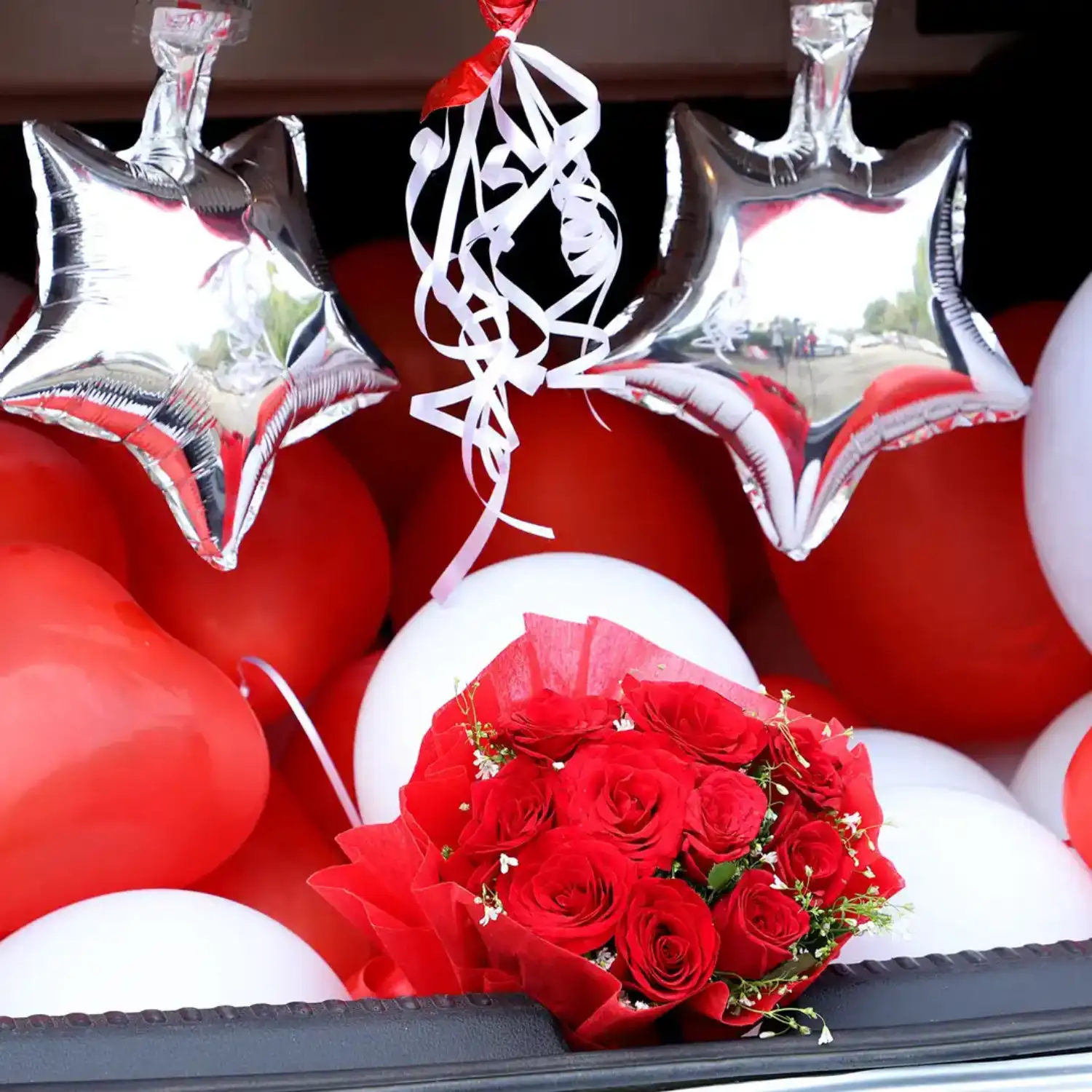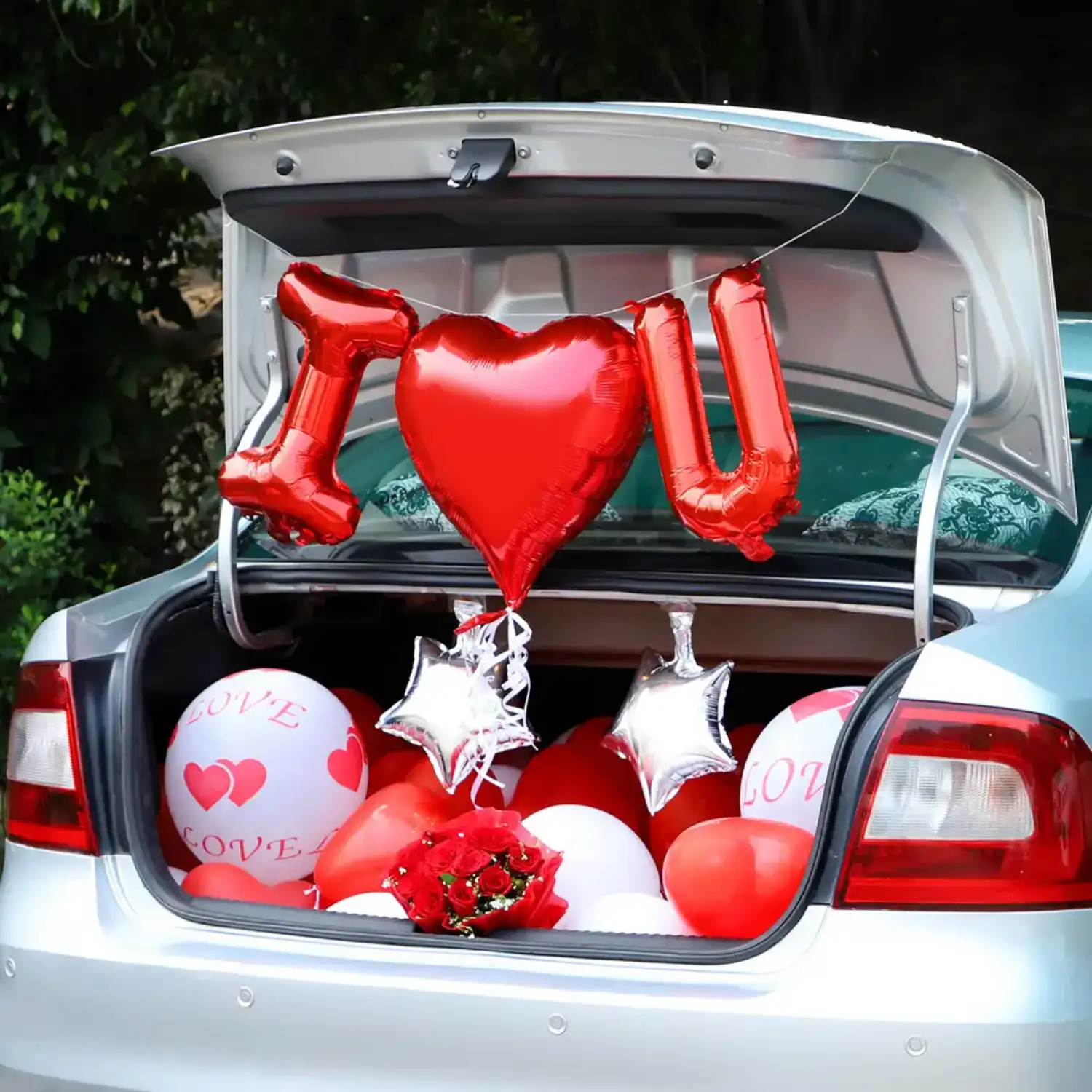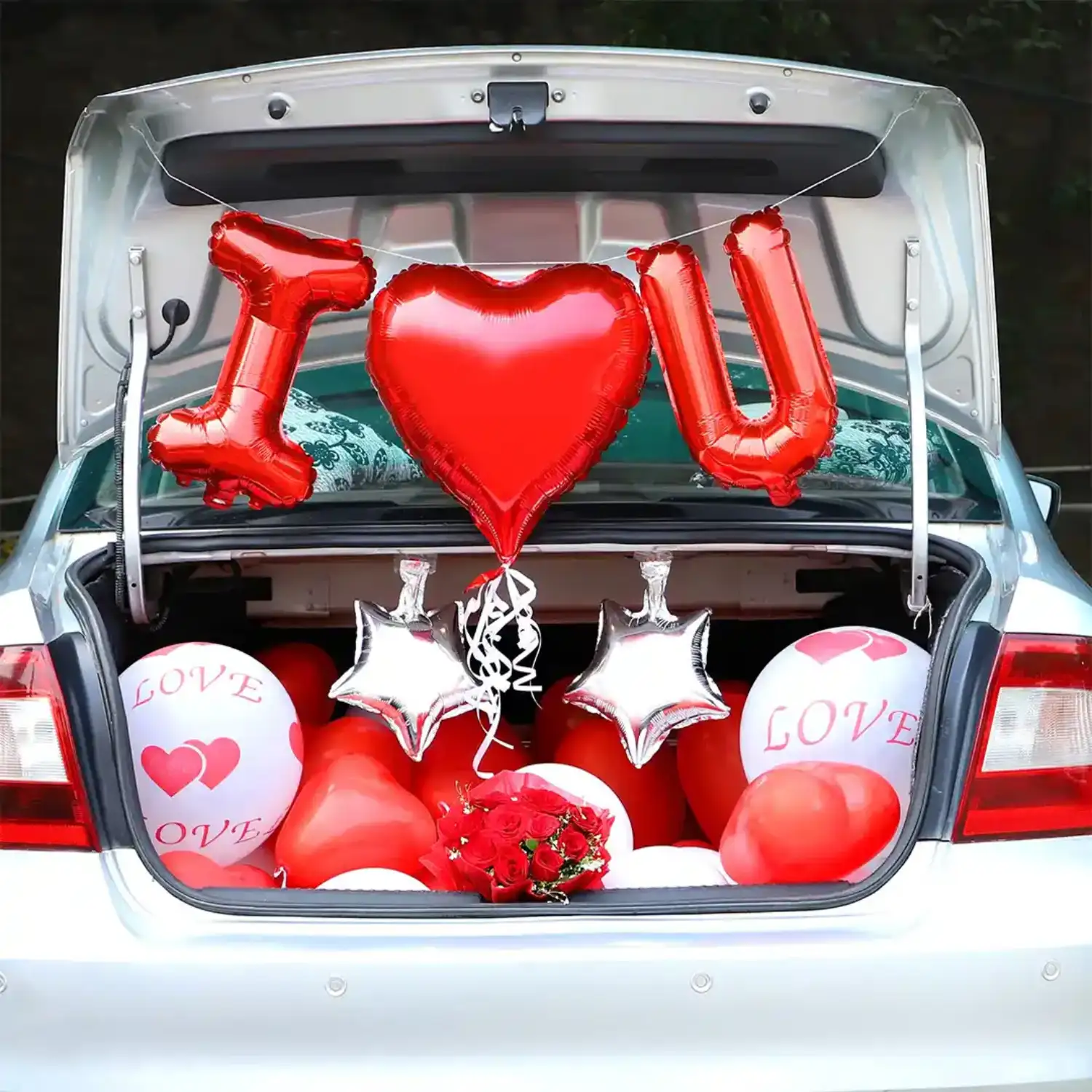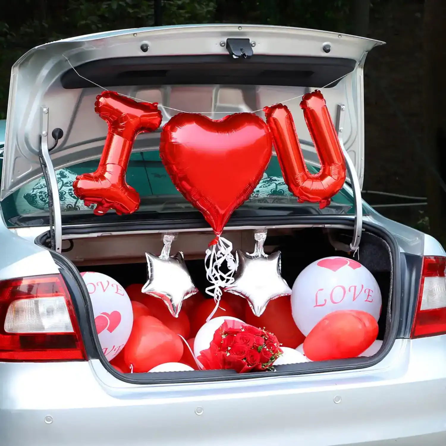 Surprise them with this beautiful car boot decor that reads I Love You !