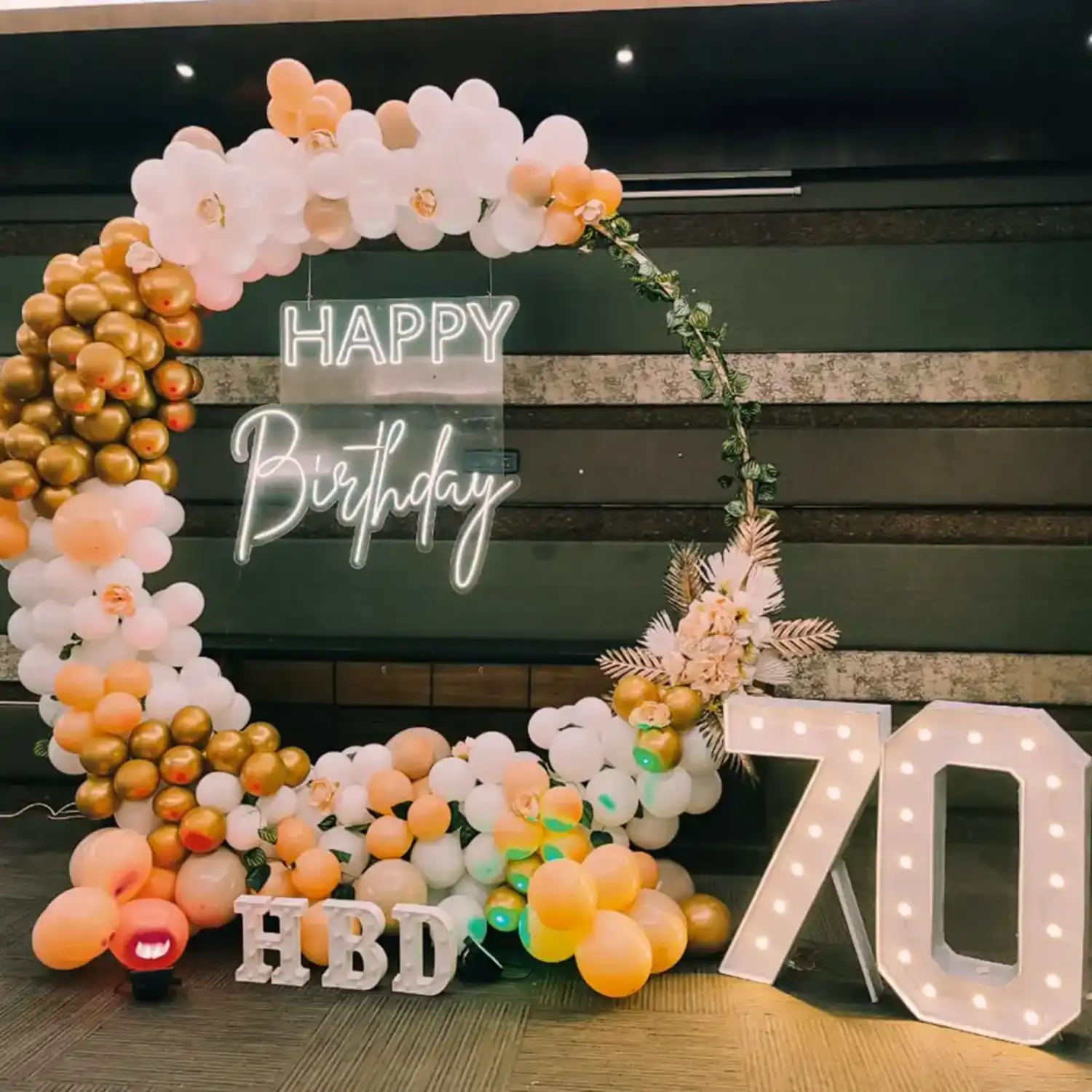 A beautiful balloon decoration idea for birthday celebrations at home.