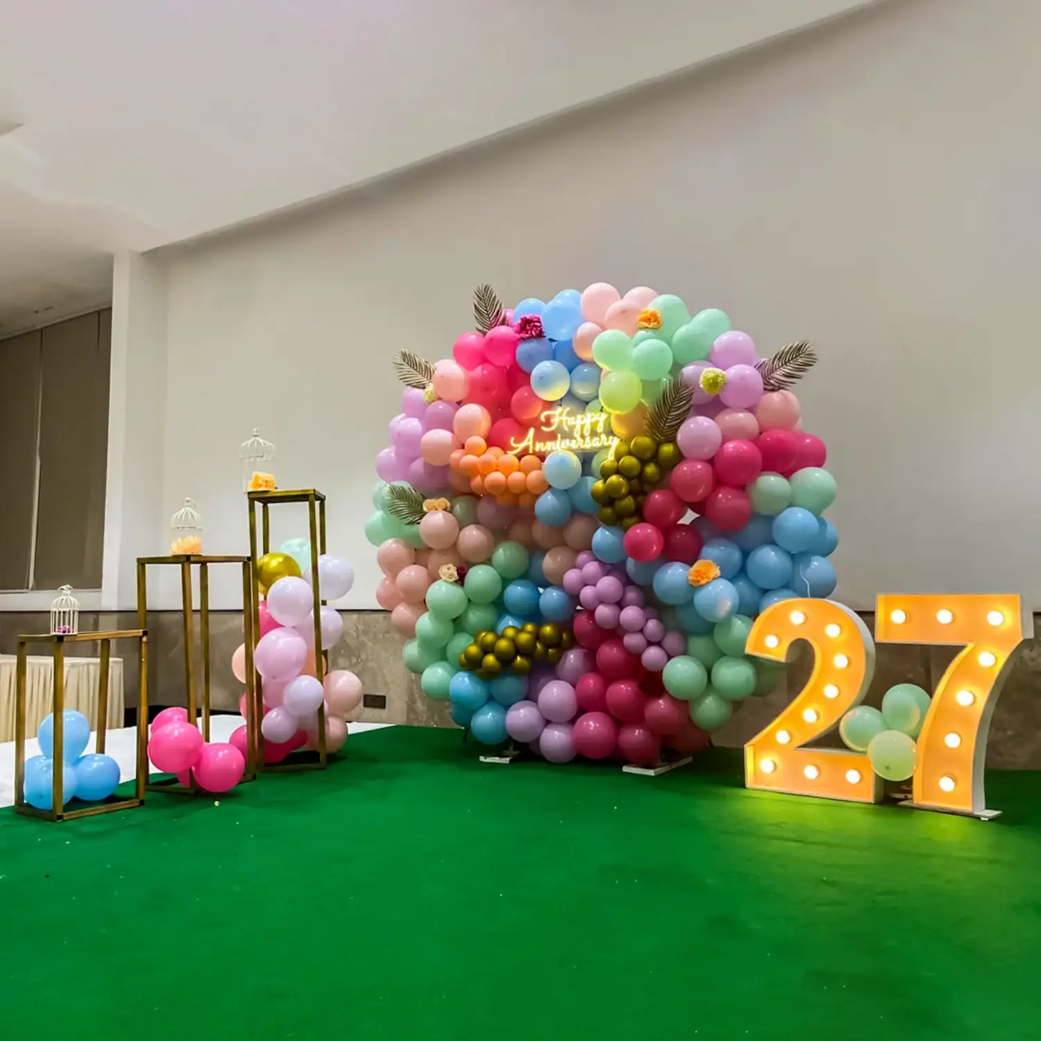 With this colourful balloon ring decoration, you can have an amazing anniversary celebration.