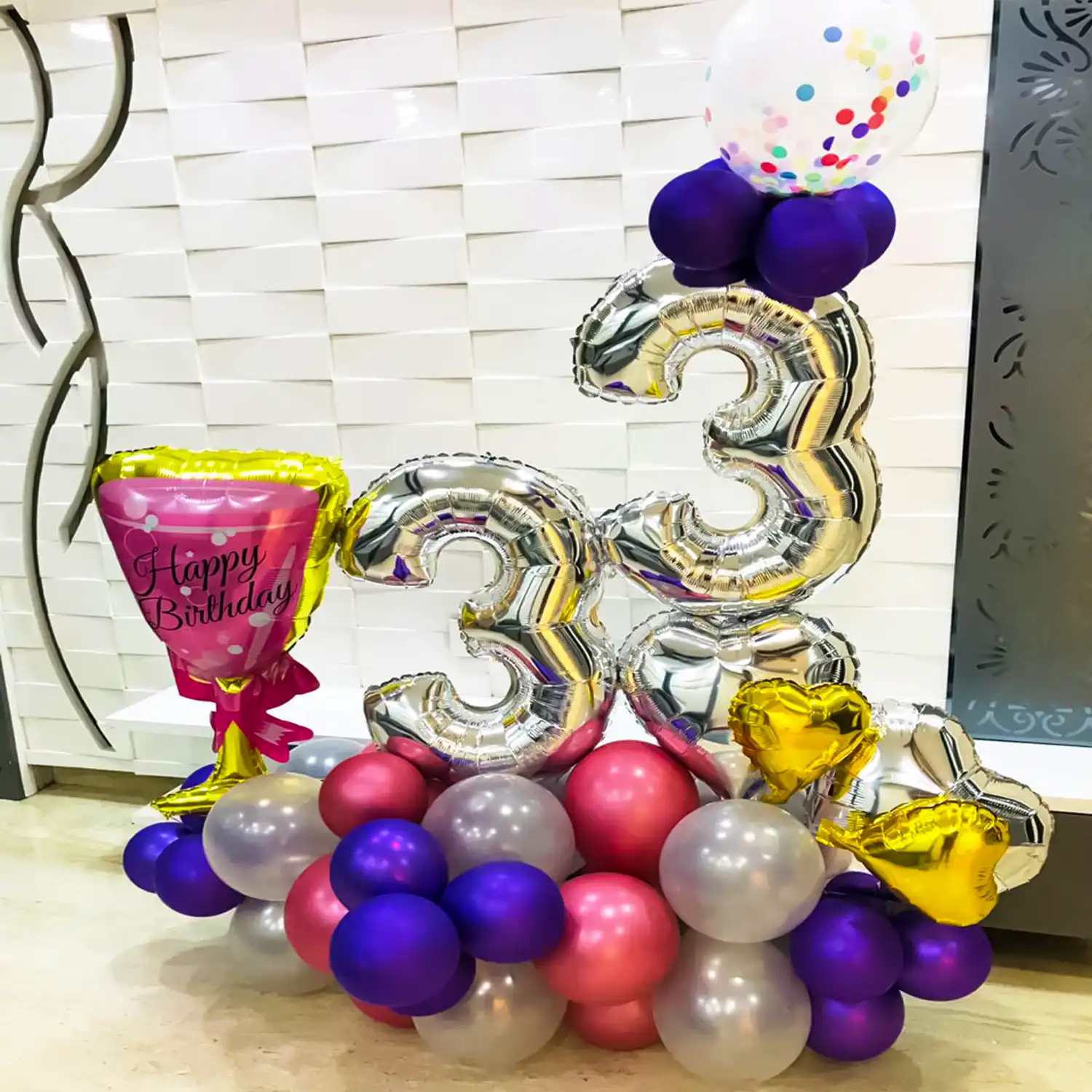 A beautiful balloon decoration idea for birthday celebrations at home.