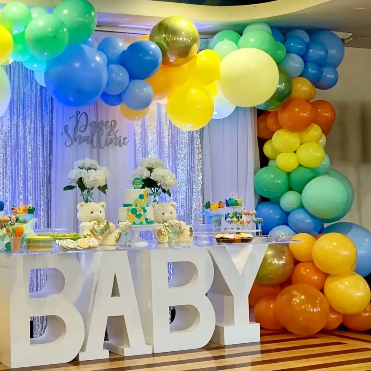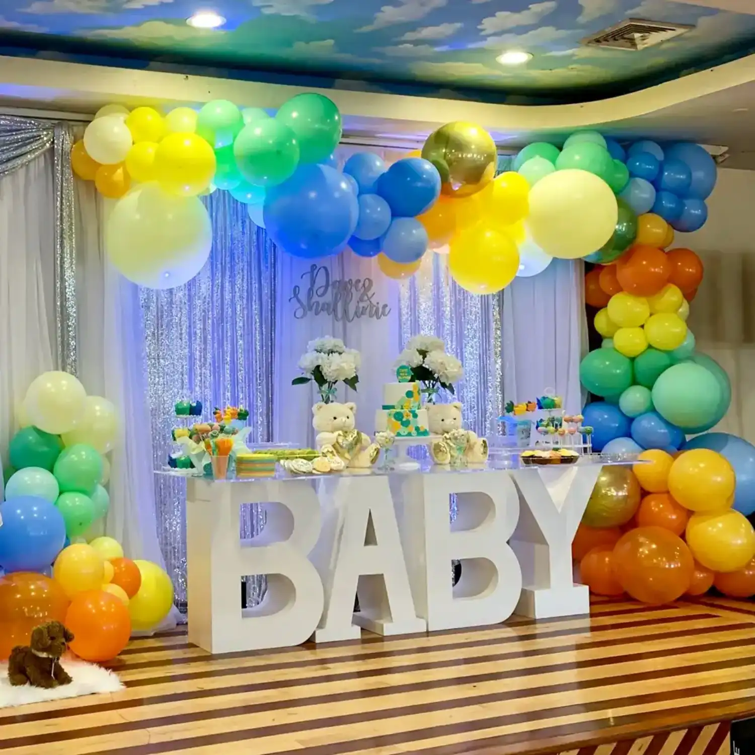Isn't this a beautiful baby shower balloon decoration theme?