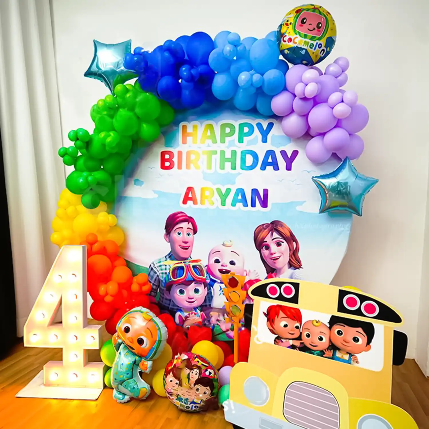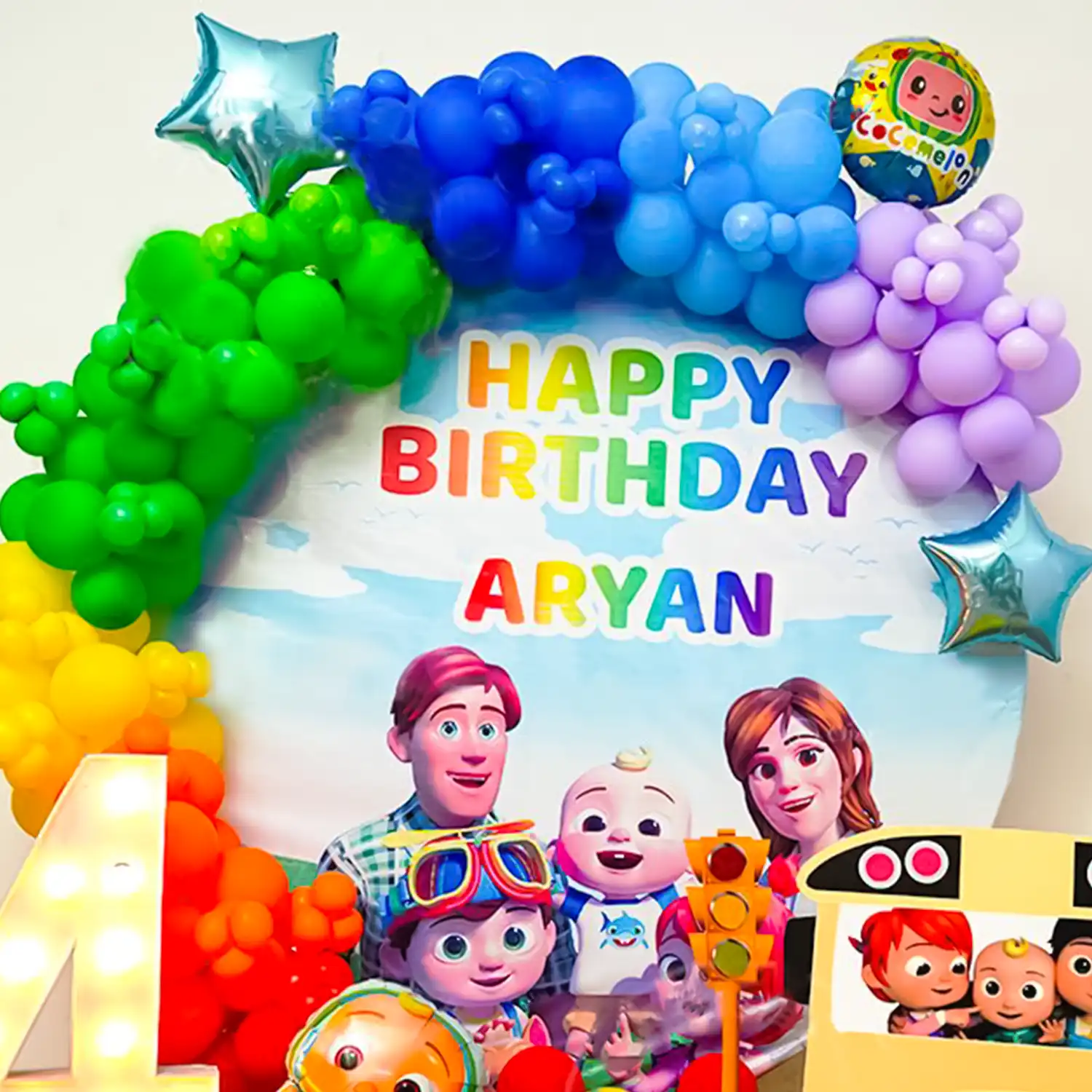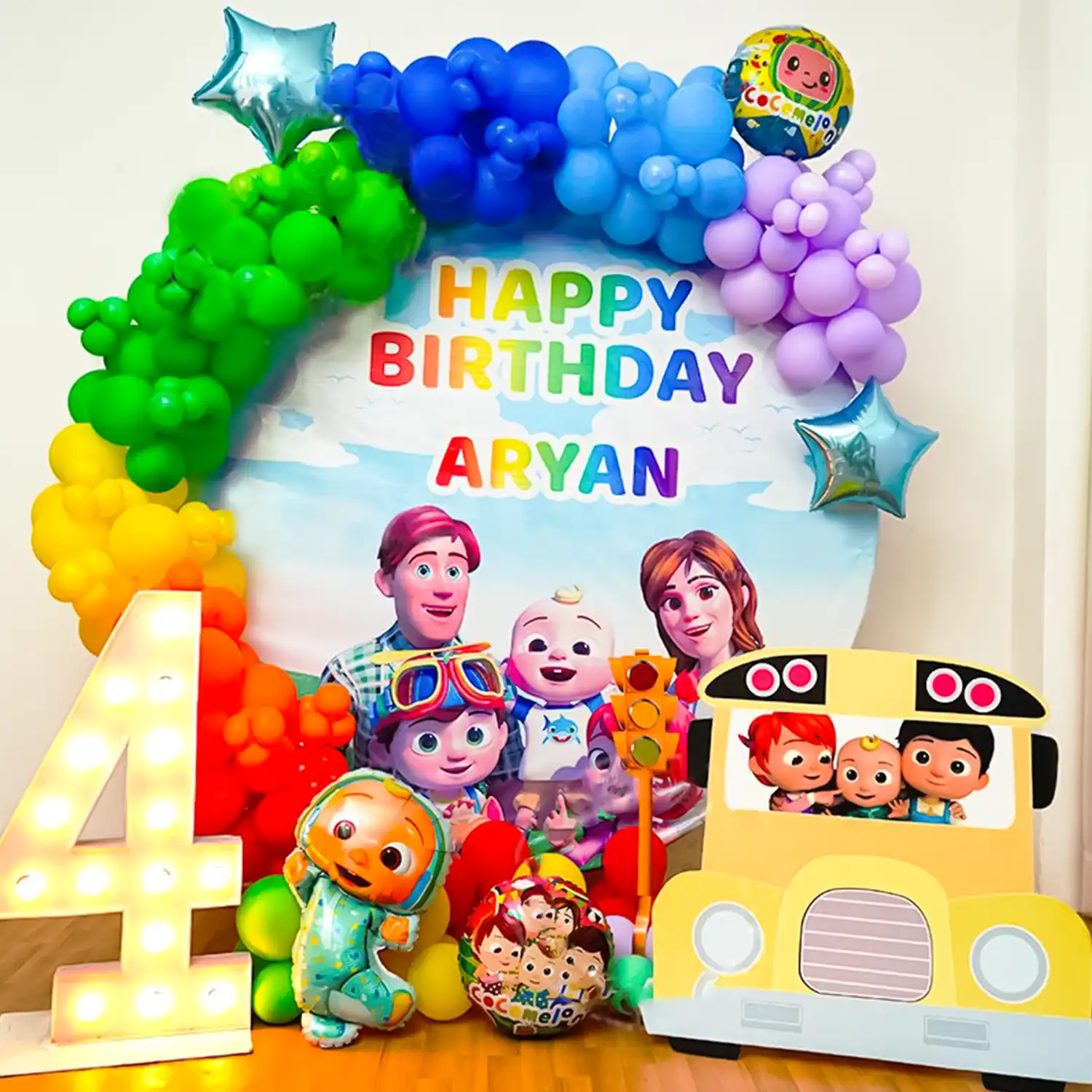 Start the fun filled birthday celebration with this colourful Cocomelon theme decoration!