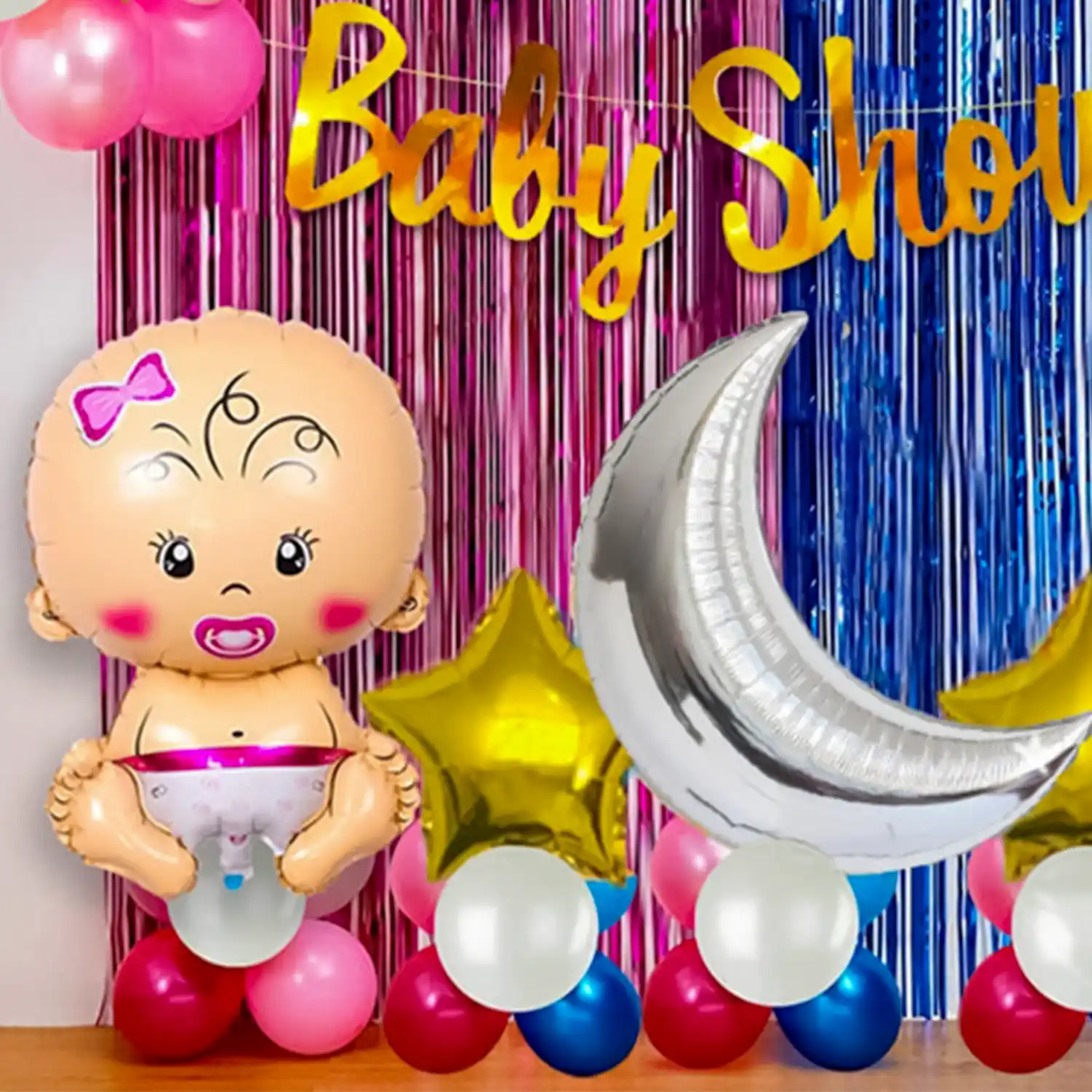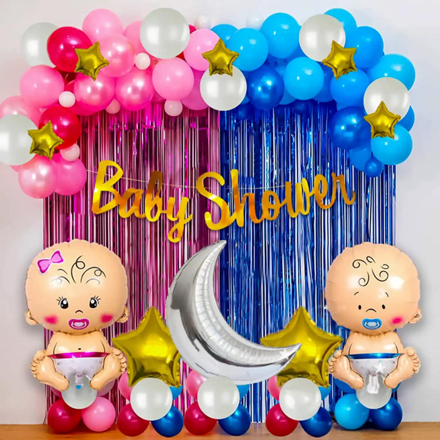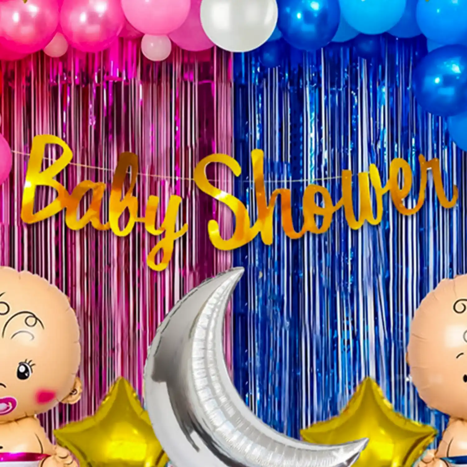 2 colours, 1 celebration! This is a pink and blue baby shower theme decoration.