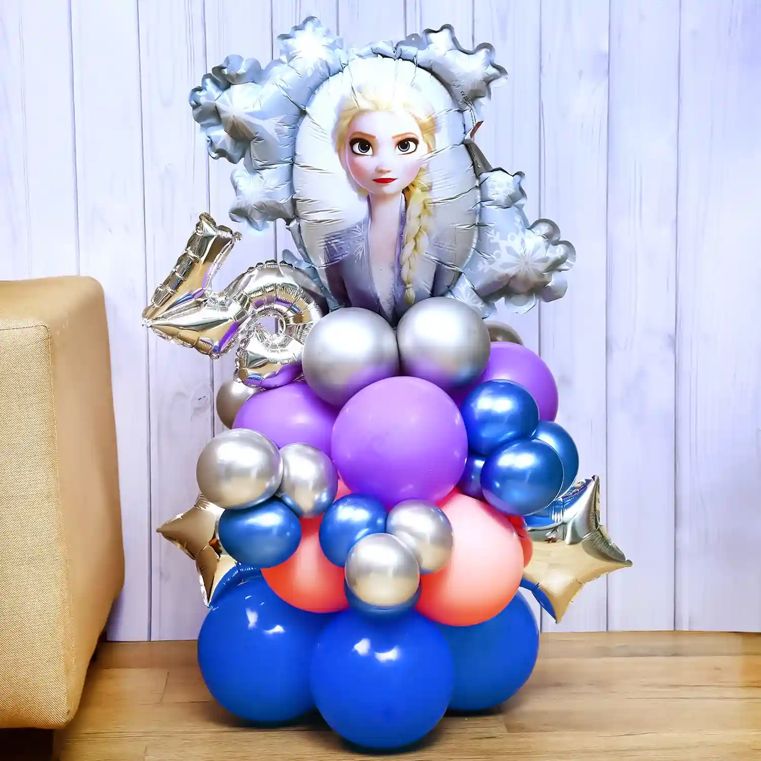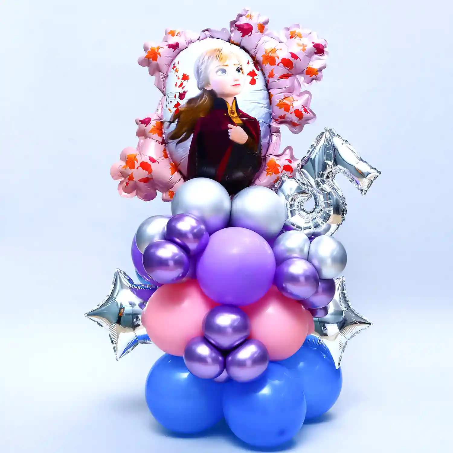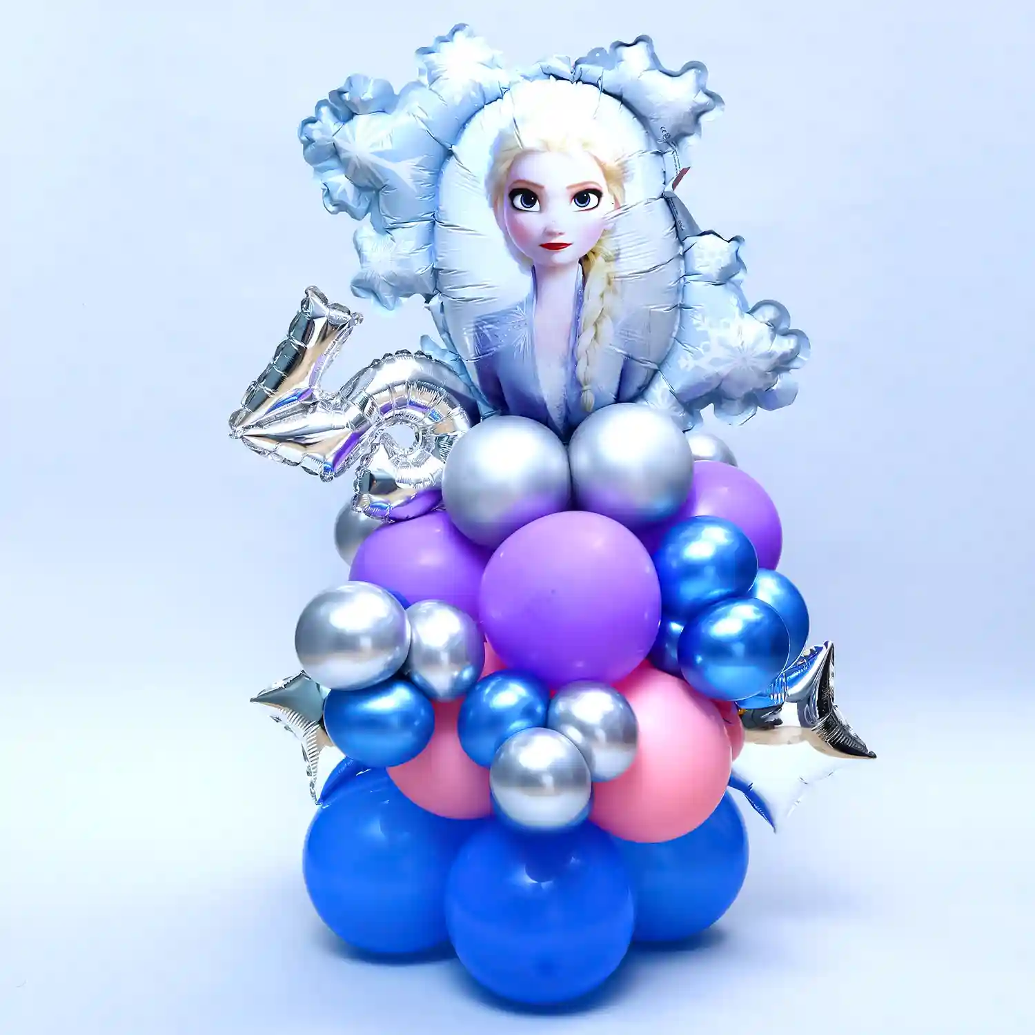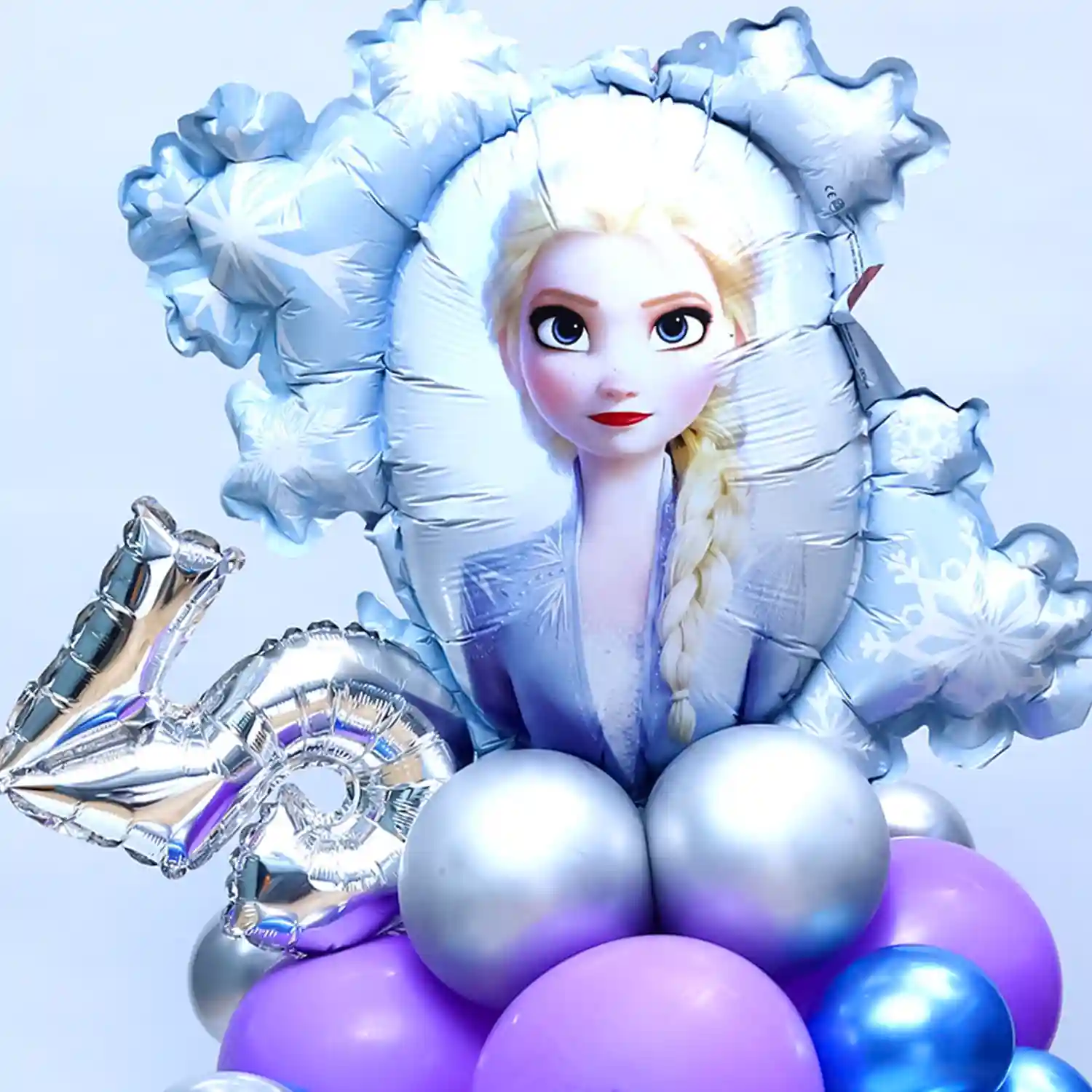 Here is a Princess Elsa balloon bouquet who is seen in the Disney fictional film, Frozen.
