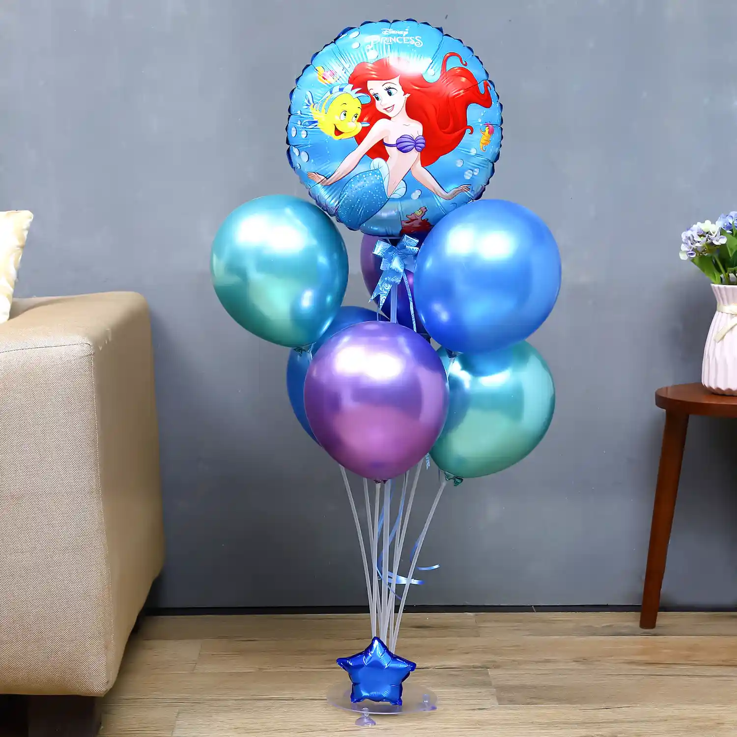 Fictional characters like mermaids fascinate every girl child and so here we have a Disney Princess Ariel balloon bouquet.