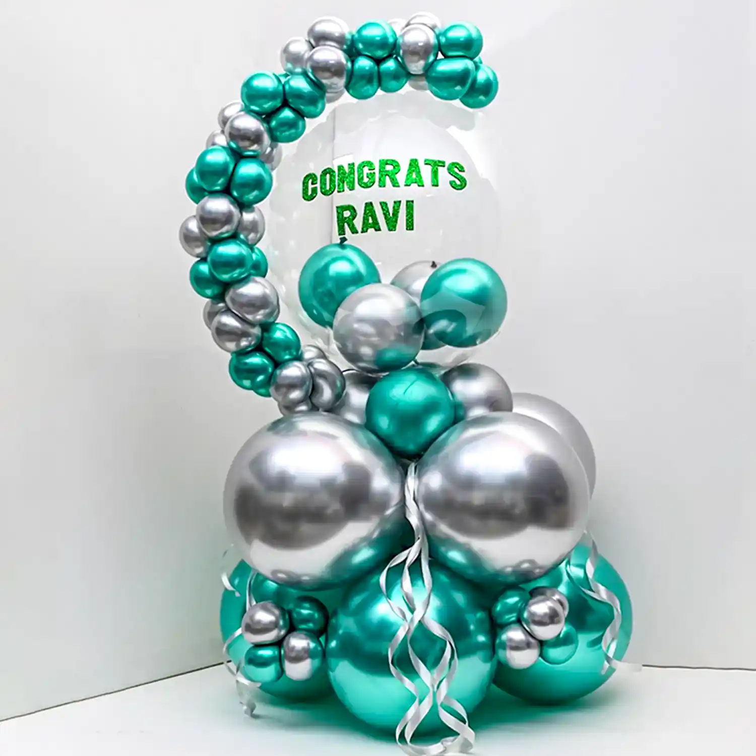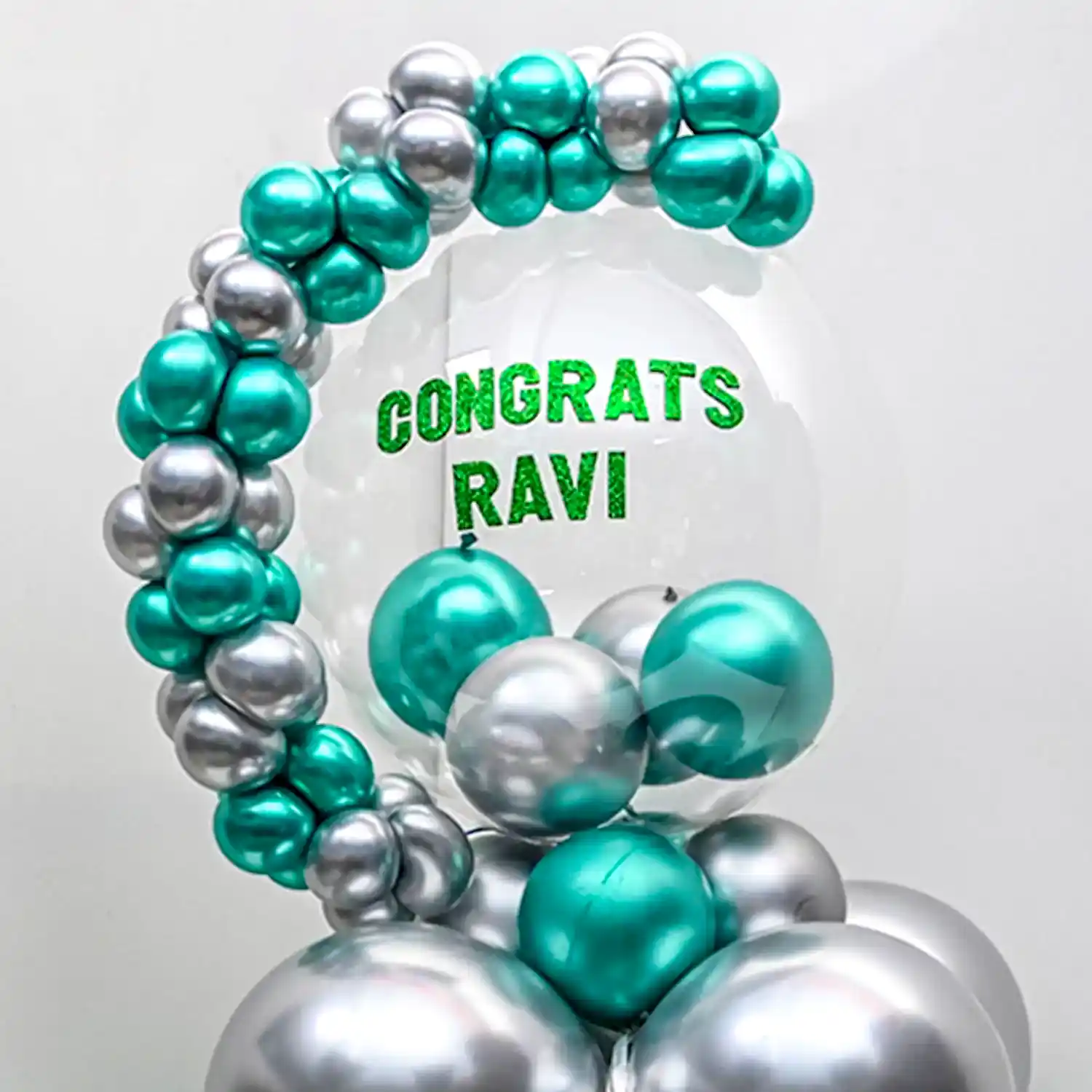 Celebrate their happiness with this personalized congrats balloon bouquet.