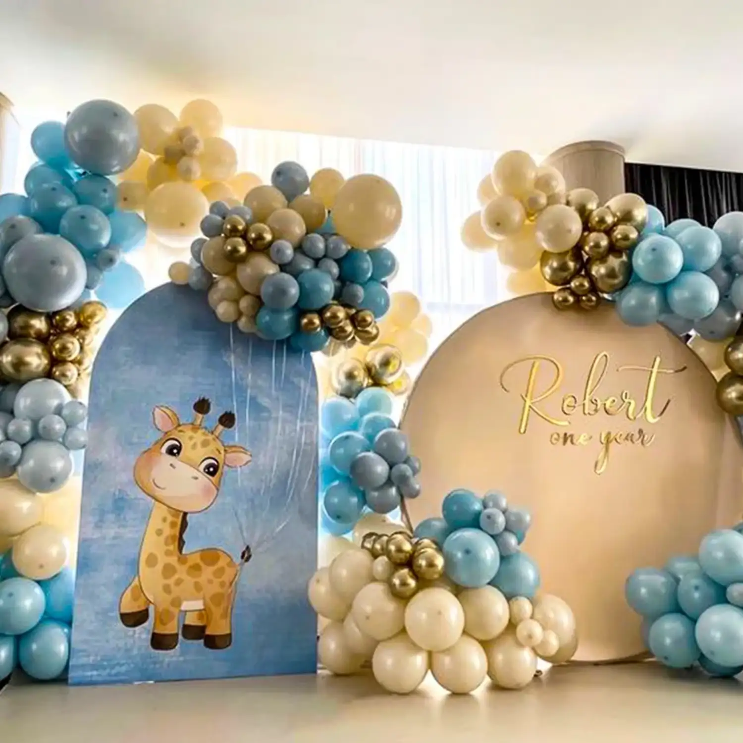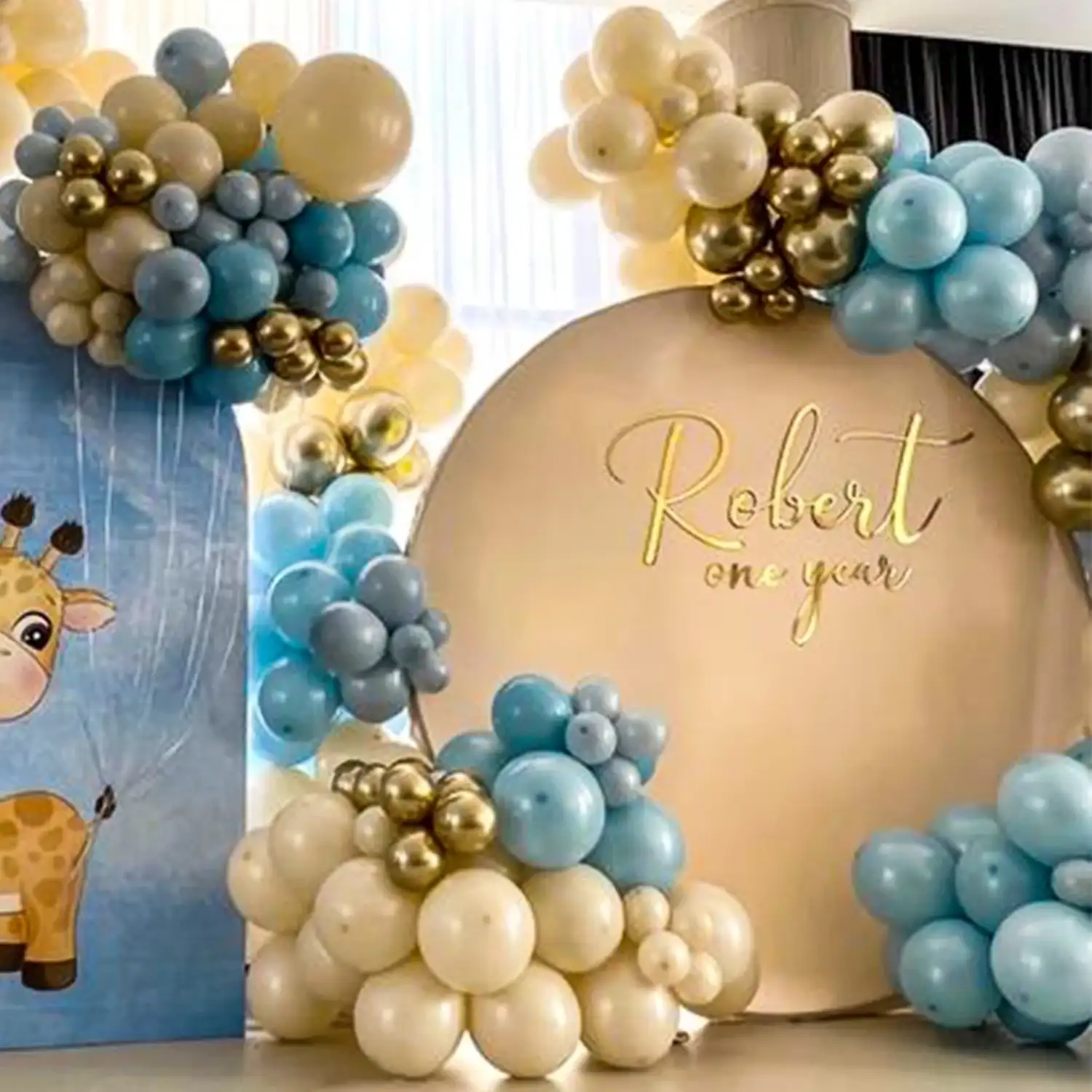 Round balloon arch decoration in a similar look.