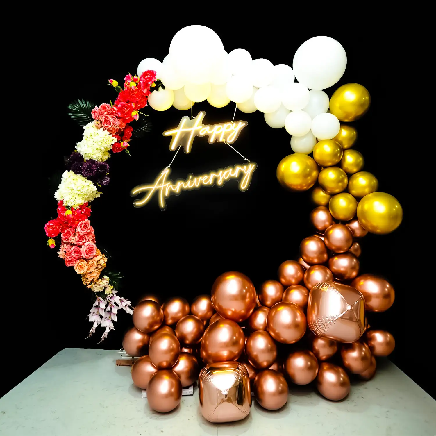A beautiful ring decoration idea for grand anniversary celebrations.