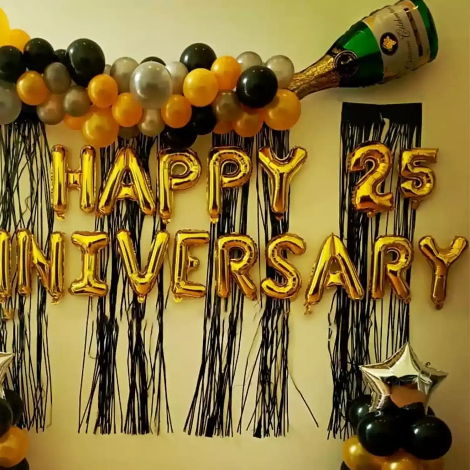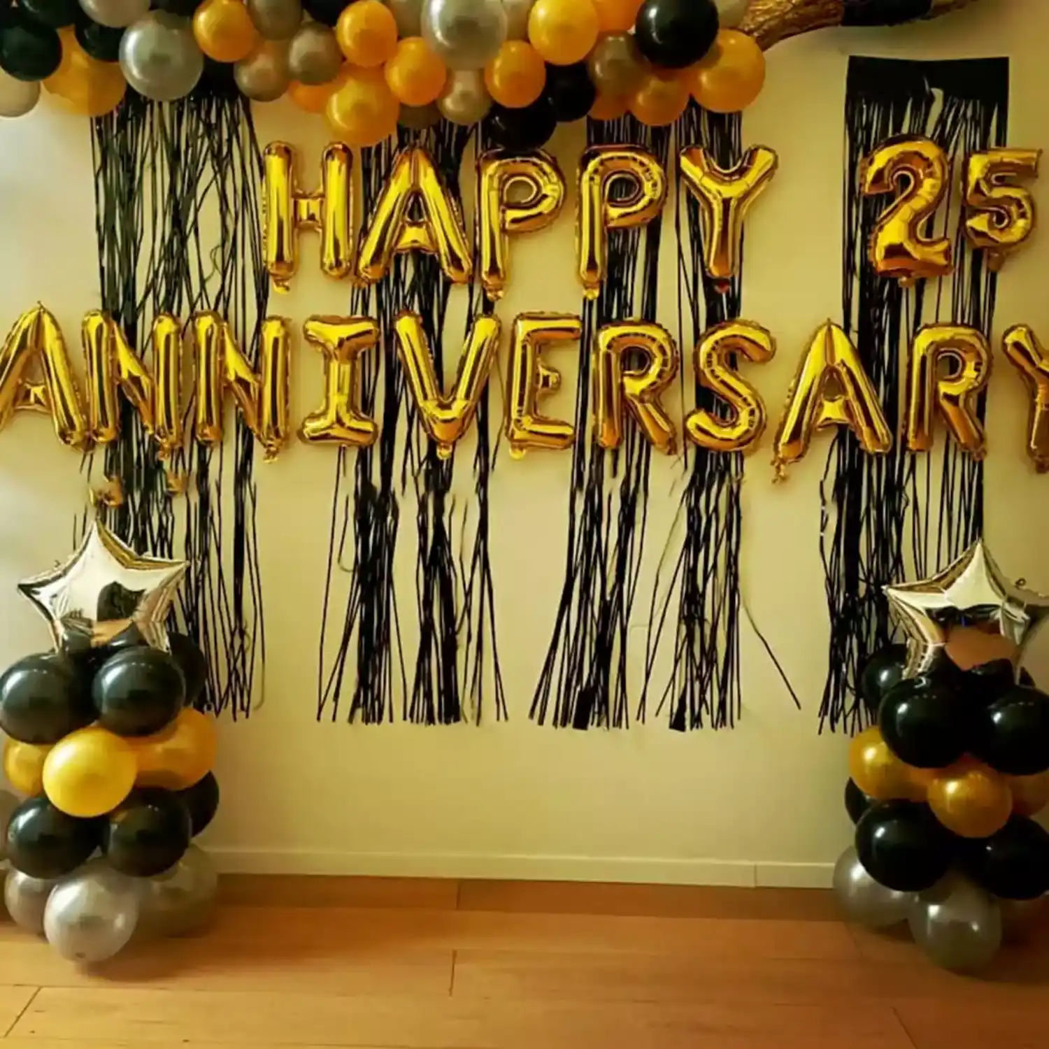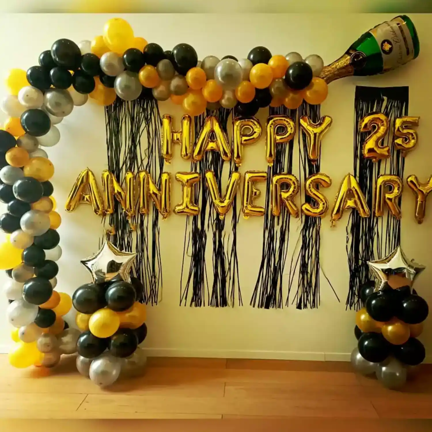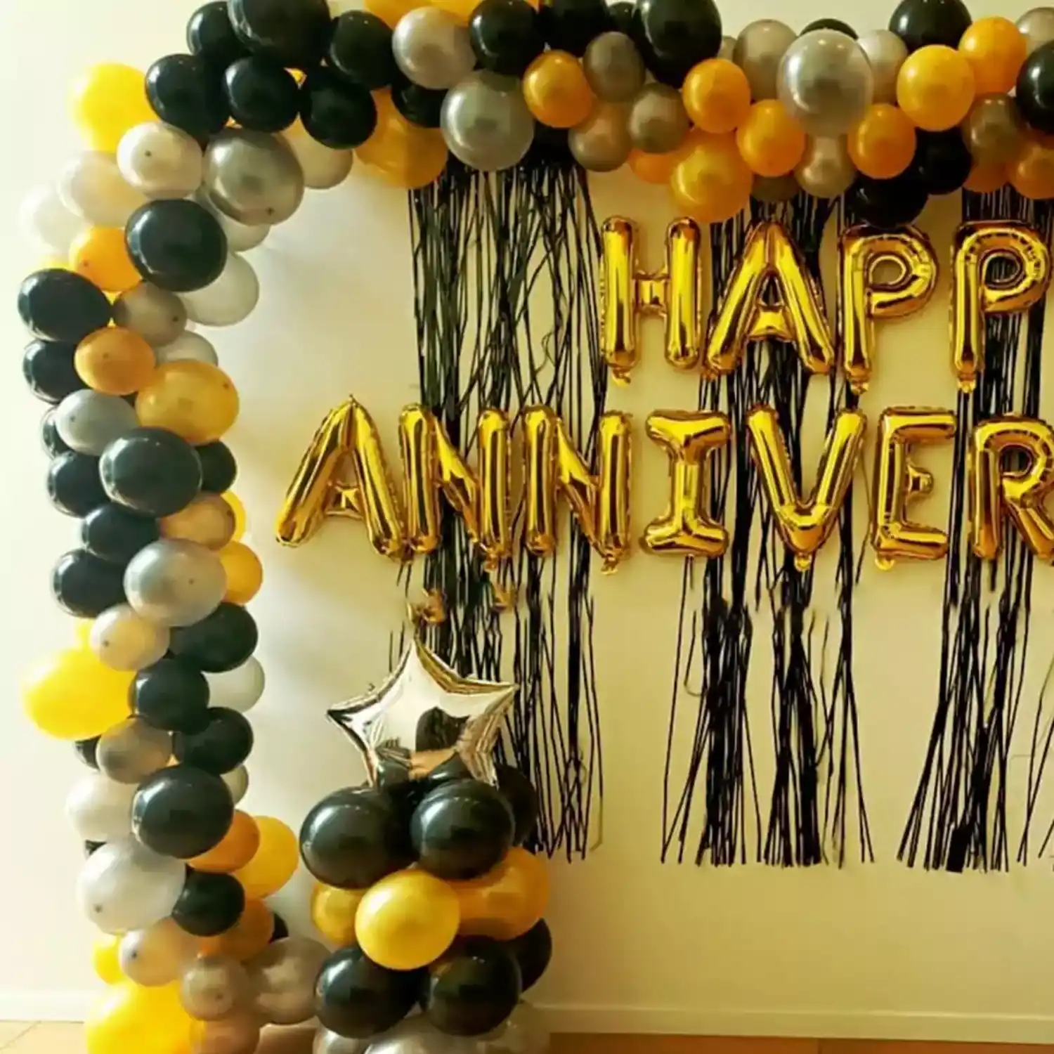 Elegant black and gold decor for anniversary surprises to make love stronger!