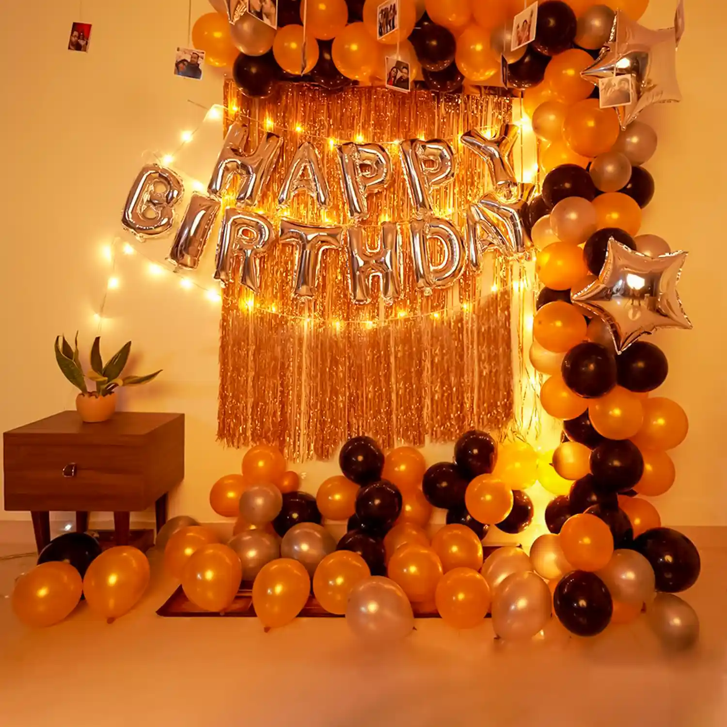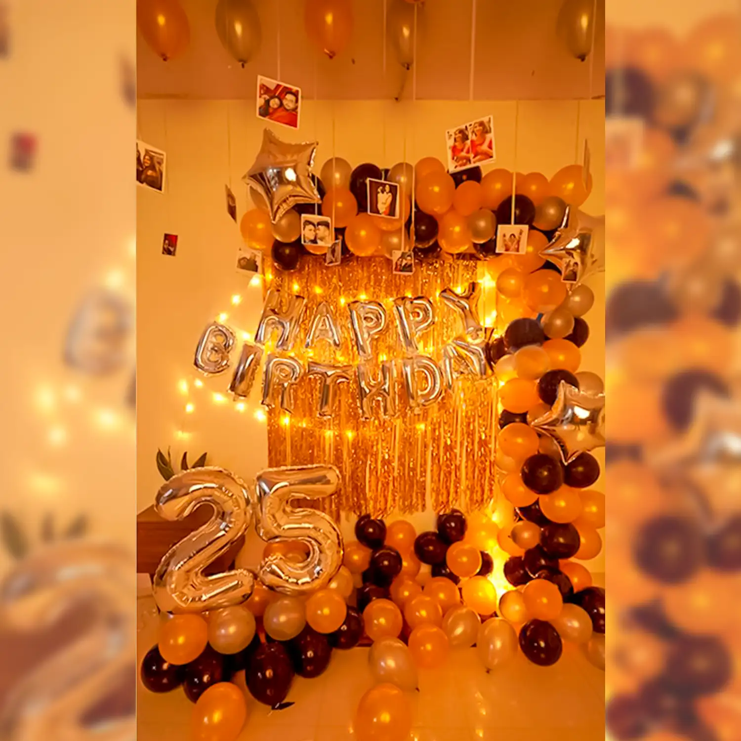 A beautiful balloon decoration idea for birthday celebrations at home.