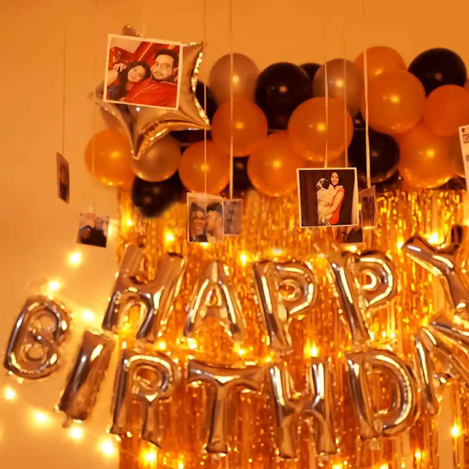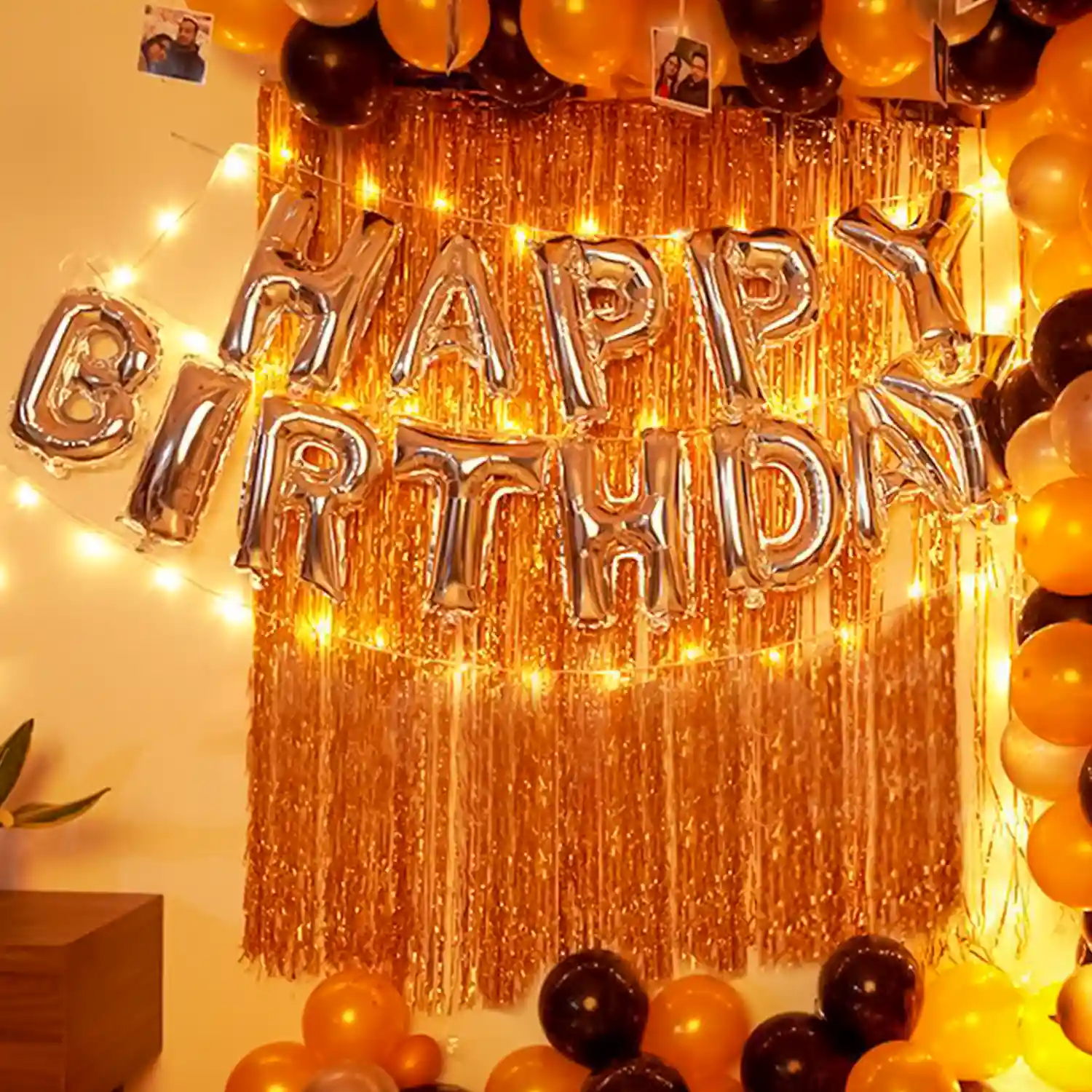 Dazzling in gold, black and silver, this is a birthday decor idea.