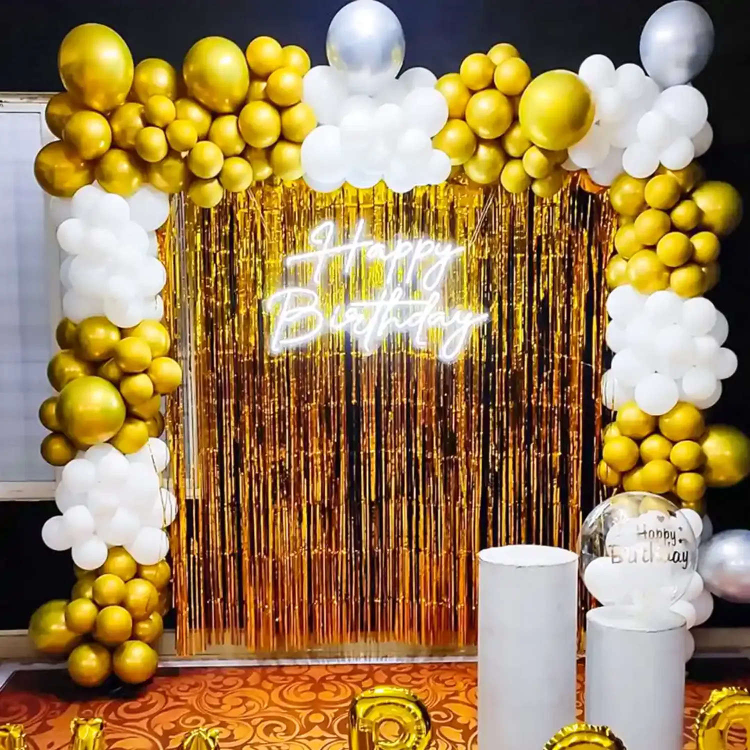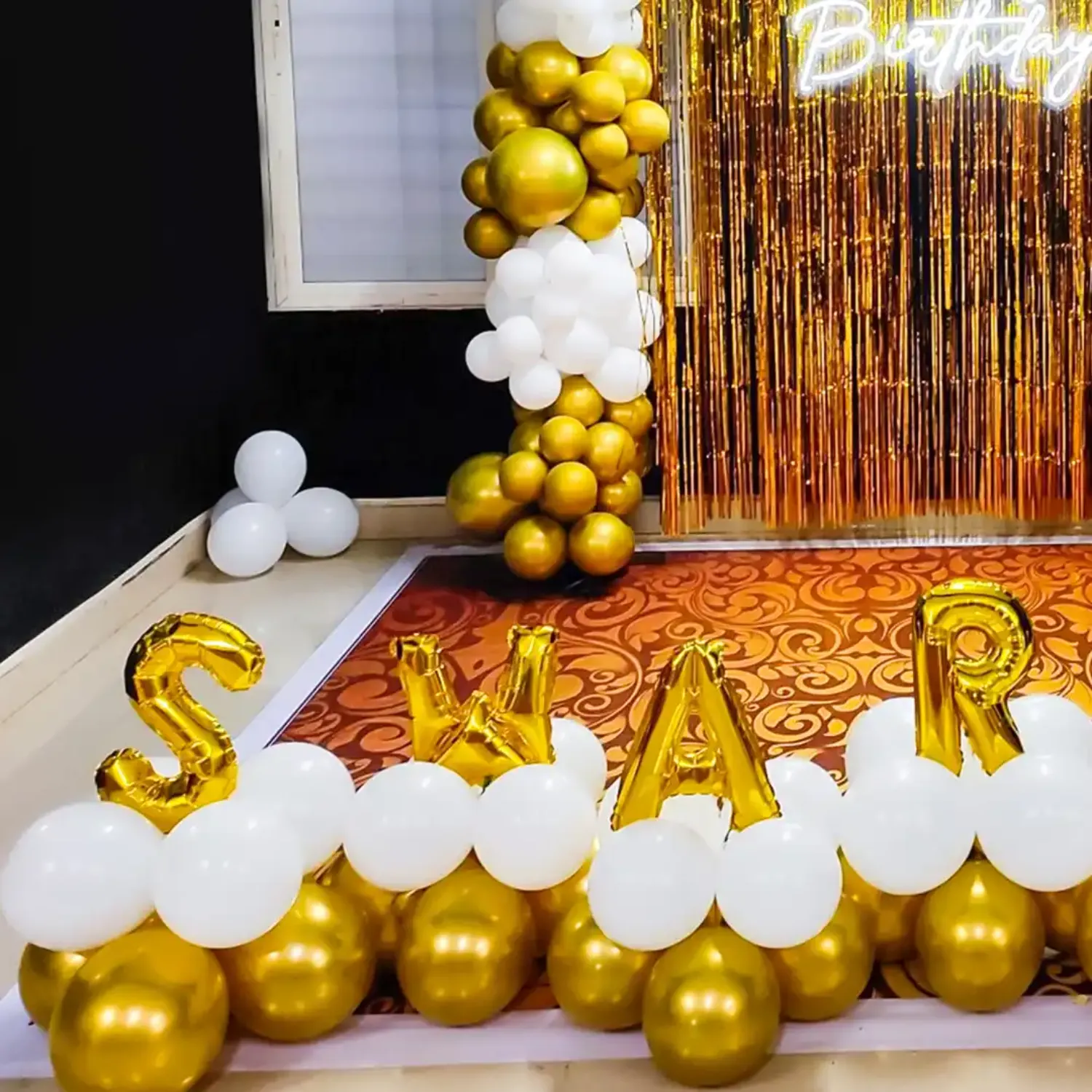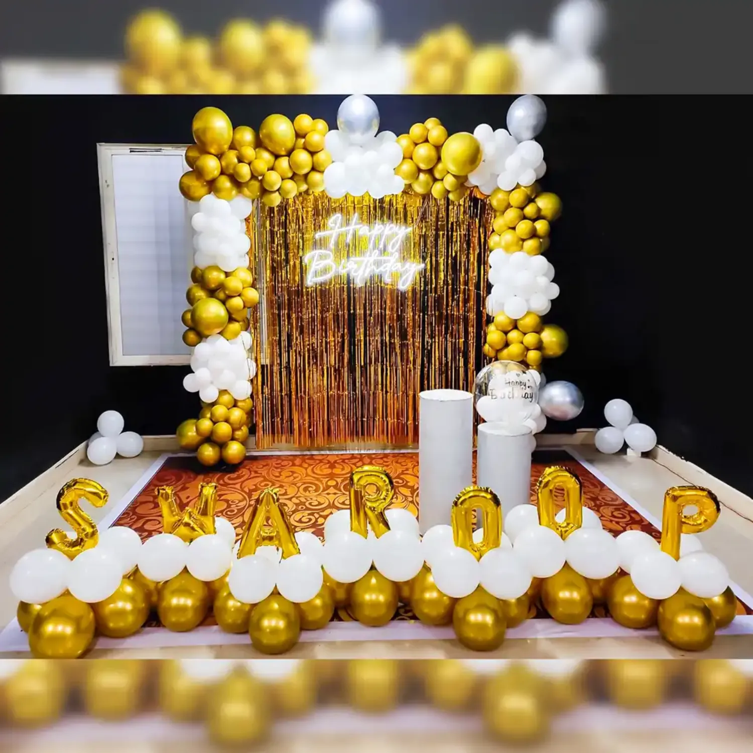 A beautiful balloon decoration idea for birthday celebrations at home.