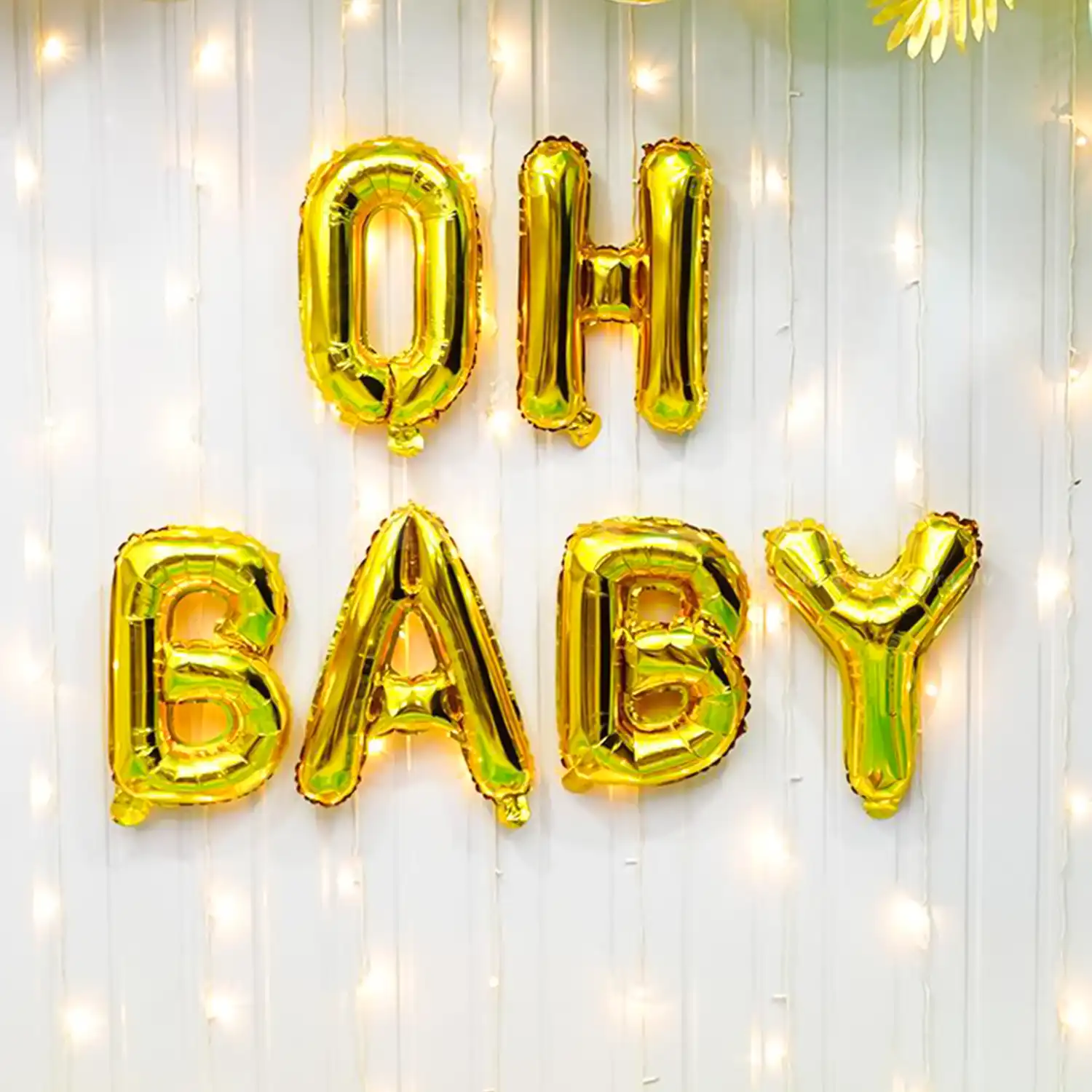Pretty pink baby girl balloon bouquet with a customized name for decor.
