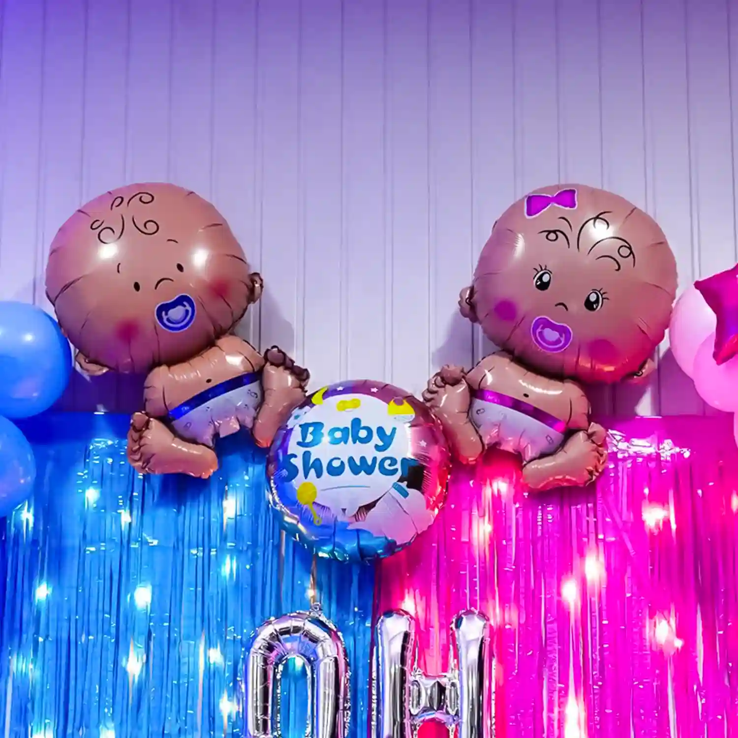 • 2 Baby Face Foil Balloons (1 Girl and 1 Boy)