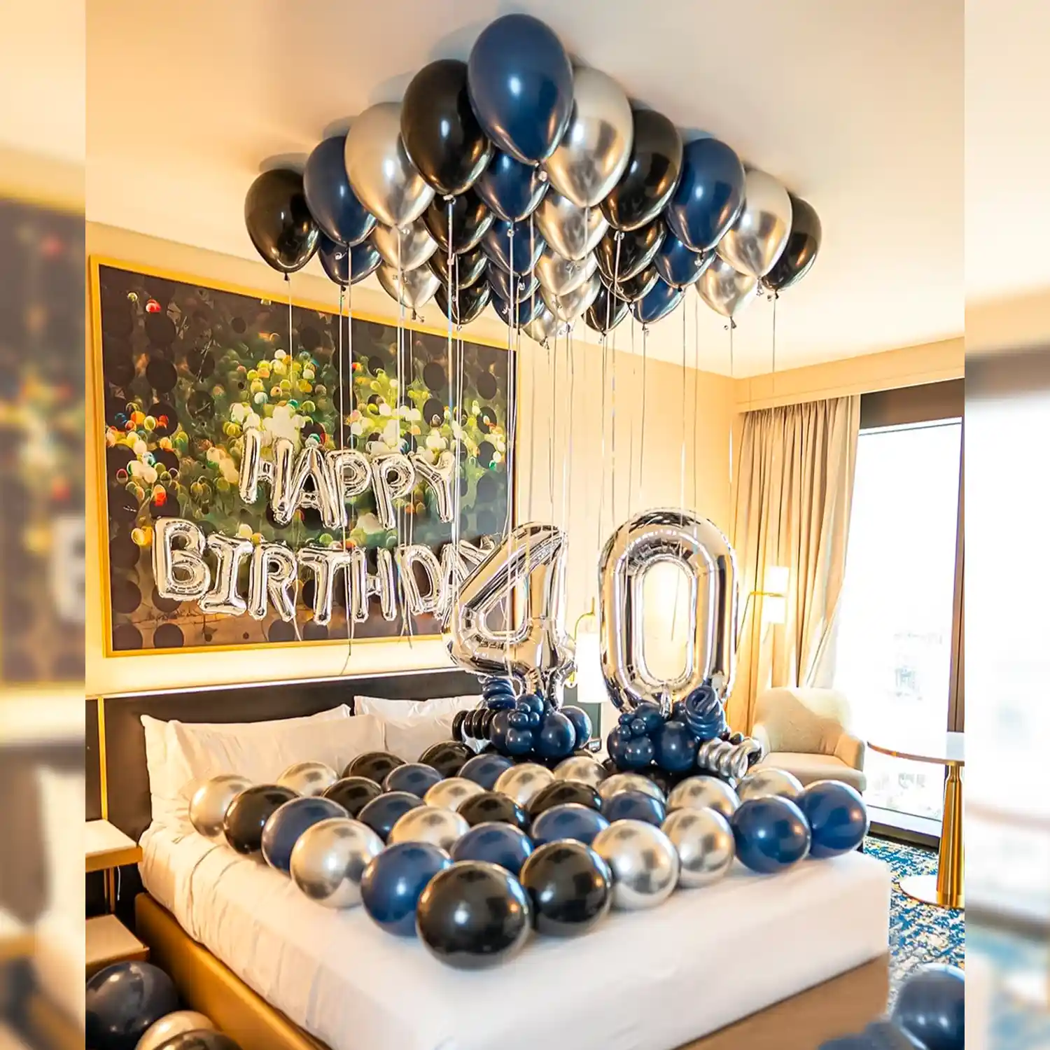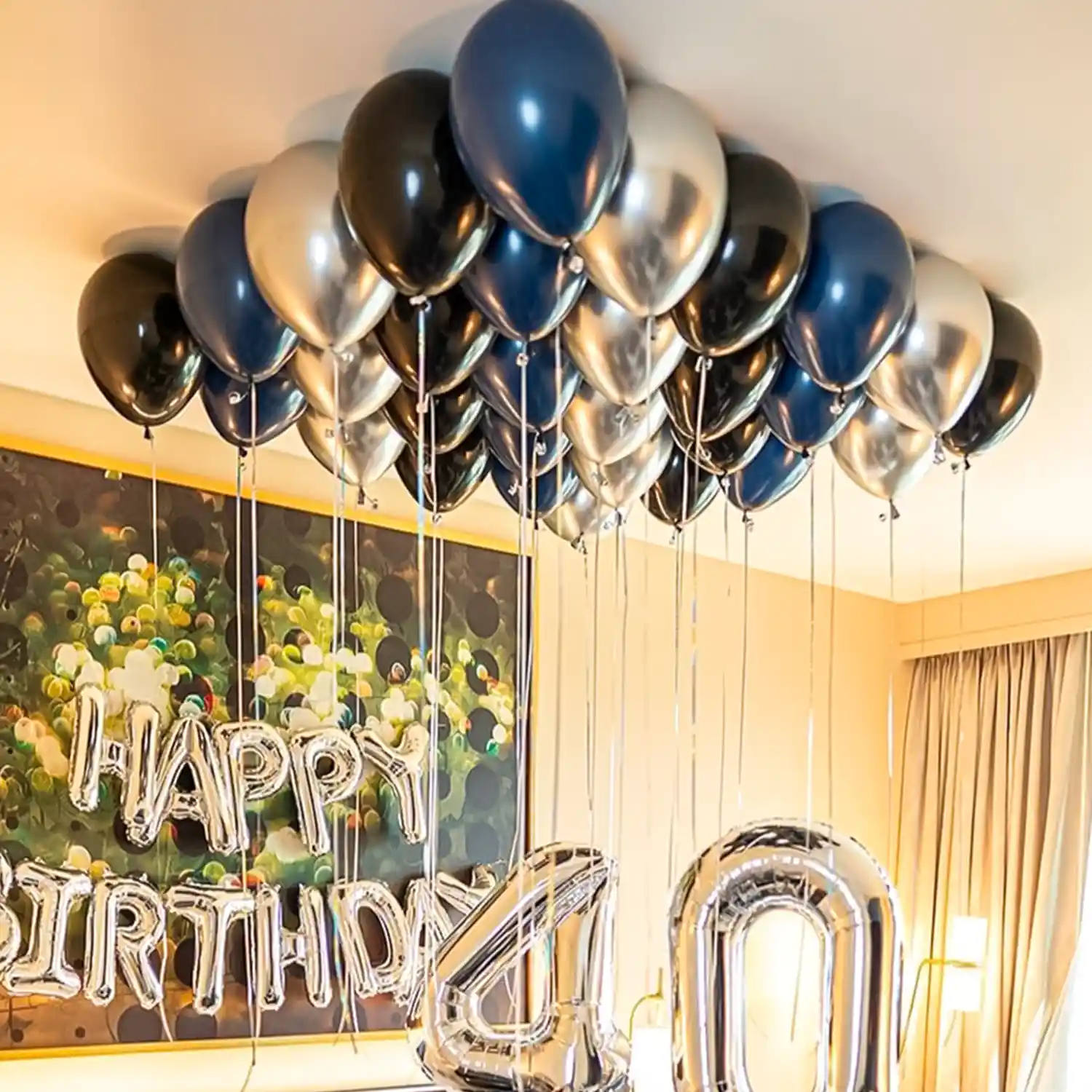 A beautiful balloon decoration idea for birthday celebrations at home.