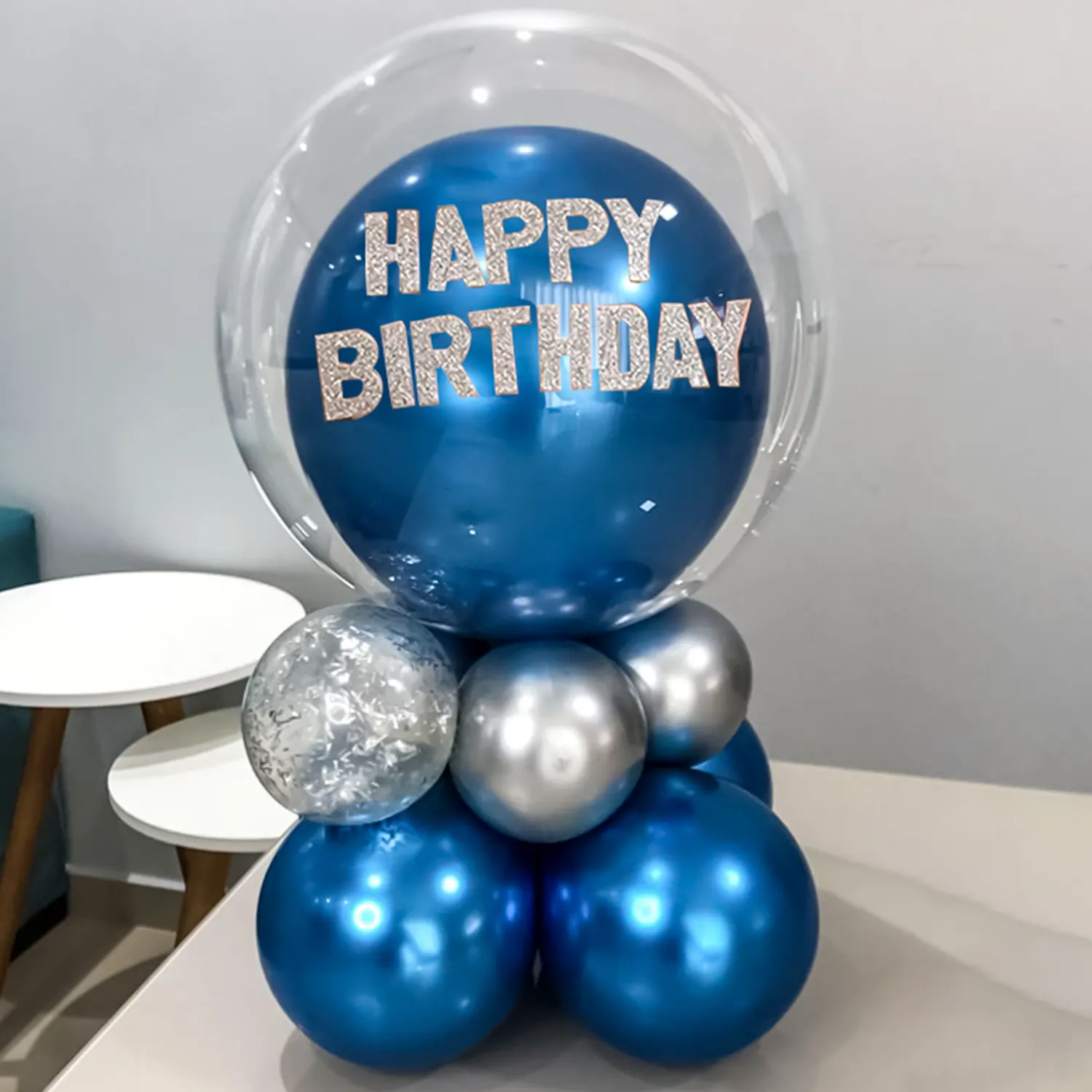 Birthday wishes beautifully wrapped in a blue bobo balloon bouquet!