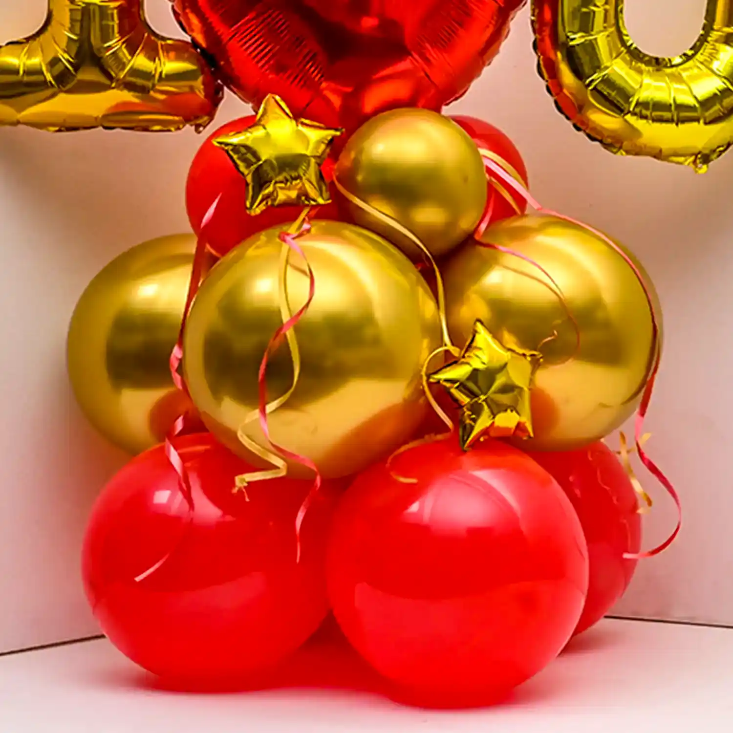 A beautiful balloon decoration idea for birthday celebrations at home.