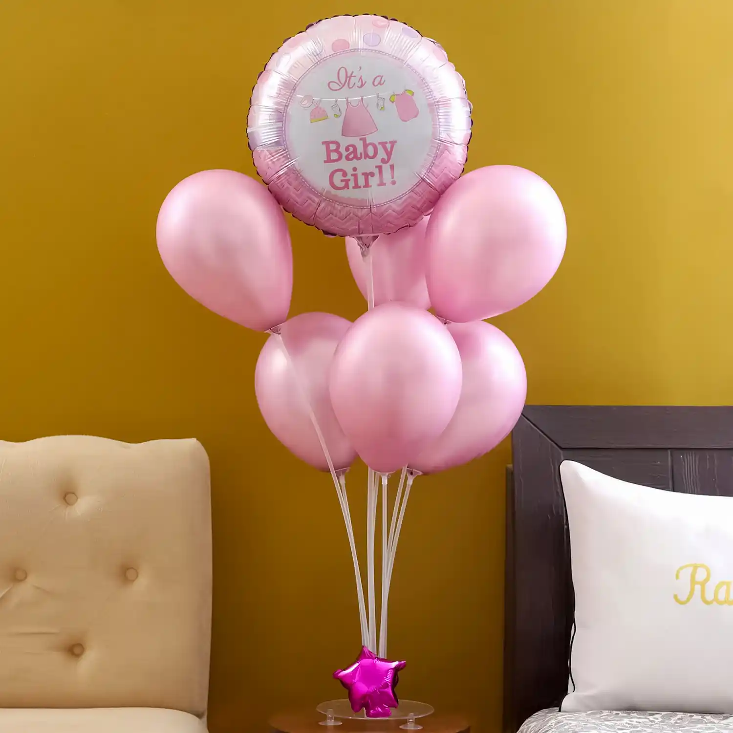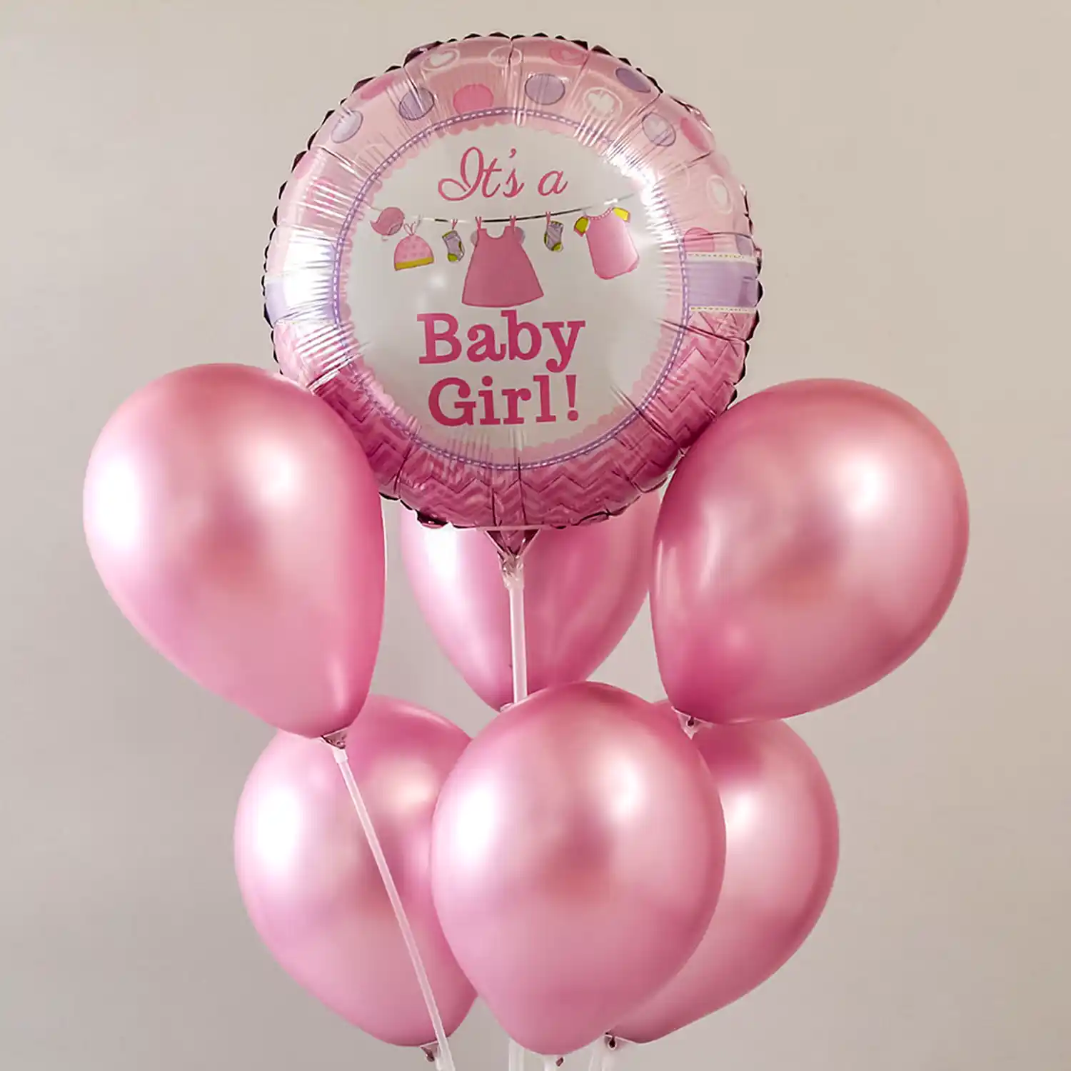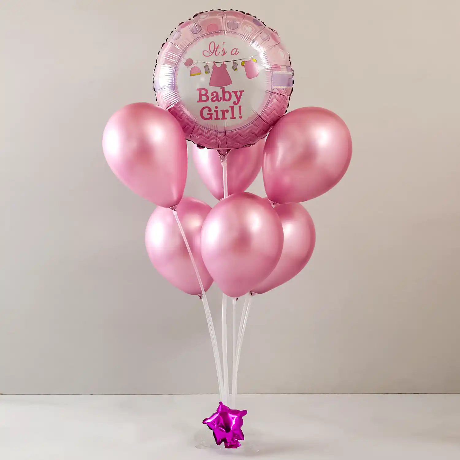 Celebrate the birth of your little angel with this baby girl balloon bouquet.