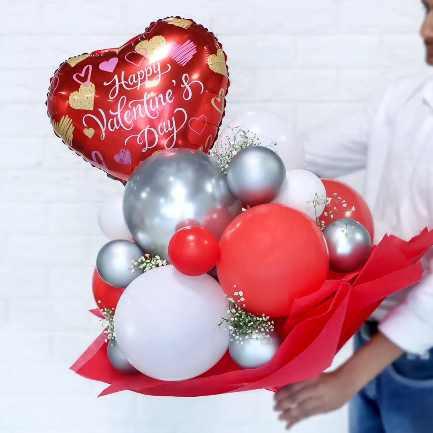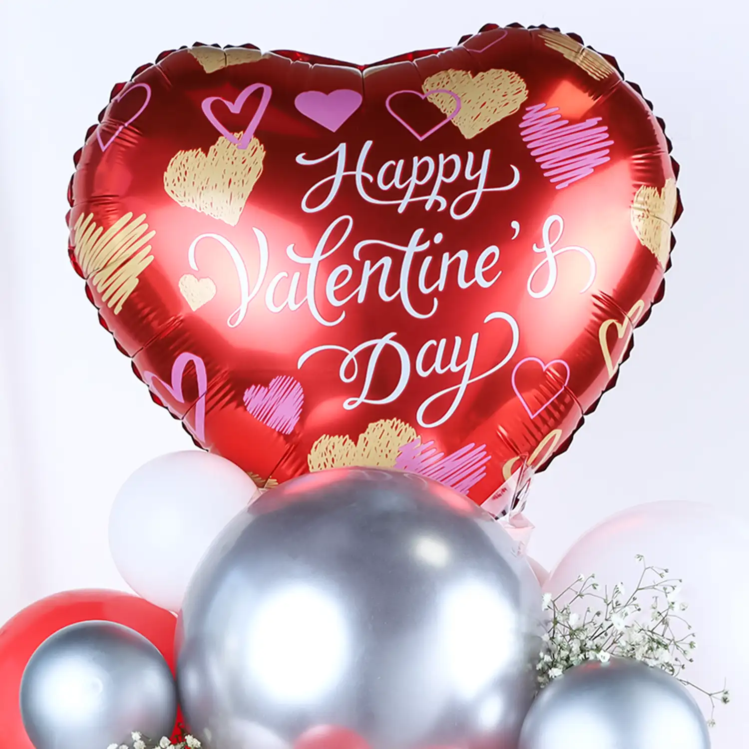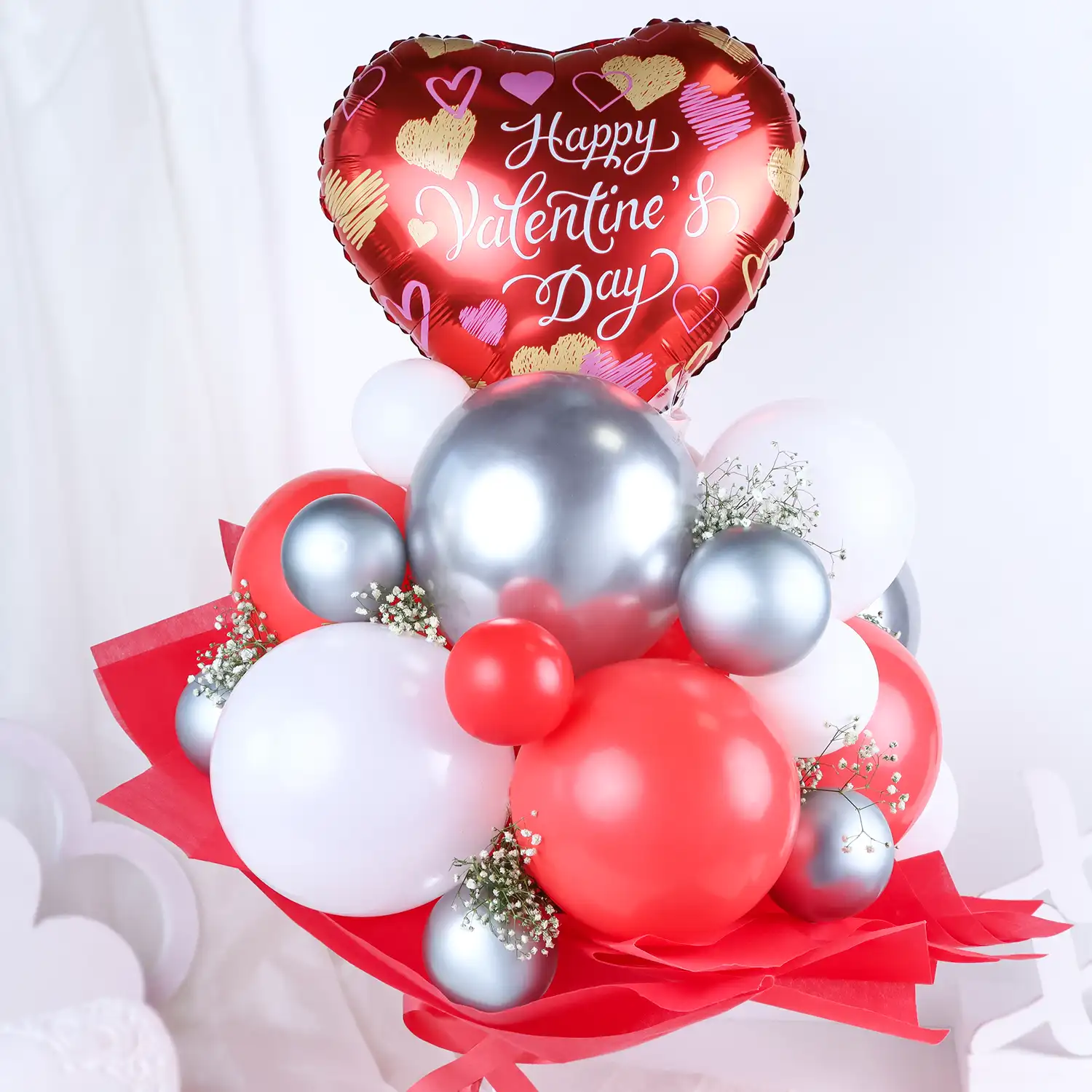 Spread the charm of Valentines Day with this romantic balloon bouquet.