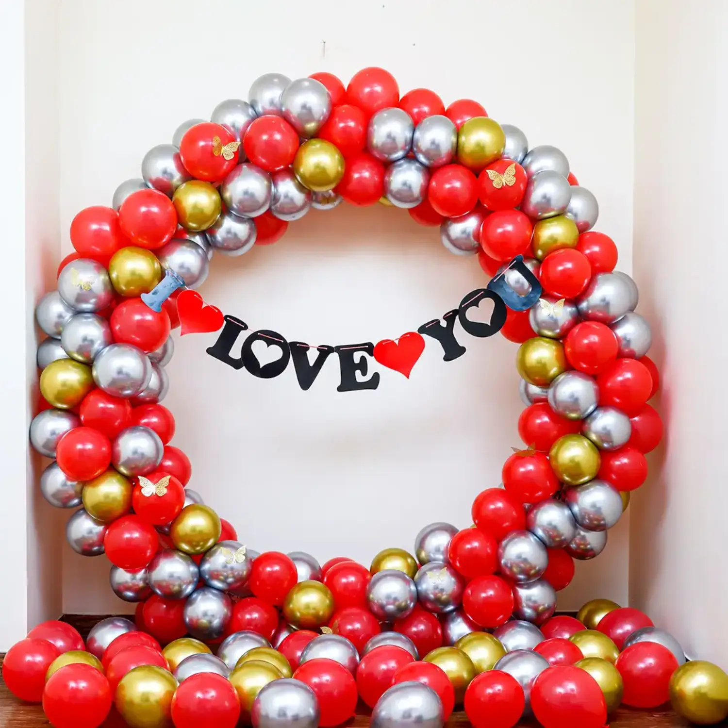 A gorgeous love you balloon ring decoration for romantic celebrations.