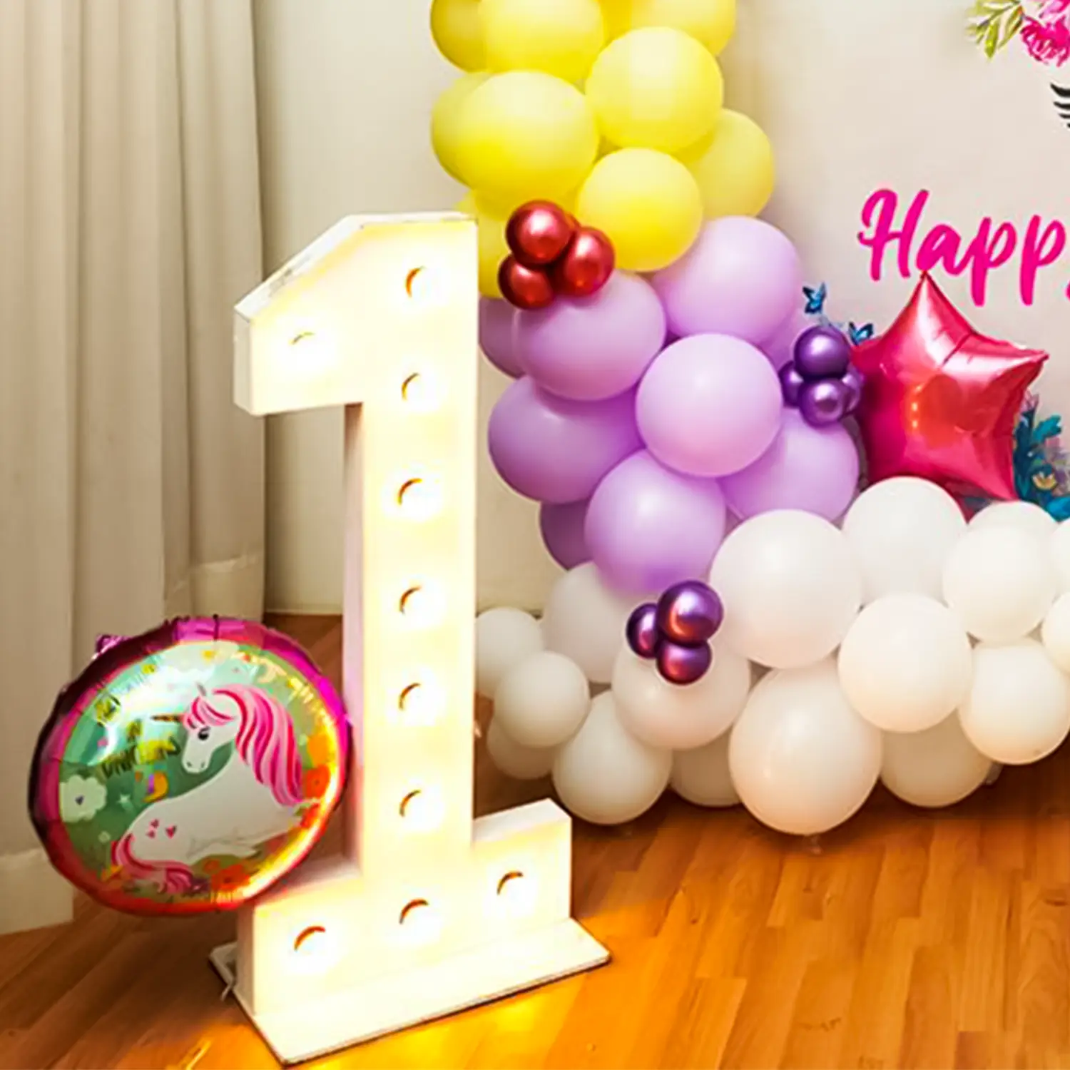 A beautiful balloon decoration idea for birthday celebrations at home.