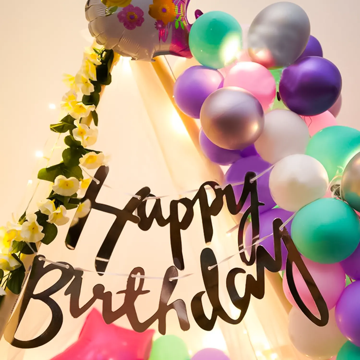 A beautiful balloon decoration idea for birthday celebrations at home.