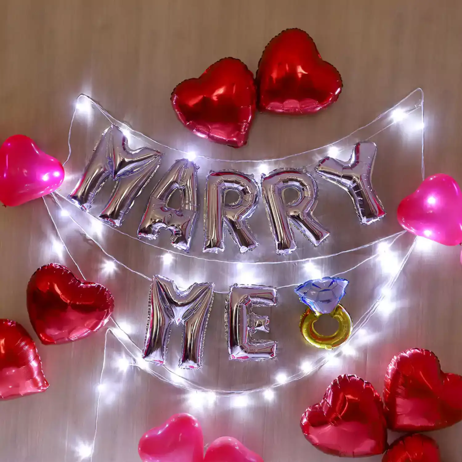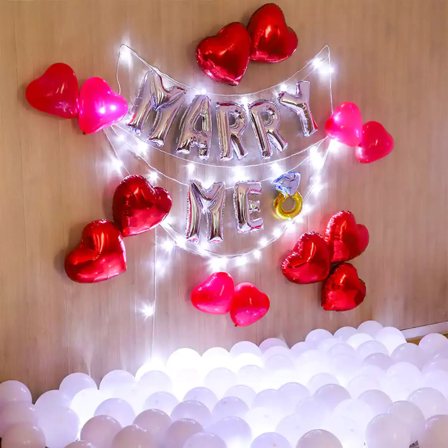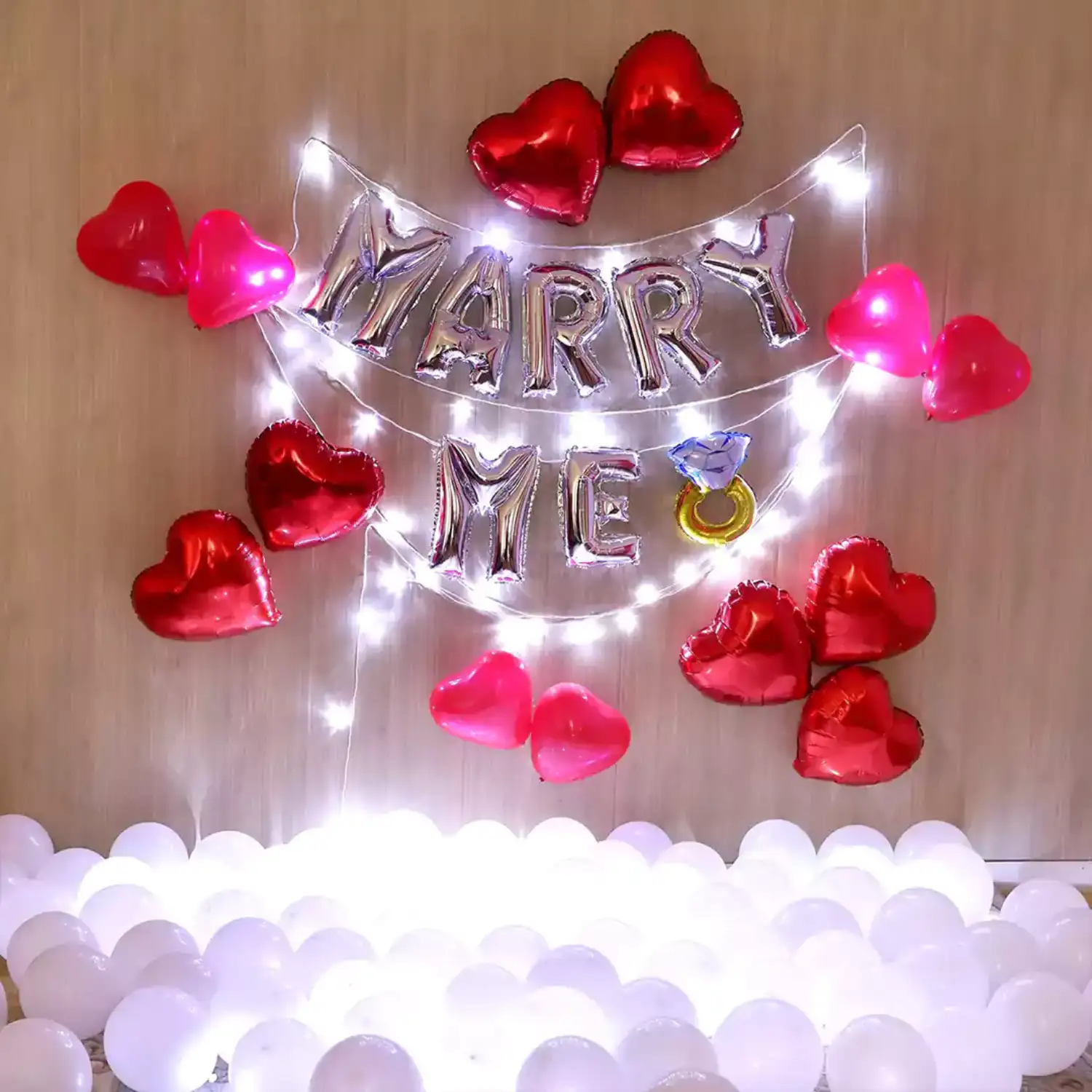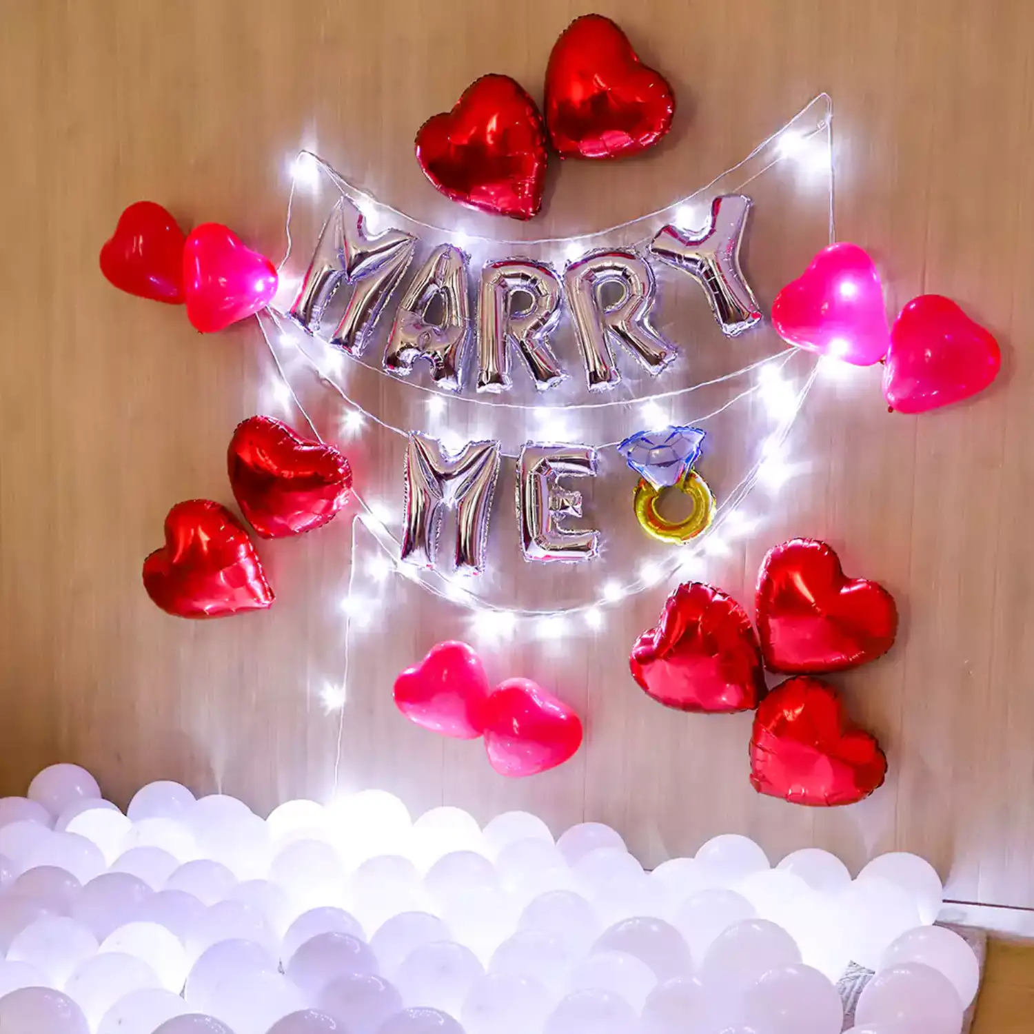 Transform your special moment into a breathtaking declaration of love with our enchanting 'Marry Me' Balloon Decor package.