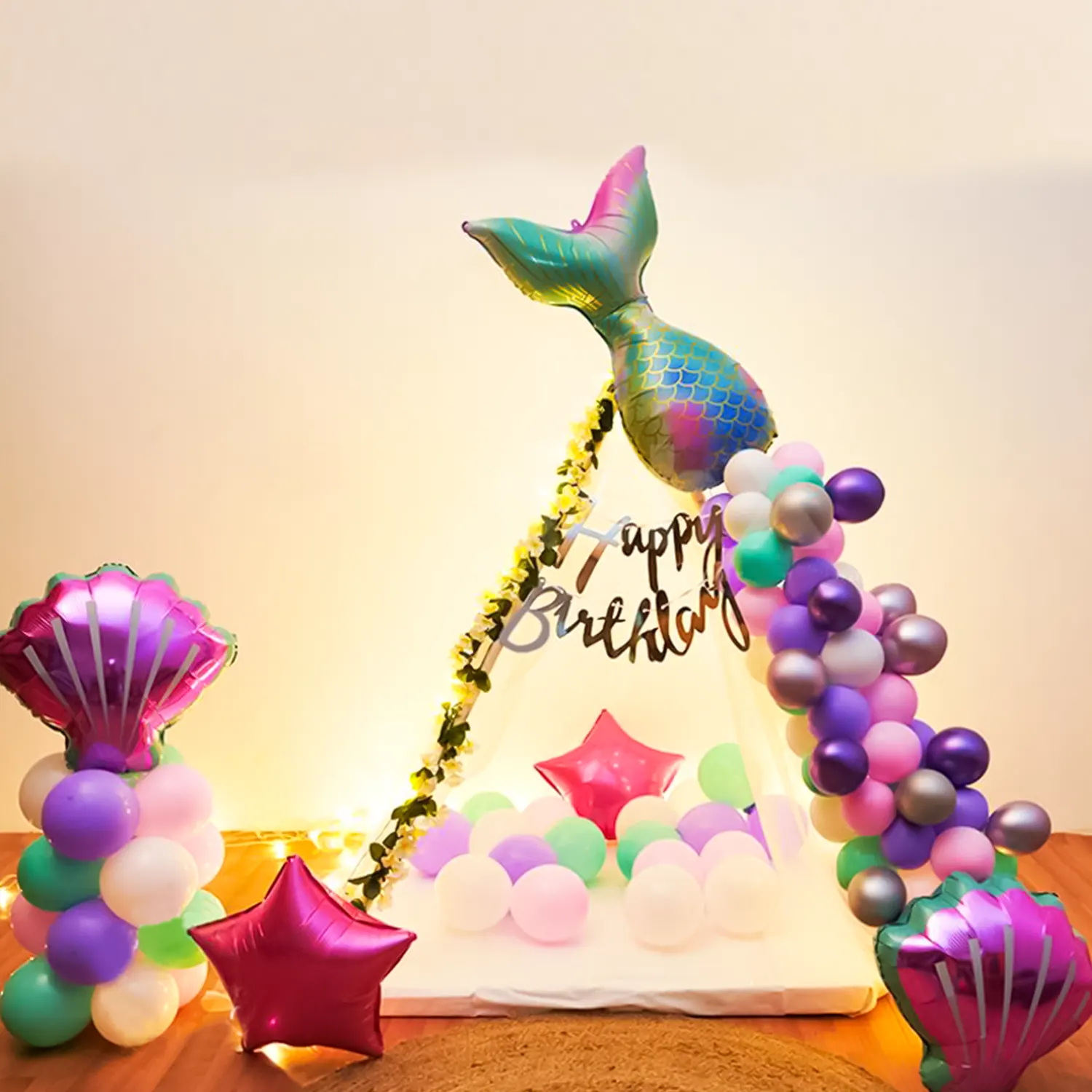 A beautiful balloon decoration idea for birthday celebrations at home.