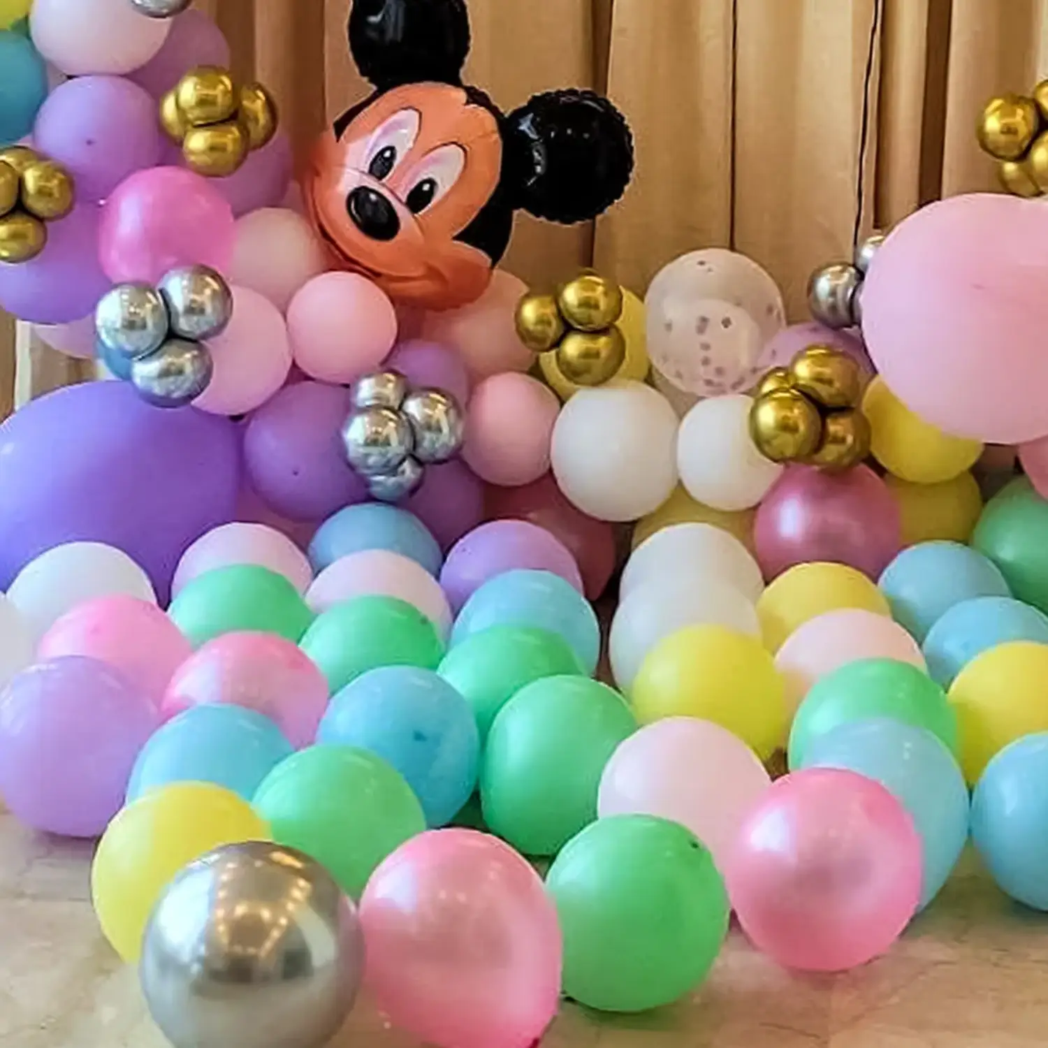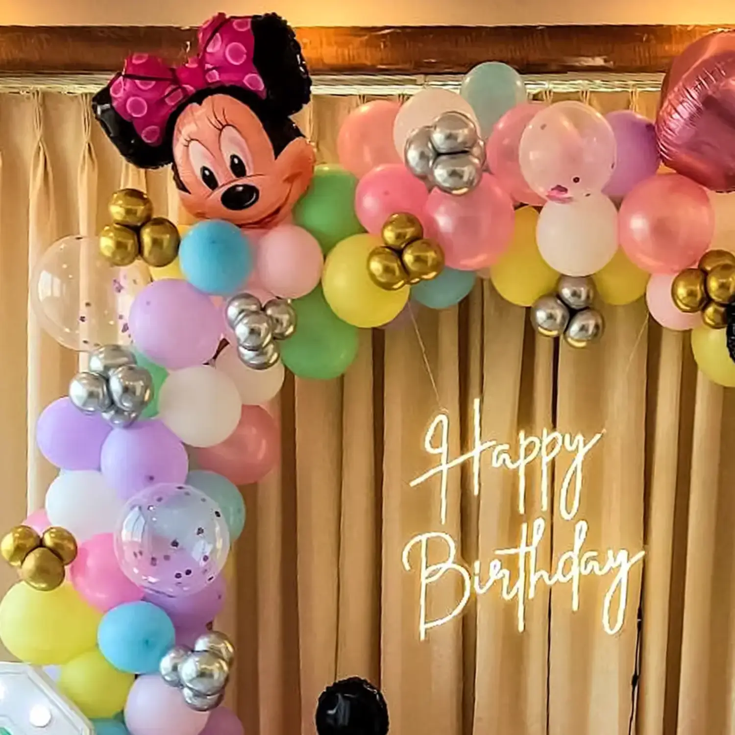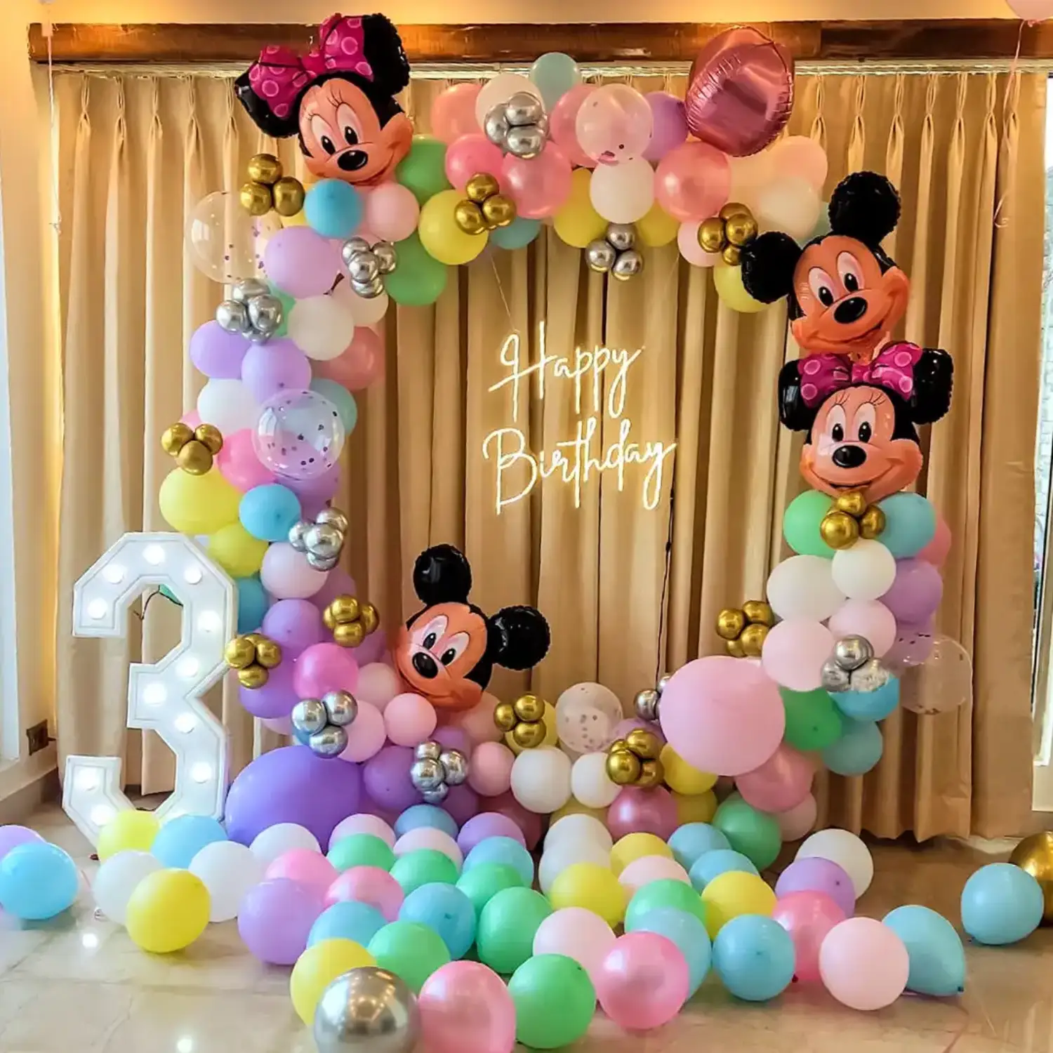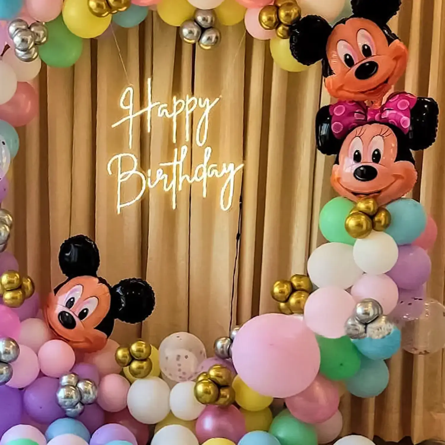 Lets make your kids birthday celebration exciting with this Mickey & Minnie Mouse balloon decoration.